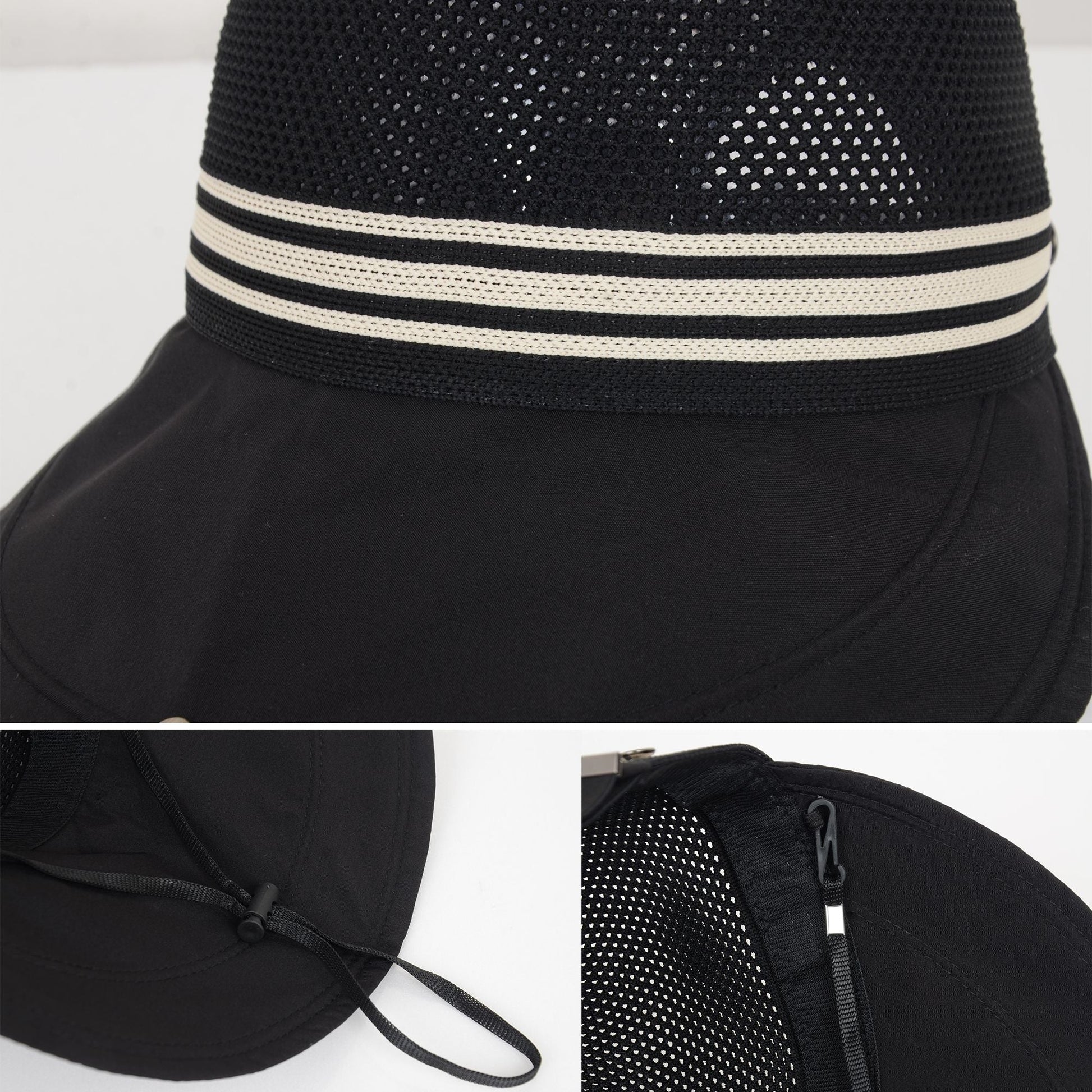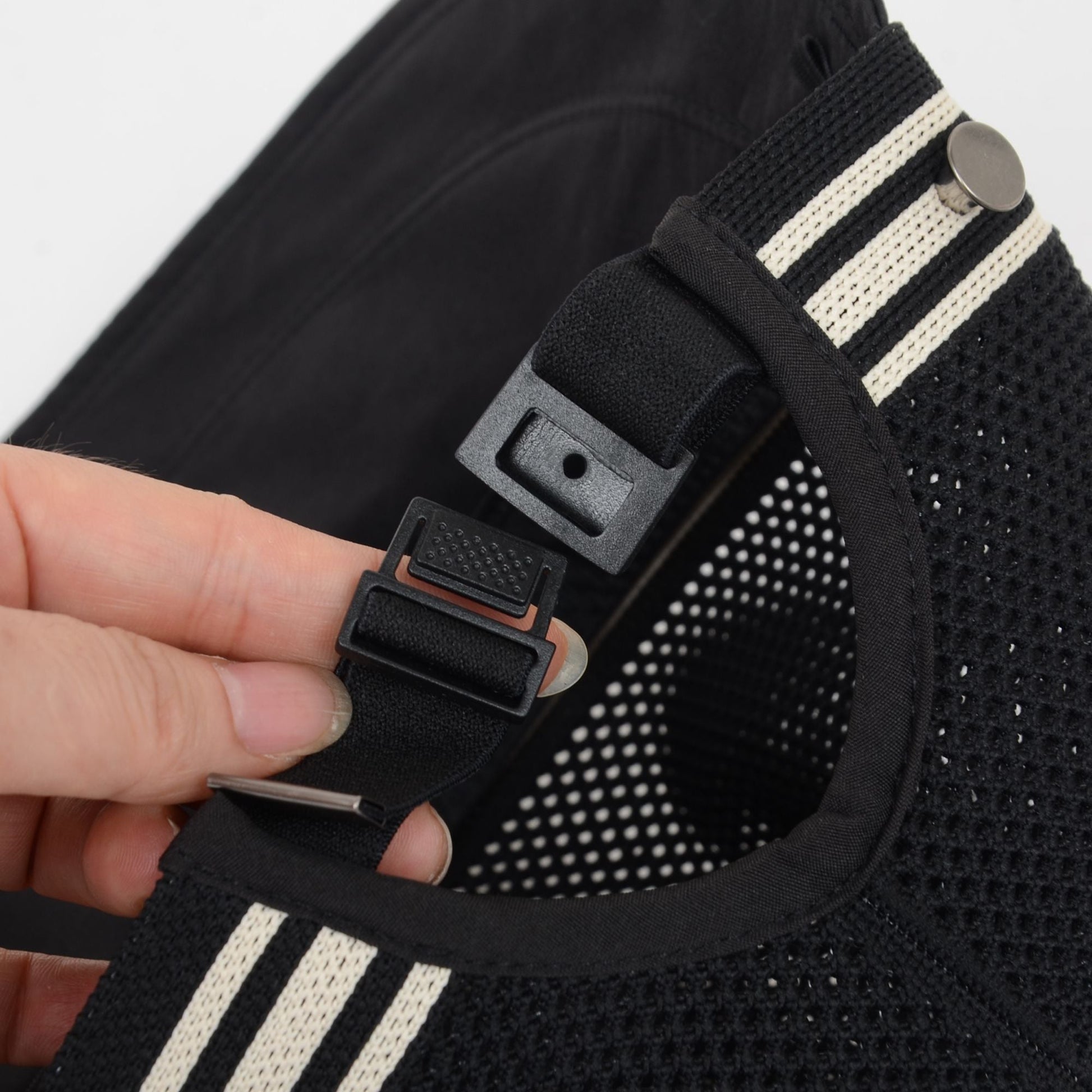 This mesh sun visor cap features a wide brim for sun protection, a ponytail slot for added comfort, and an adjustable back strap for a secure fit. Designed for breathability and lightweight wear, it's perfect for hiking, outdoor workouts, and warm-weather travel.