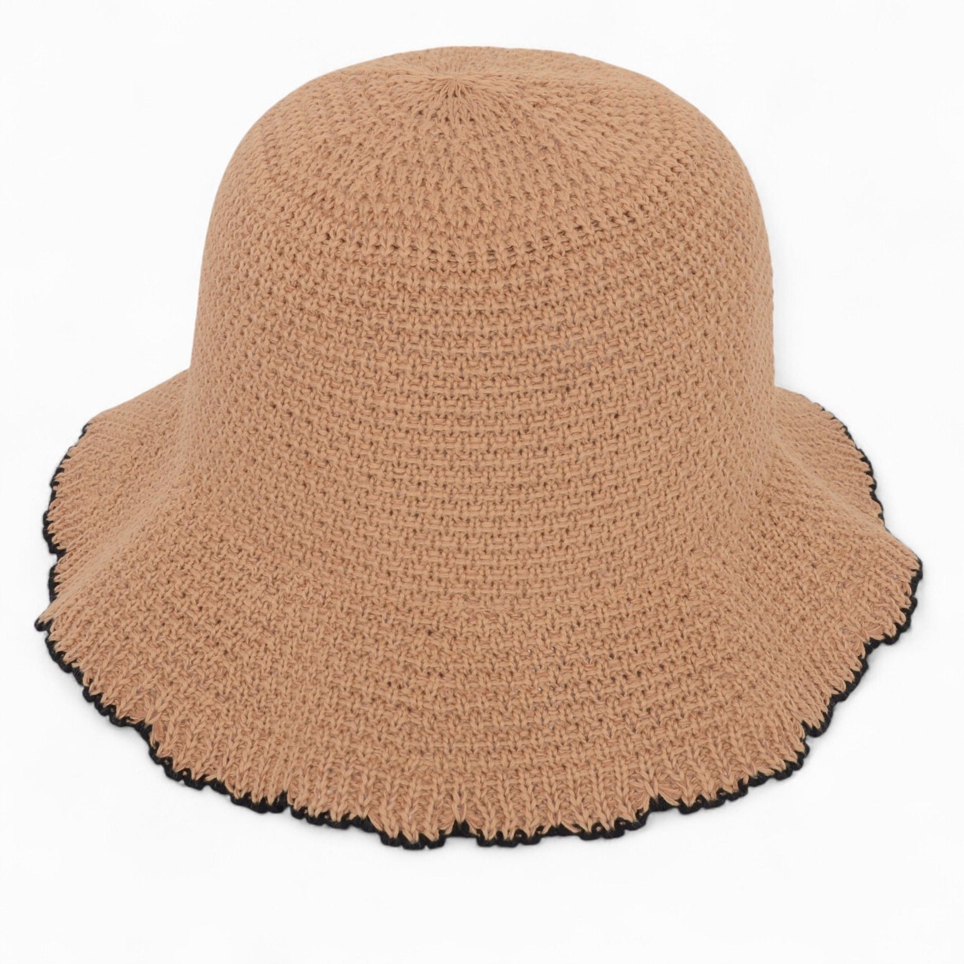 Anna-Kaci Women's Woven Floppy Bucket Hat with Scalloped Brim Edge Detail