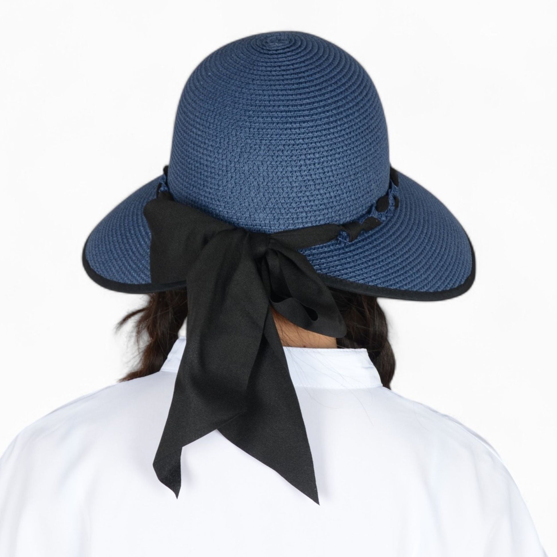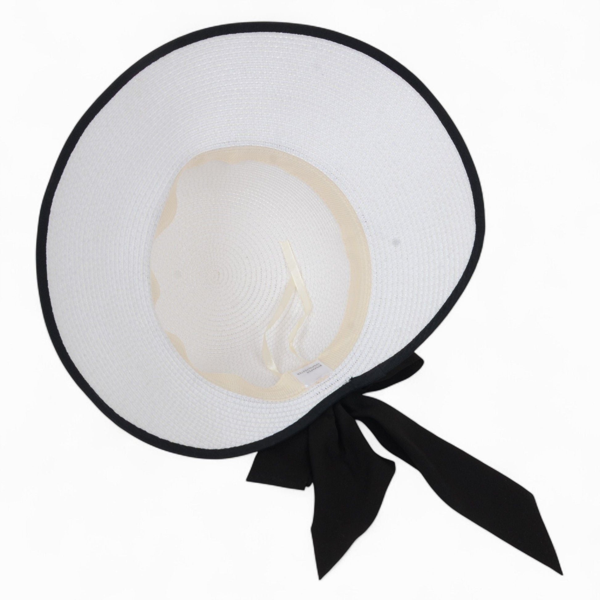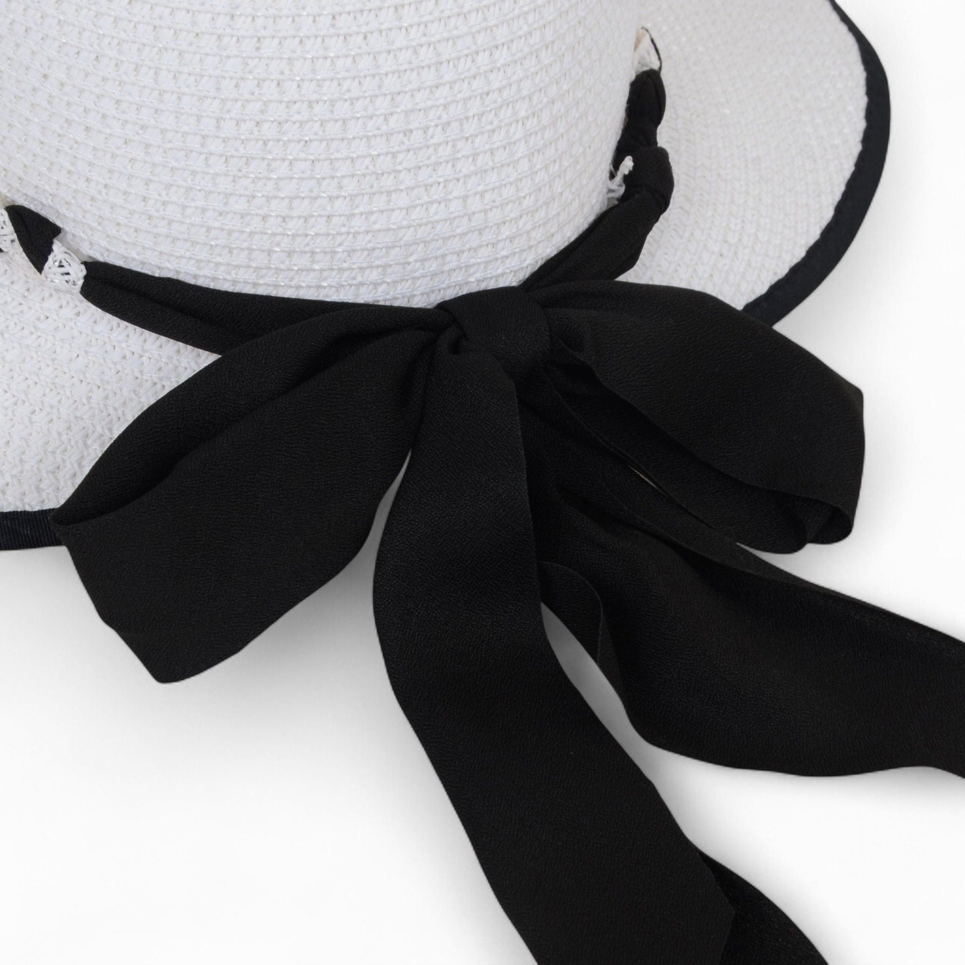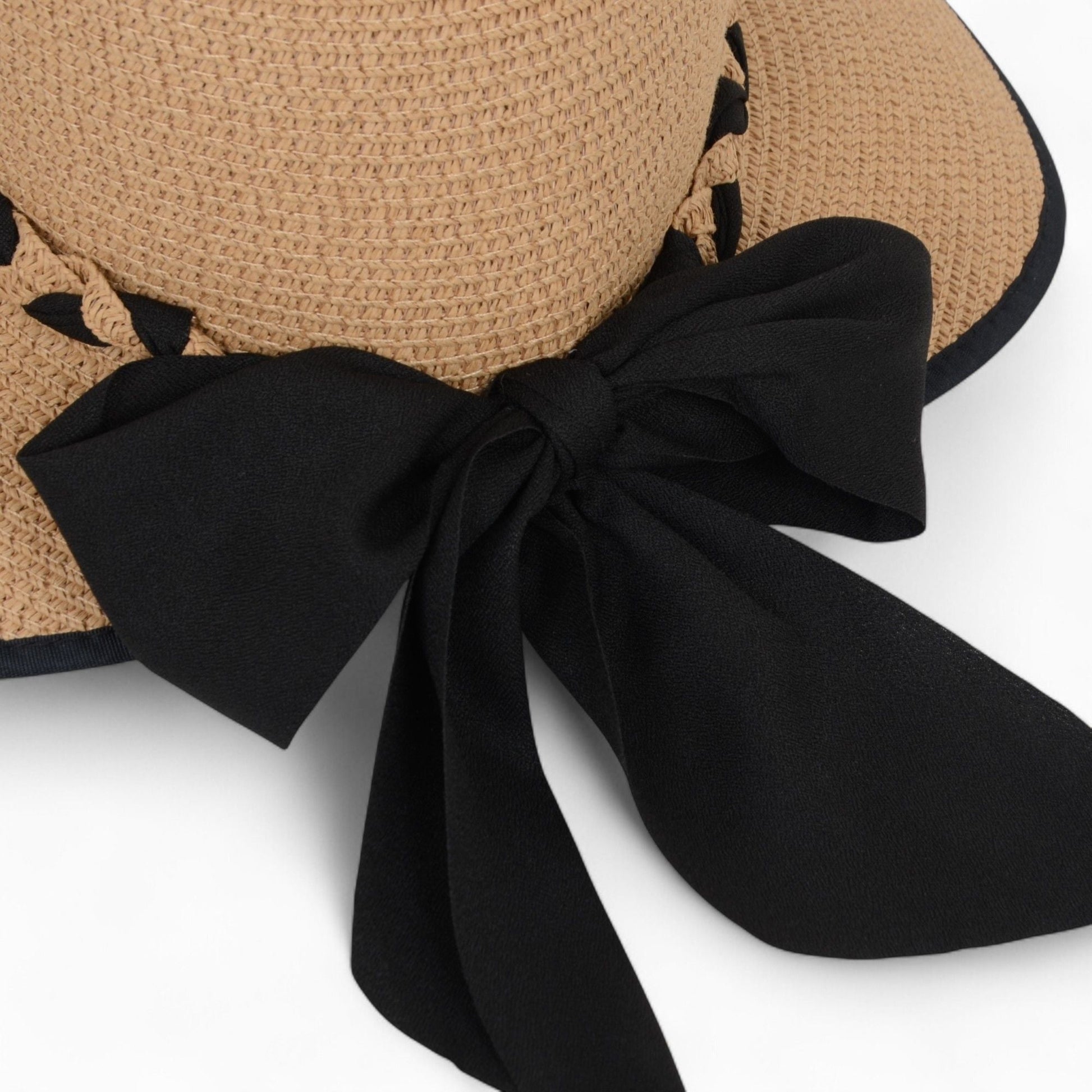 Anna-Kaci Women's Wide Brim Straw Hat with Braided Band and Contrast Bow Detail