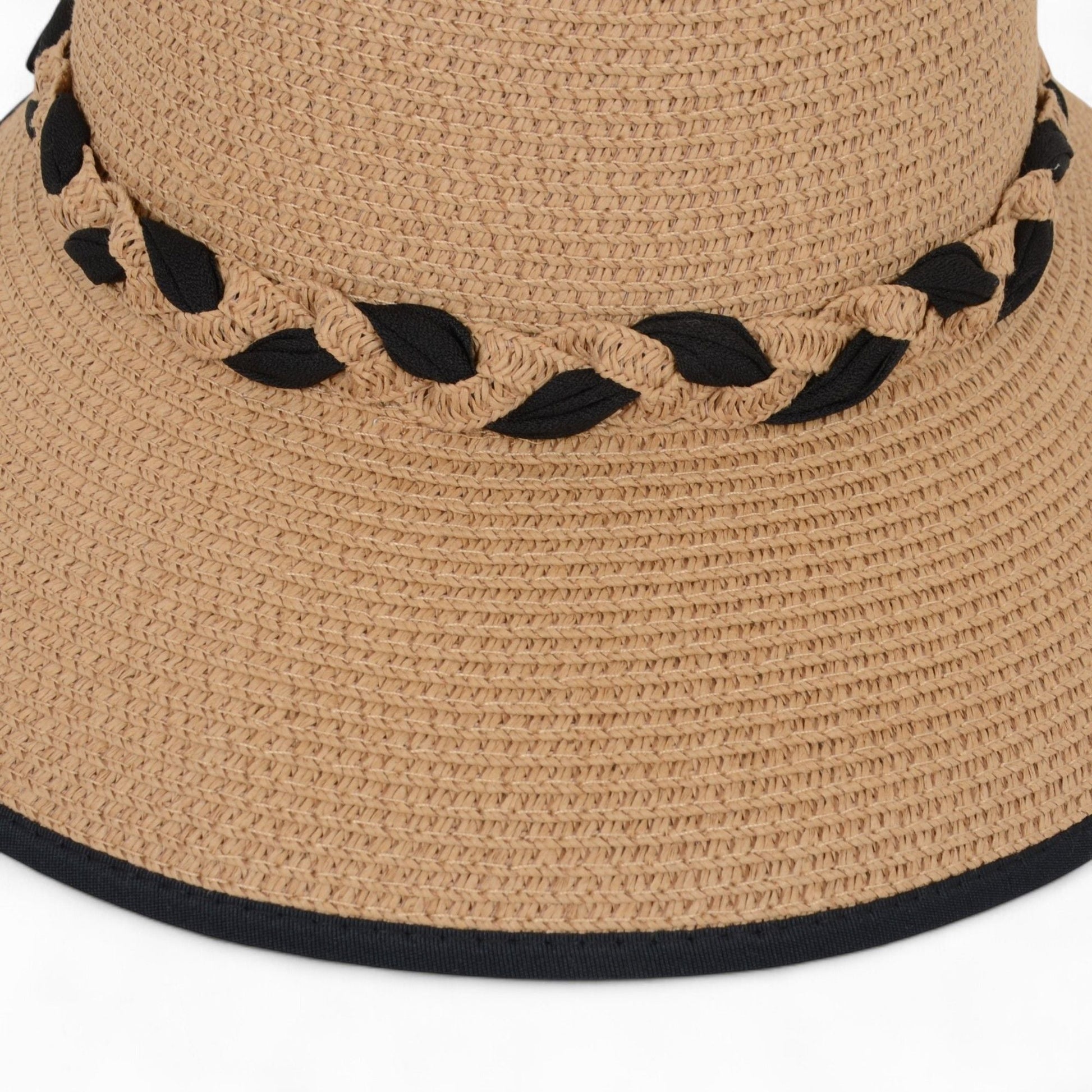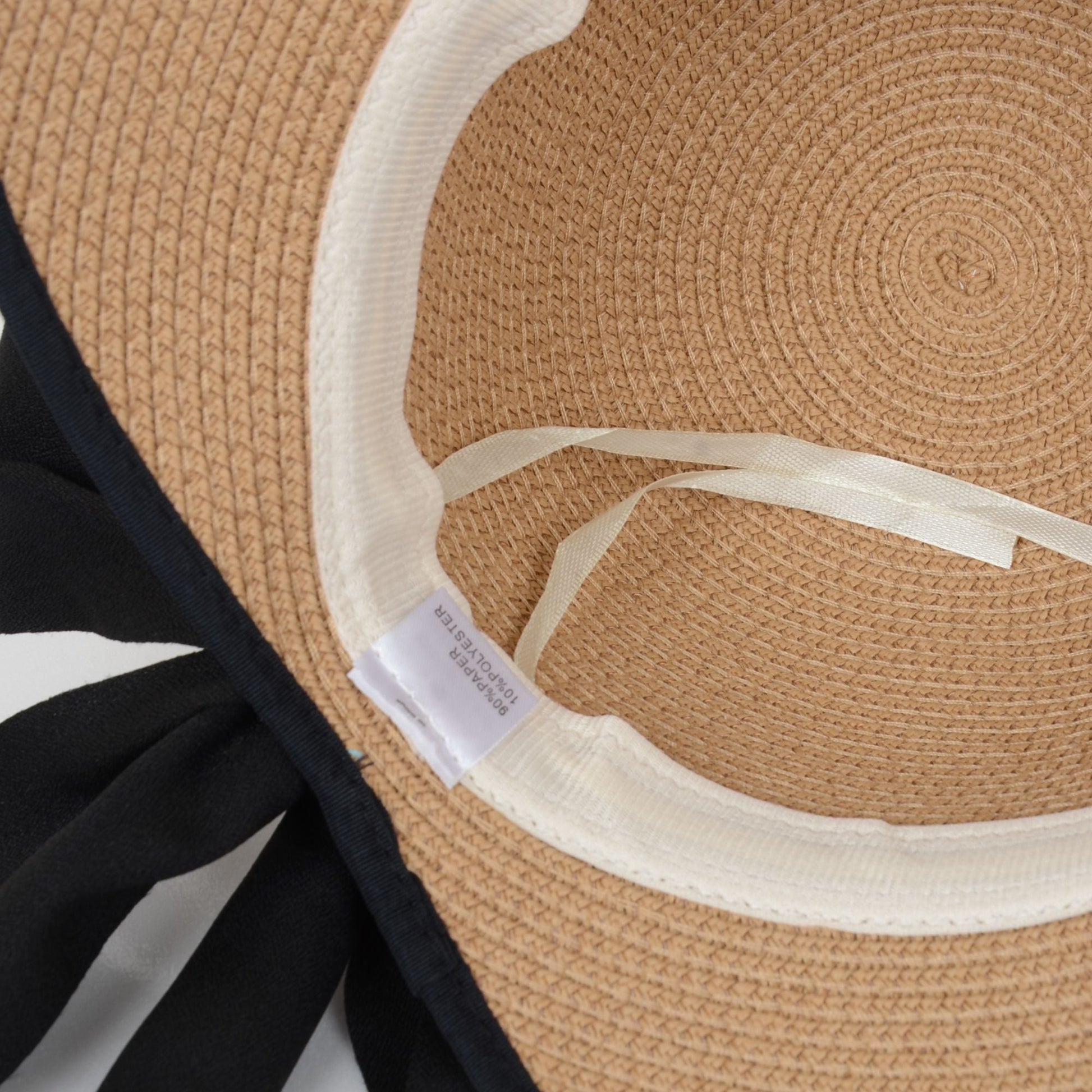 The Anna-Kaci Women's Wide Brim Straw Hat combines function and fashion with its elegantly woven straw construction and stylish braided band. The wide brim offers ample sun protection, while the black and ivory braided trim and matching bow at the back add a polished, feminine accent. Lightweight and breathable, this hat is perfect for enhancing your look while keeping you shaded during sunny days. A timeless accessory that effortlessly elevates your outdoor wear.