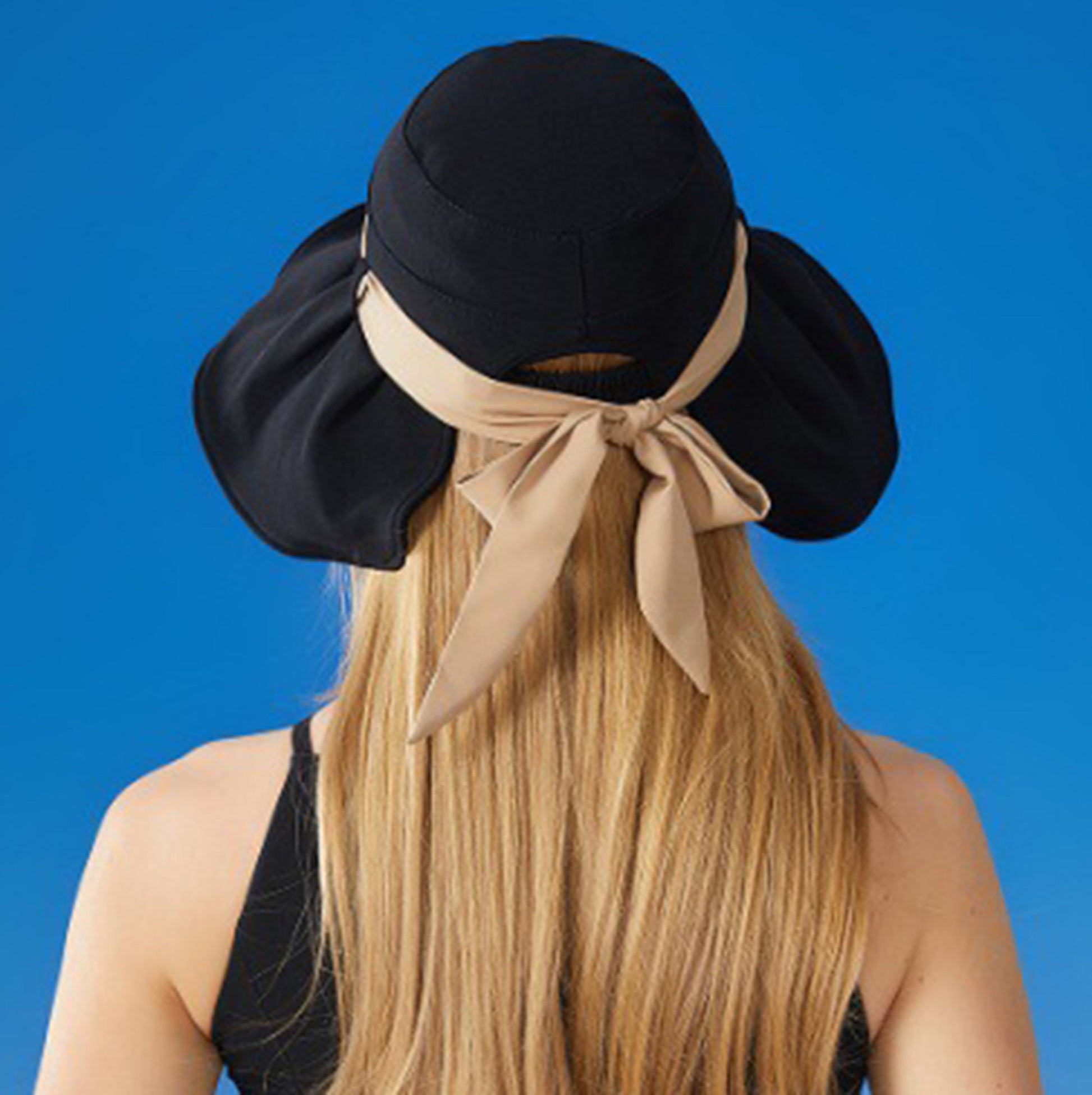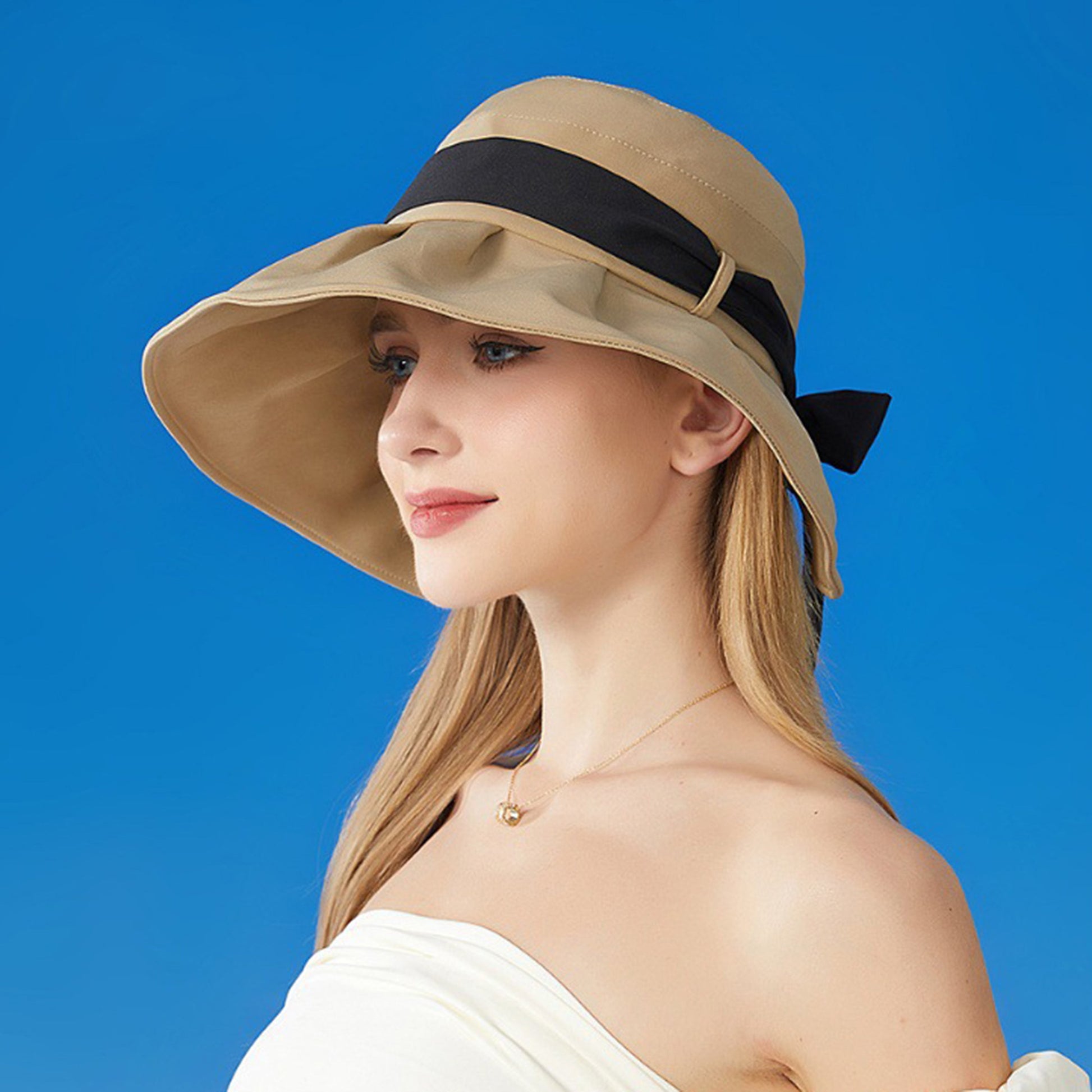The AnnaKaci Women's Wide Brim Floppy Sun Hat brings timeless charm with modern elegance. Featuring a gently flared brim and a bold contrast band tied into a soft side bow, this structured crown design offers both sun protection and graceful styling. Lightweight and flexible, it provides comfort for allday wear while enhancing your look with polished sophistication. Ideal for casual days out, travel, or stylish beachside lounging.