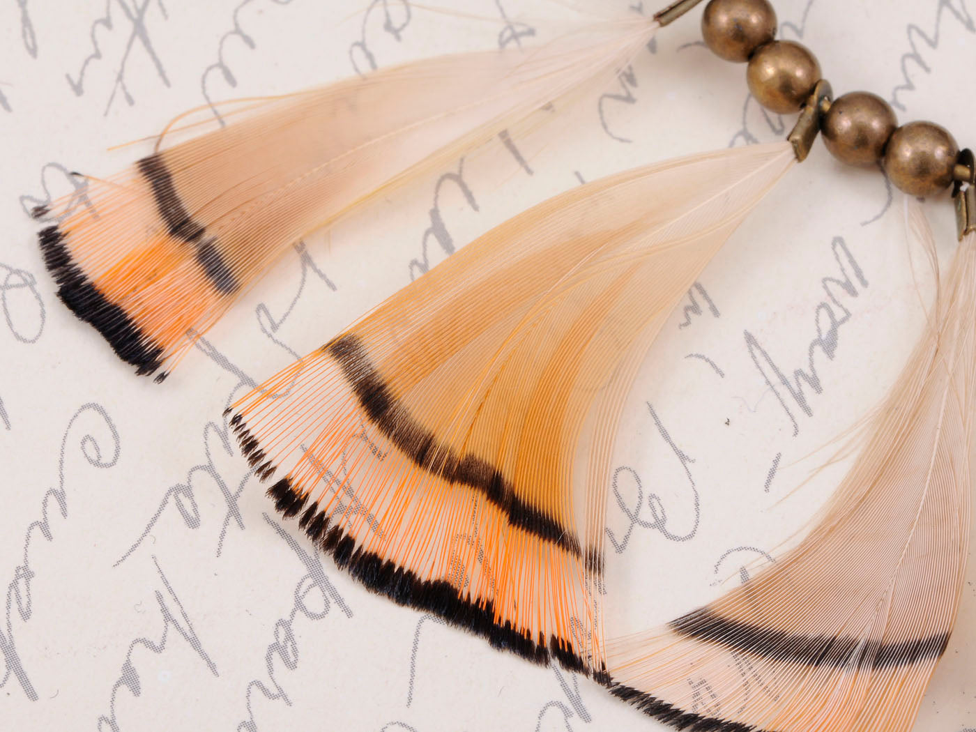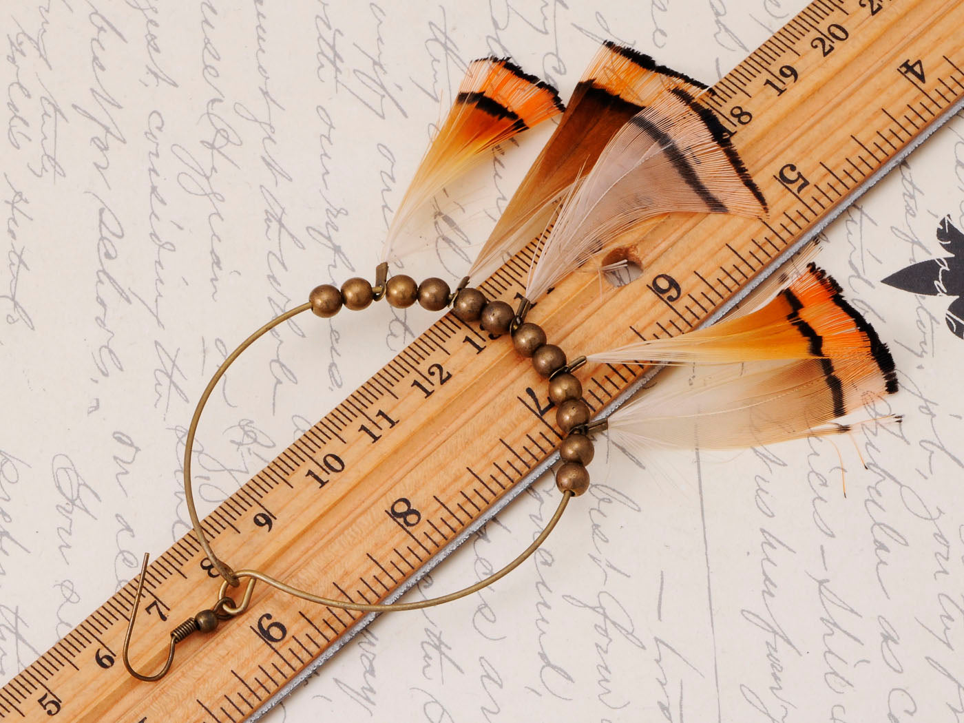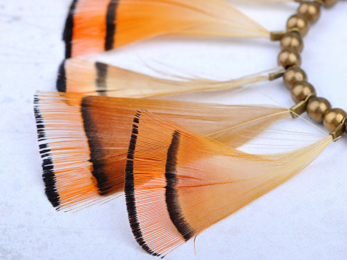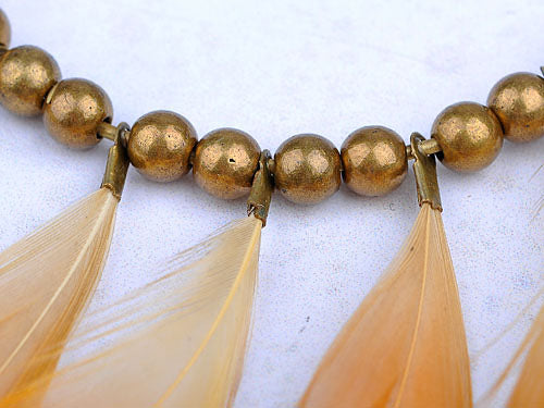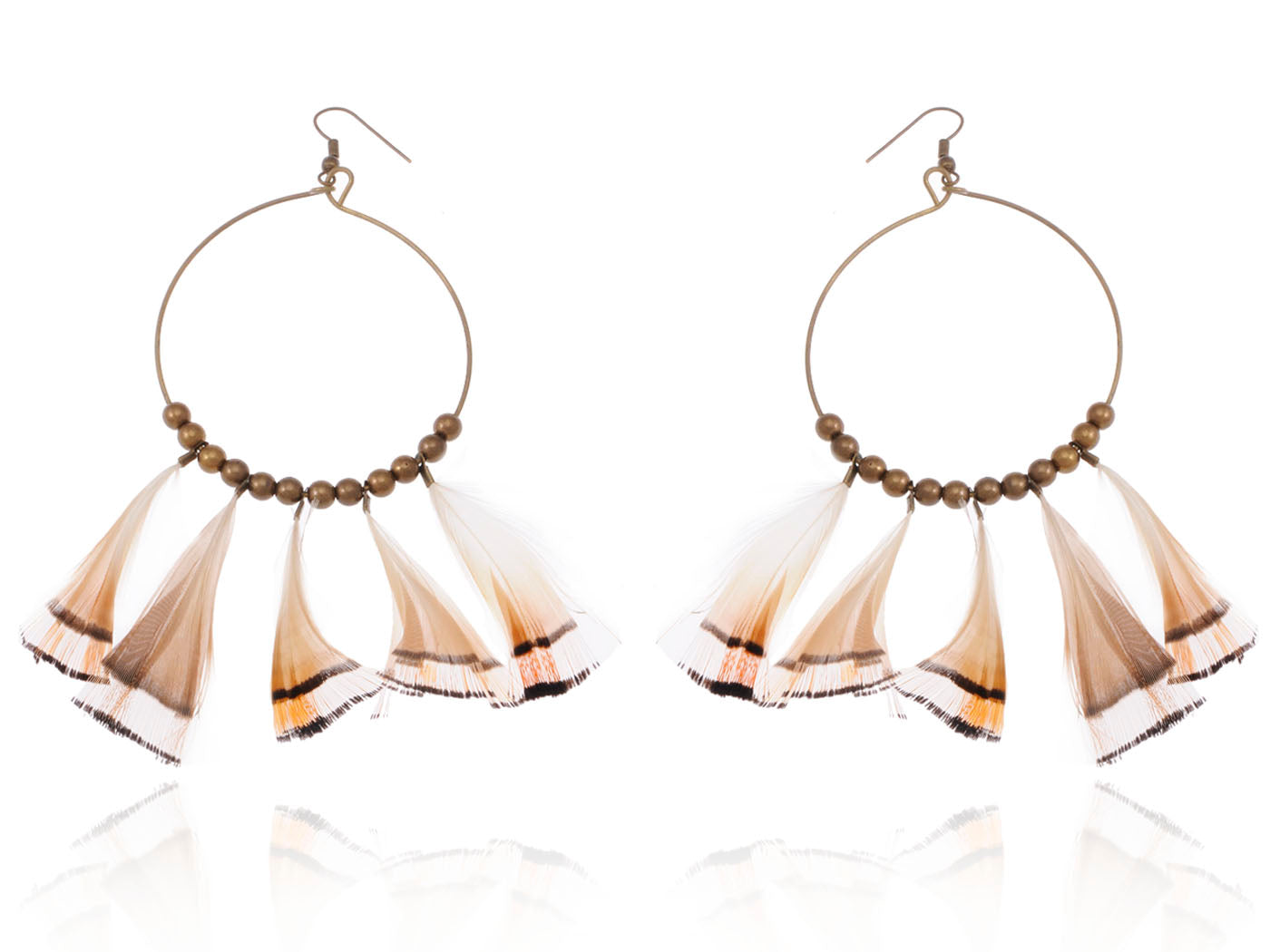 Tribal Hoop Bronze Beaded Ethnic Bird Feather Urban Hip Trend Hook Earrings