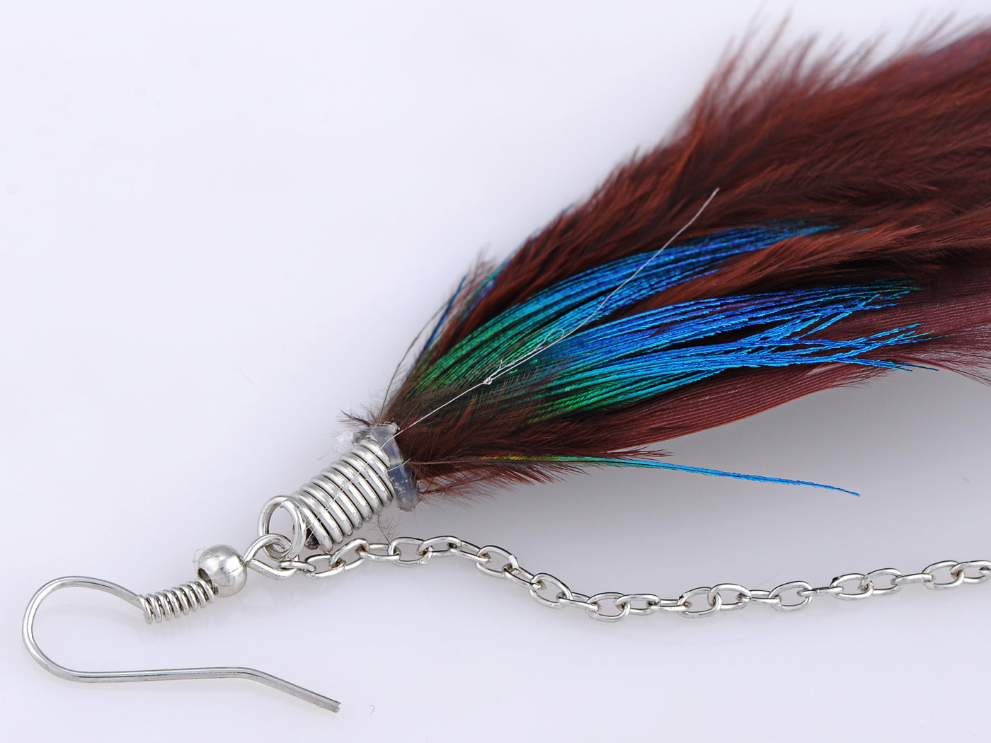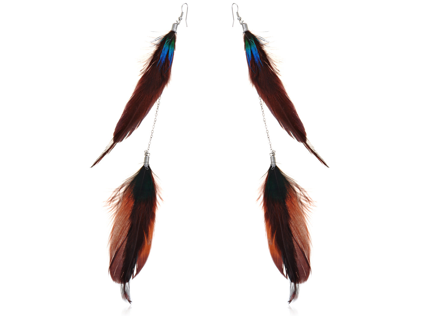 Sepia Two Level Pheasant Feather Tribal Element Earrings