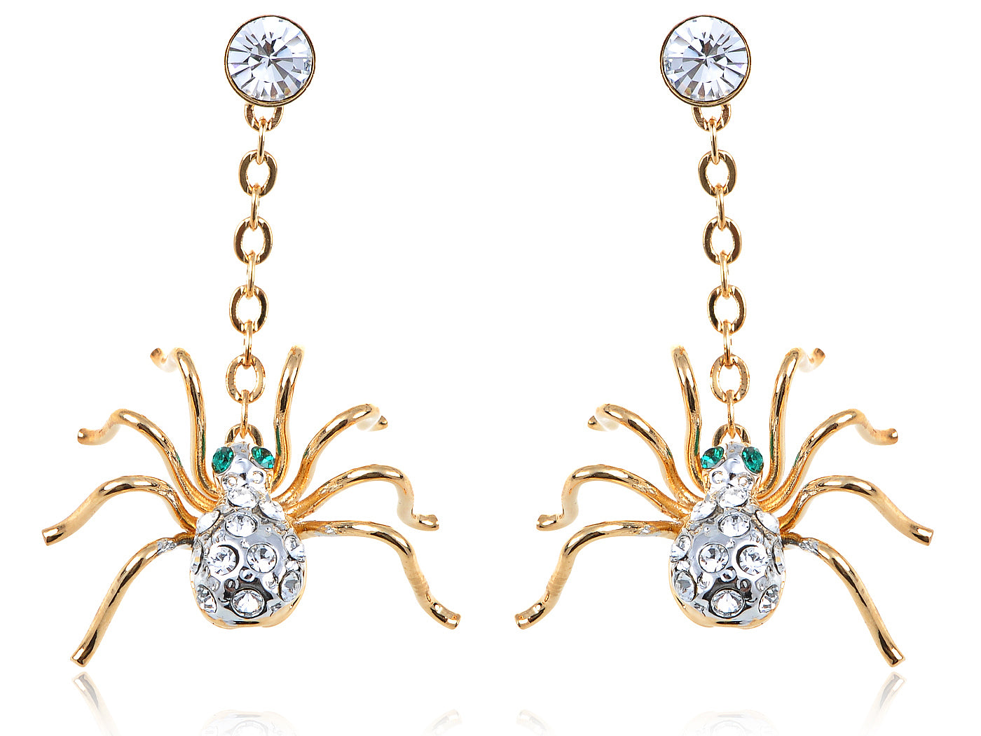 - DESIGN - Gold and sliver Spider Dangle Earrings,accented with sparkly rhinestones.