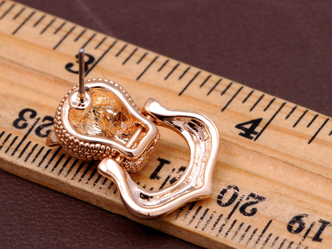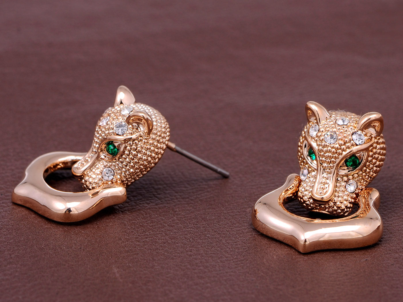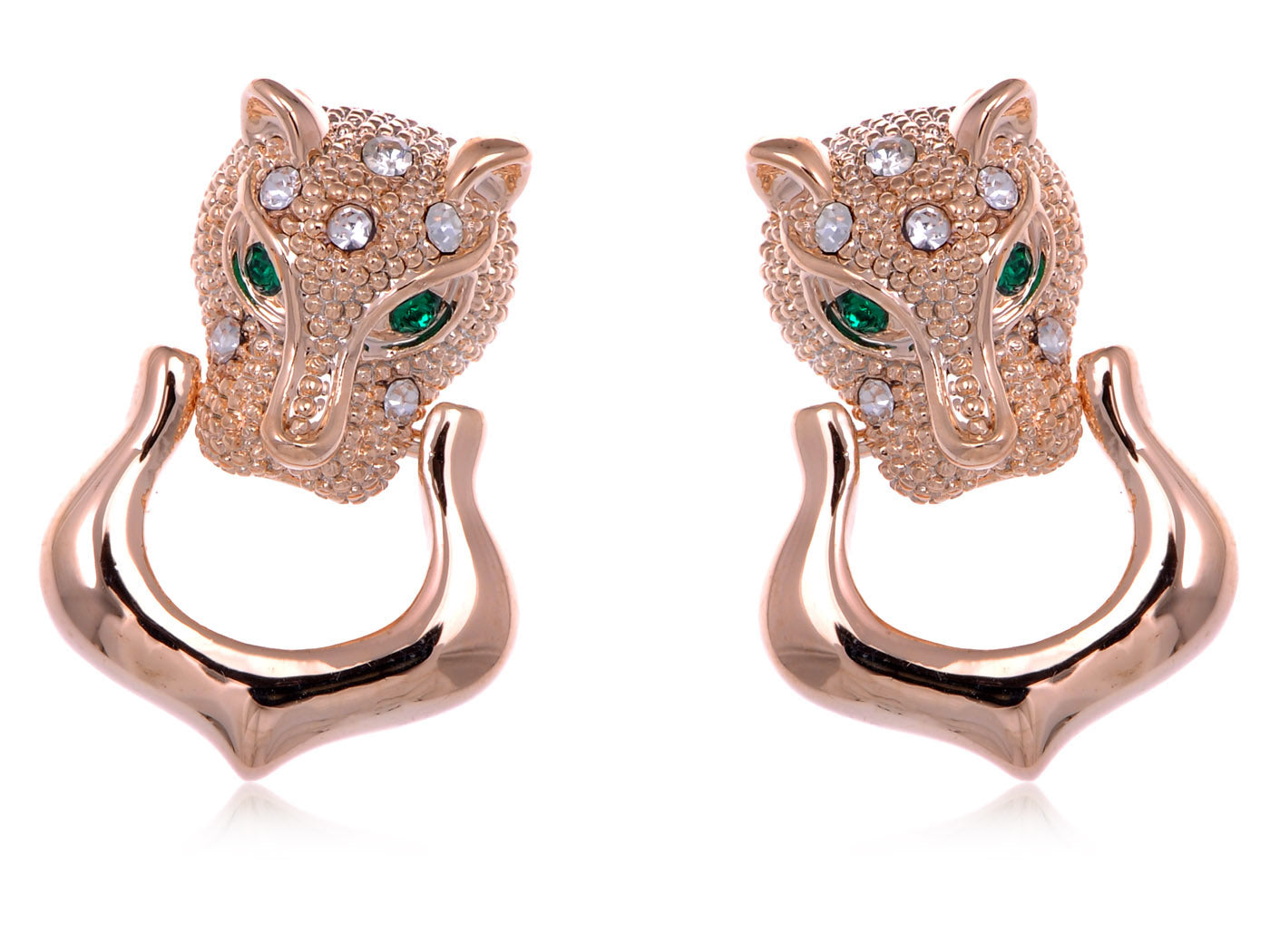 - UNIQUE DESIGN - Golden tone jaguar cat head face door knocker stud earrings