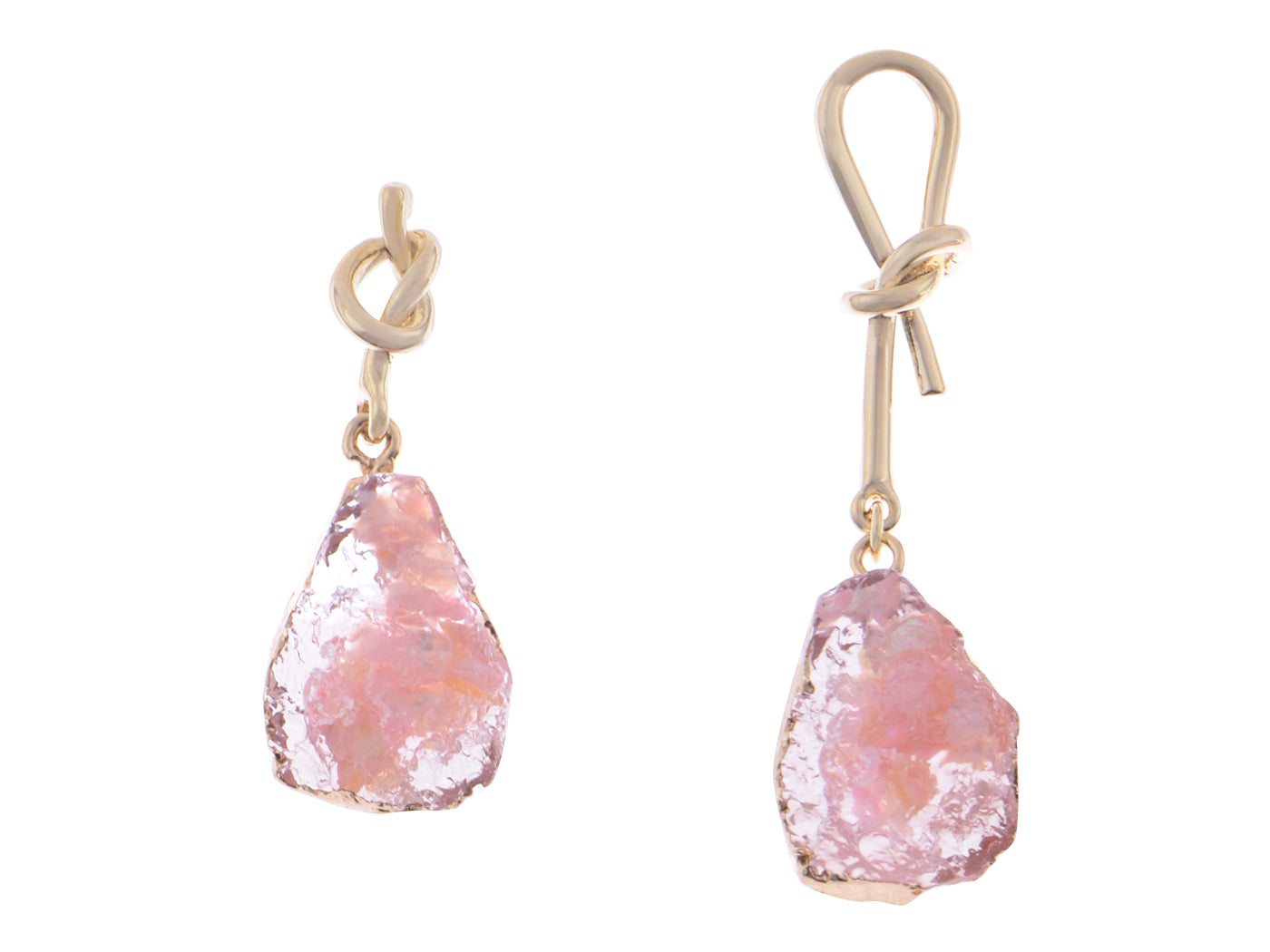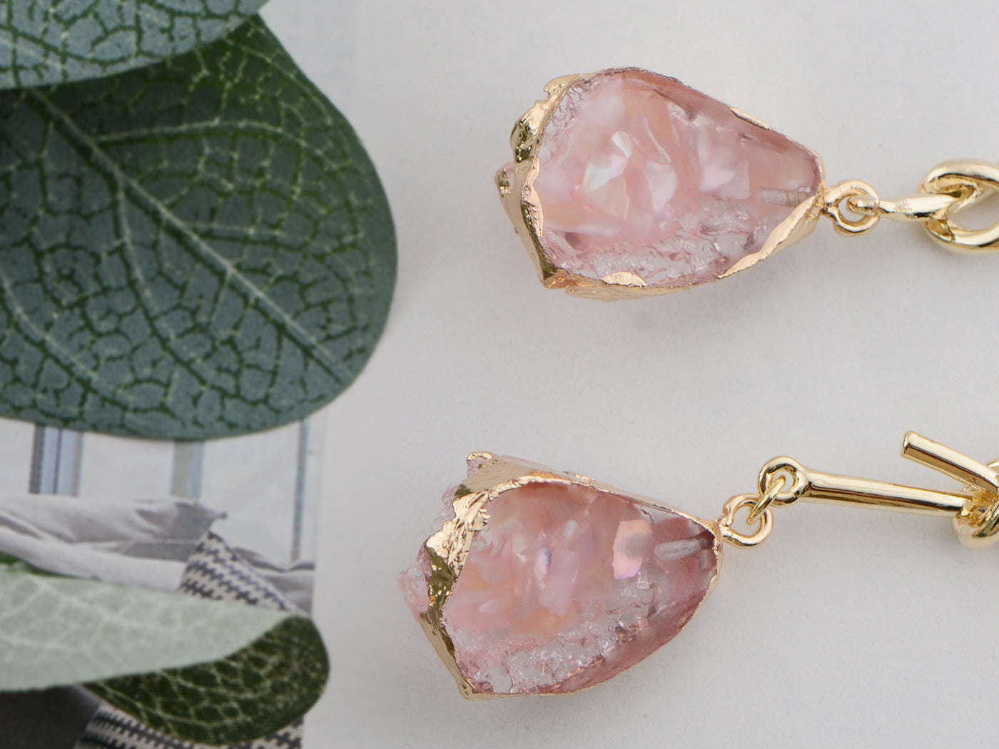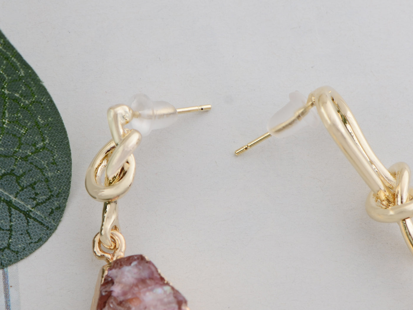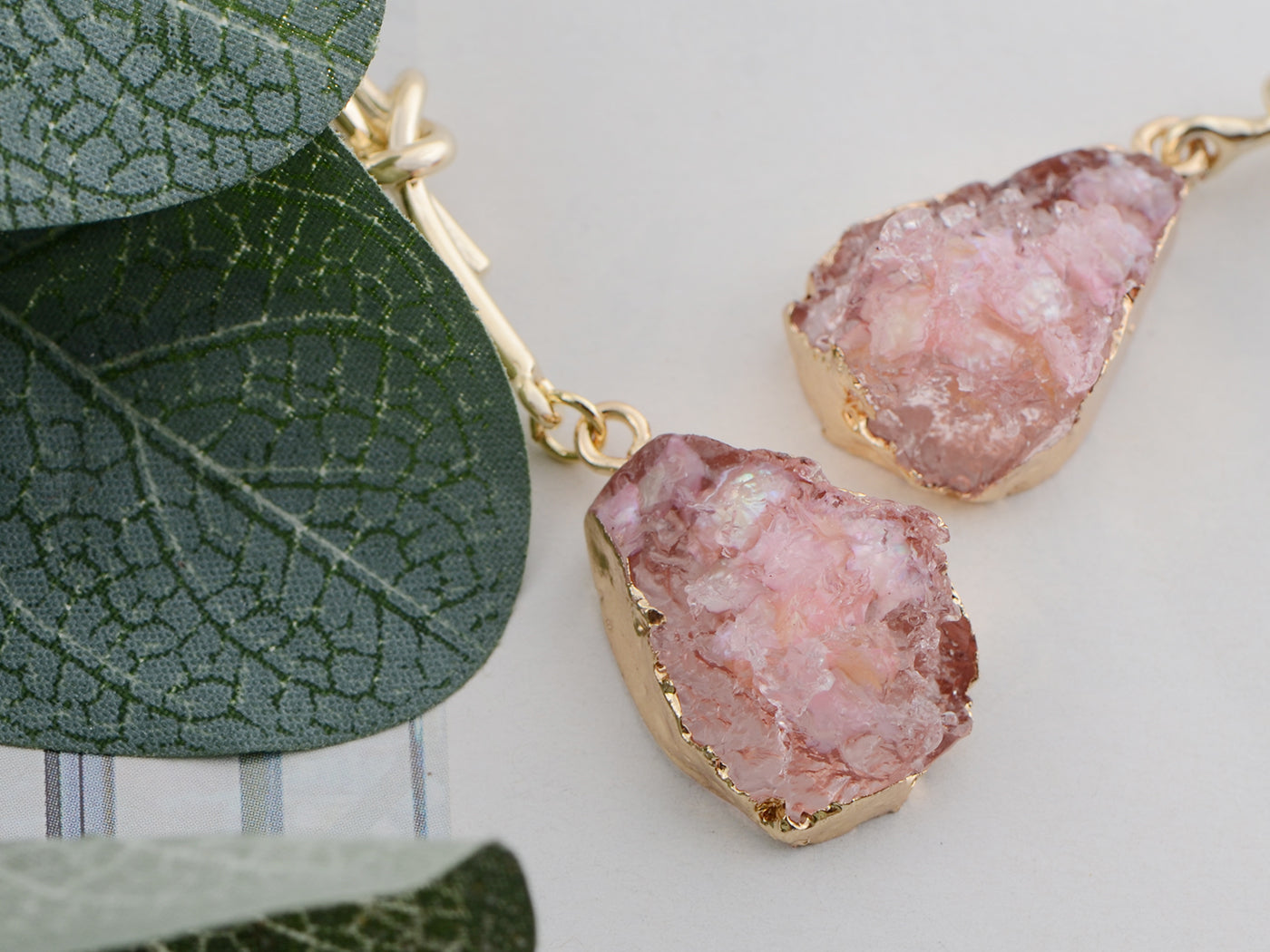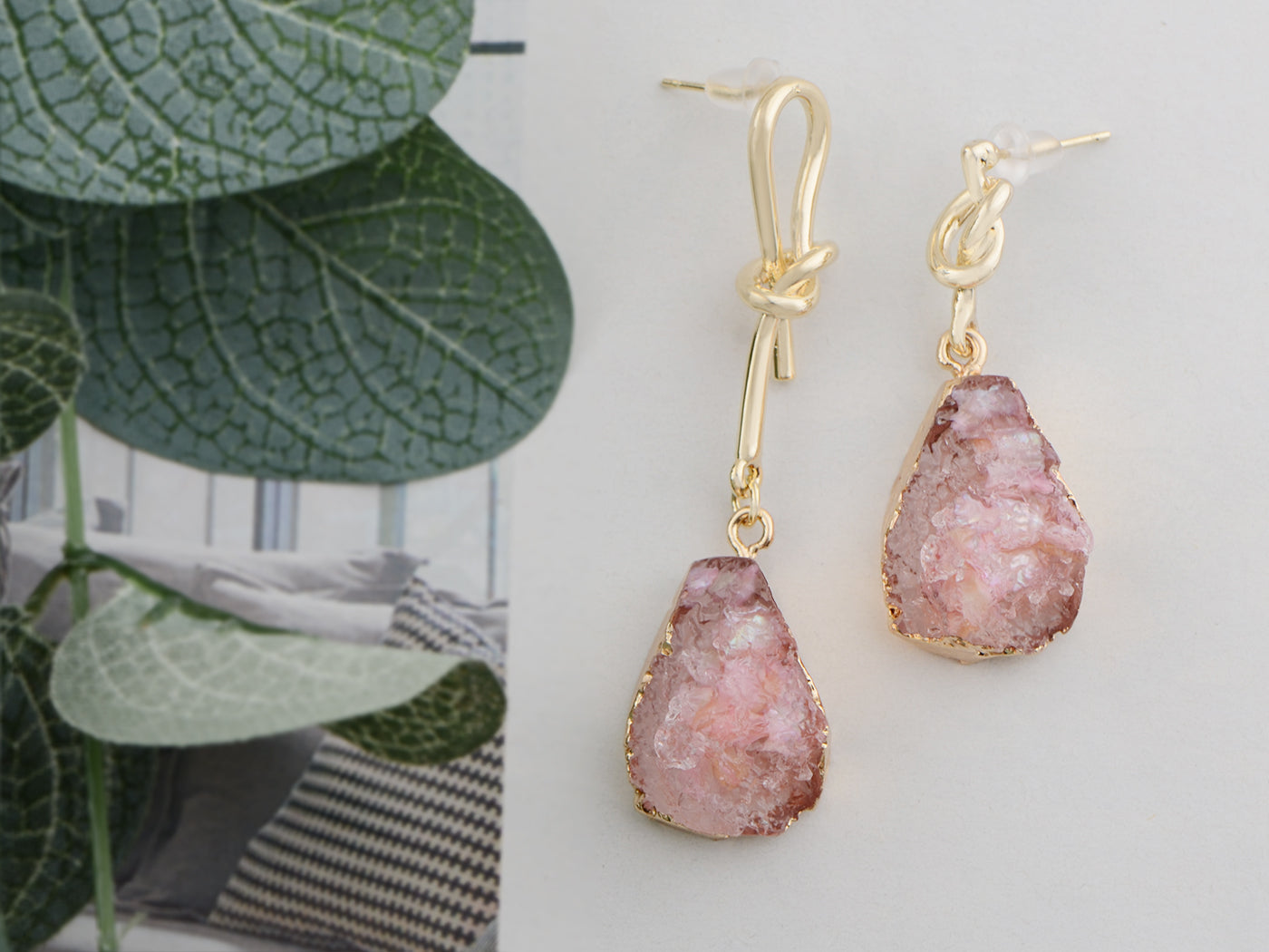 Rose Quartz Gems Irregular Shape Dangle Drop Trendy Bohemian Earrings