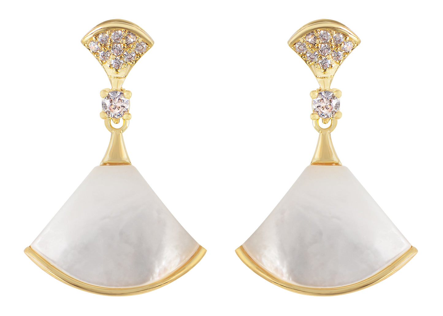 Alilang Cute Golden Tone Crystal Rhinestone Fan Shaped Shell Dangle Earrings Elegant Drop