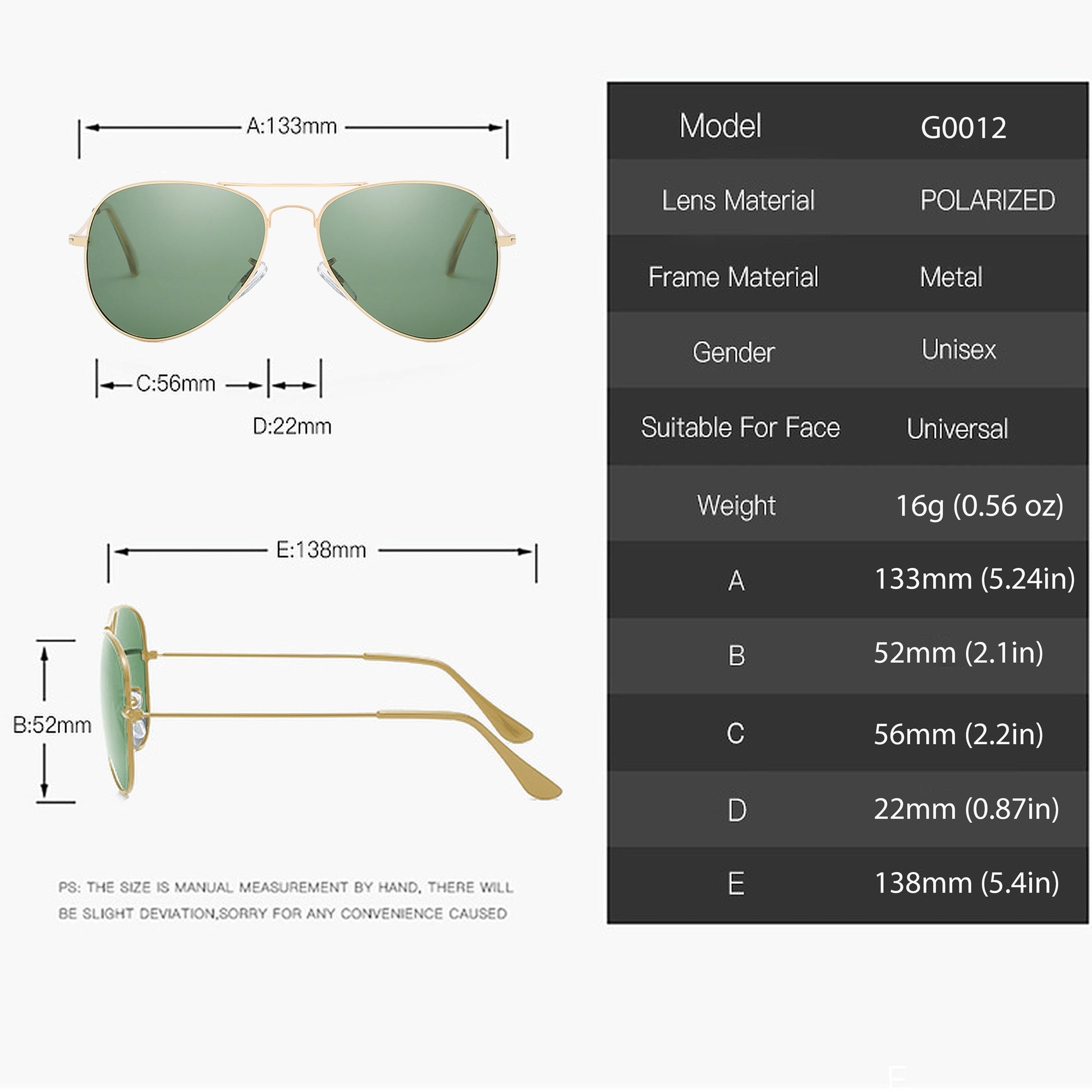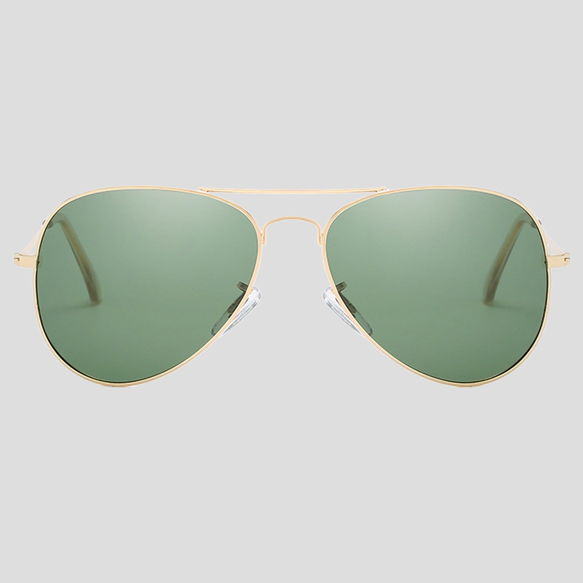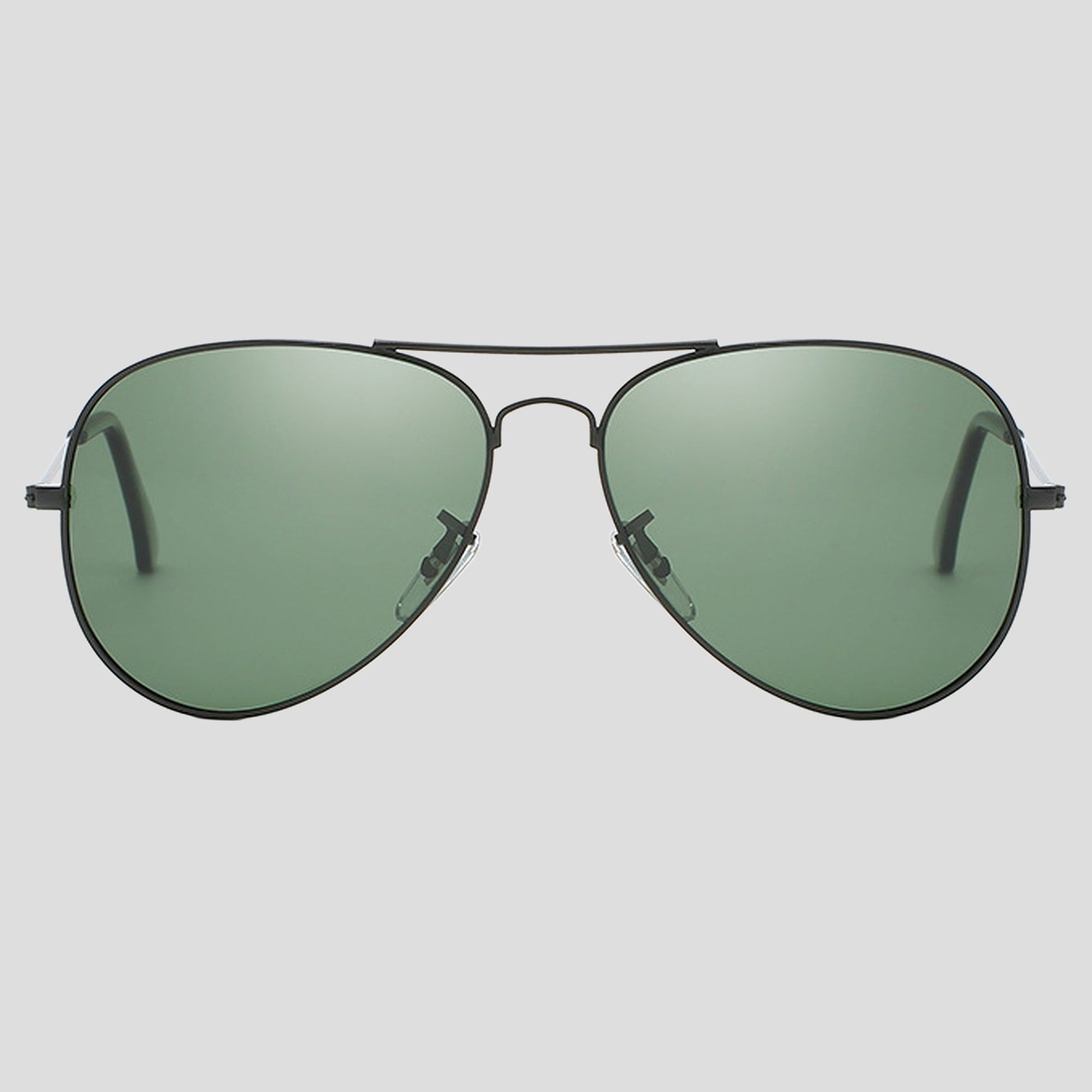 Elevate your style with these Classic Black Aviator Sunglasses with Green Lenses. The timeless aviator design, characterized by its sleek black frame, is a symbol of sophistication and style that has been a favorite among fashion - forward individuals for decades. Whether you're strolling on the beach, driving, or simply running errands, these sunglasses add a touch of class to any outfit.Functionally, they are a top - notch choice. The polarized green lenses are a game - changer, effectively reducing glare from reflective surfaces. This means you can enjoy clear, sharp vision without the discomfort of squinting in bright sunlight. Additionally, the lenses offer complete protection against UVA and UVB rays, shielding your eyes from potential long - term damage.