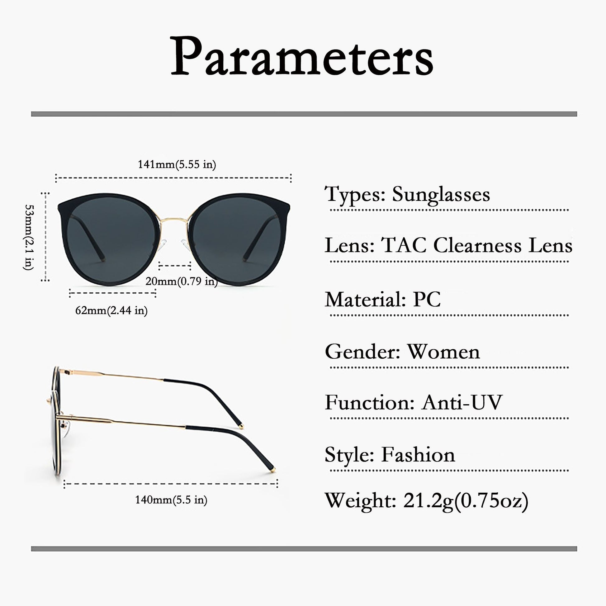 Anna-Kaci Elegant Round Women's Polarized Sunglasses UV400 Protection