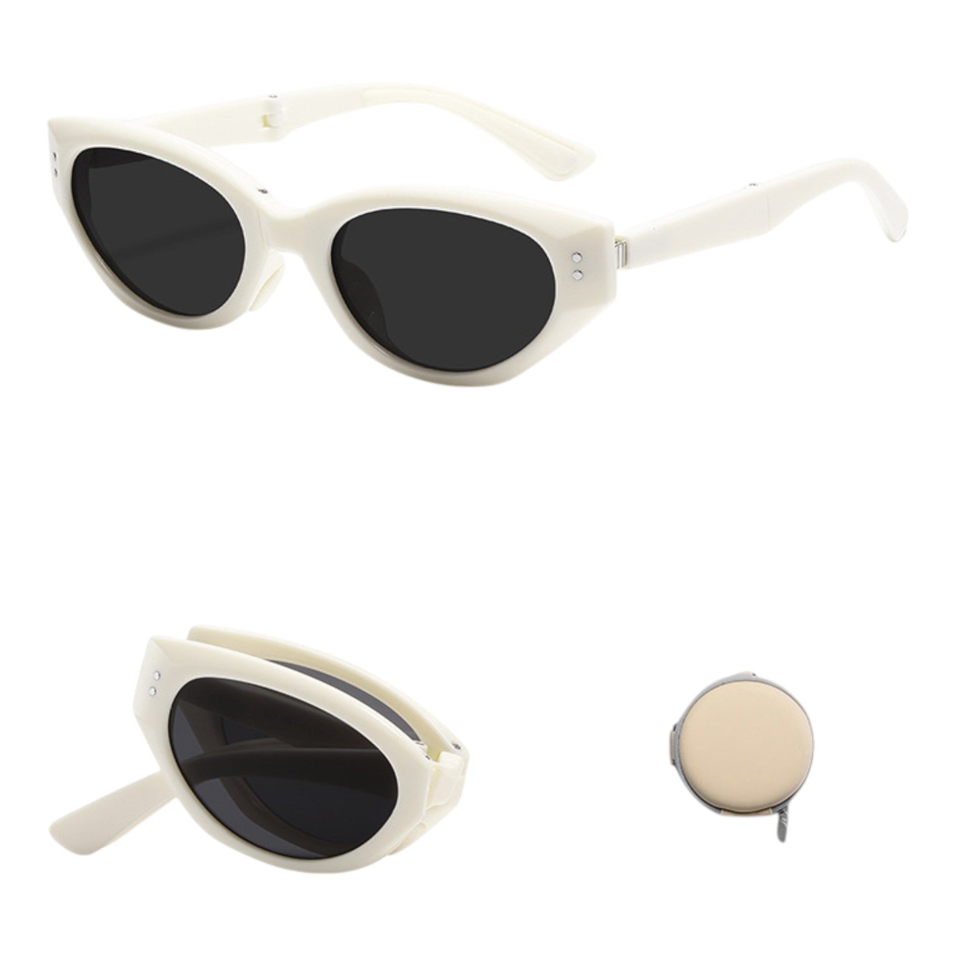 The AnnaKaci Women's Foldable Cat Eye Sunglasses blend fashion and function in a spacesaving design. Featuring a sleek cateye silhouette, these sunglasses fold down neatly into a compact round storage case, making them ideal for onthego lifestyles. The durable frame offers UV protection while maintaining a chic, timeless shape. Perfect for handbags, glove compartments, or travel kits, these foldable shades keep you stylish and prepared wherever you go.
