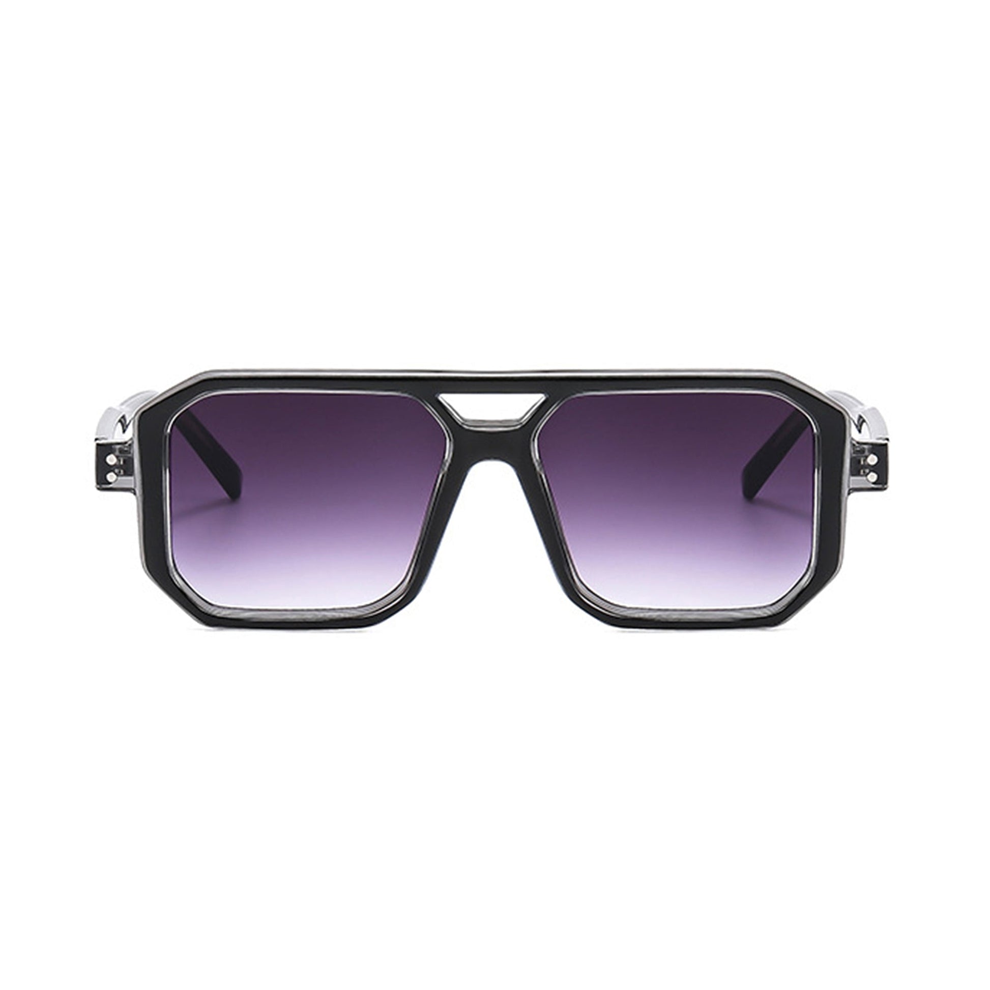These unisex oversized angular sunglasses feature a futuristic shield-inspired frame with dramatic edges and bold styling. The geometric silhouette is paired with gradient-tinted lenses for a stylish fade effect that offers UV400 protection. A thick frame and wide arms enhance the streetwear aesthetic while ensuring durability and comfort. A must-have accessory for those looking to make a bold fashion statement.