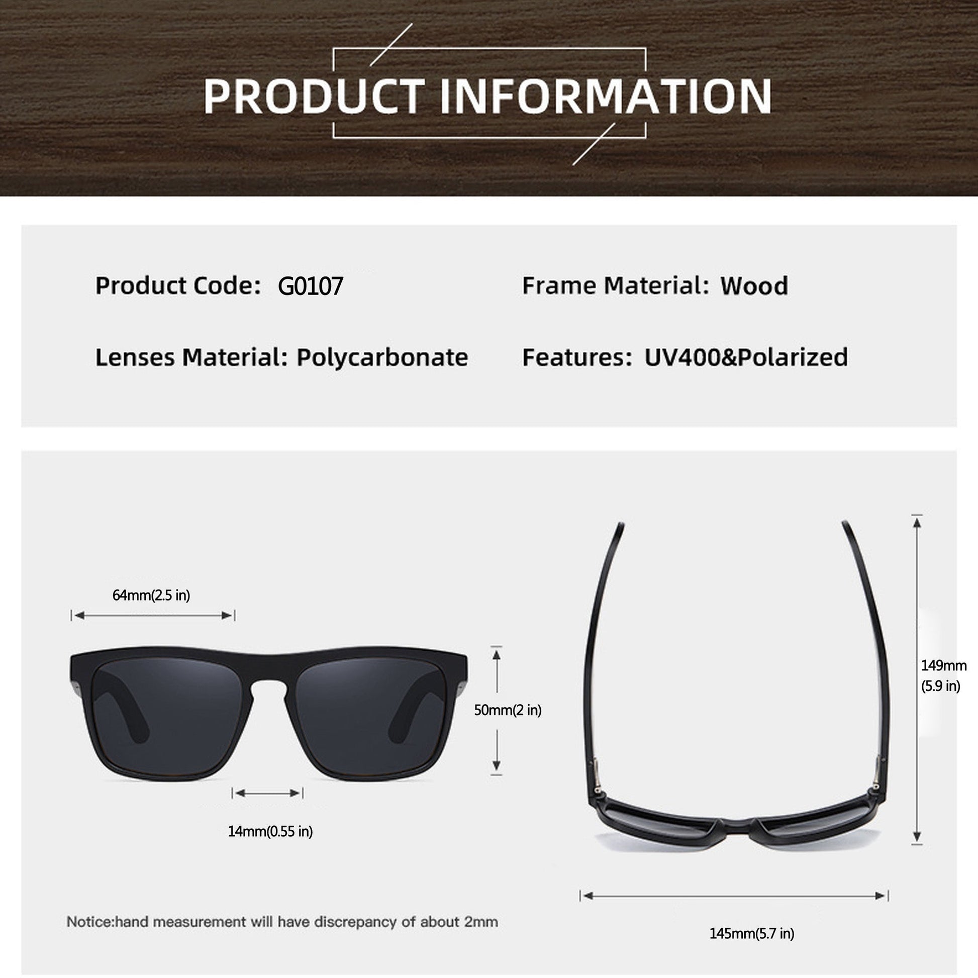 Elevate your outdoor style with our Men's Wooden Frame Polarized Sunglasses. Crafted with a natural wooden frame, these sunglasses bring a touch of eco-friendly elegance to your look, standing out from ordinary eyewear. The polarized polycarbonate lenses not only reduce glare from roads, water, and other reflective surfaces, ensuring clearer vision during activities like driving, fishing, or hiking, but also provide UV400 protection to shield your eyes from harmful sun rays.