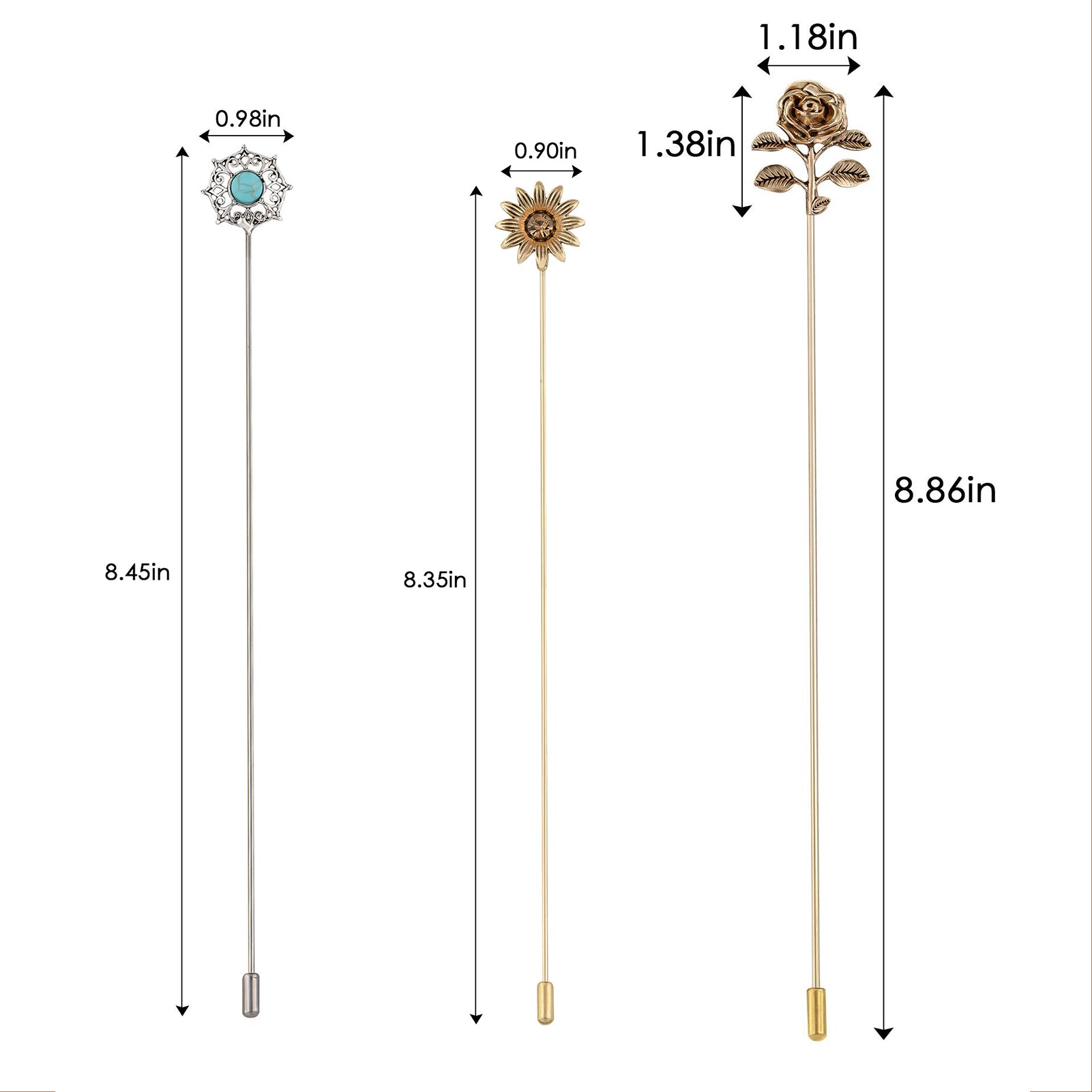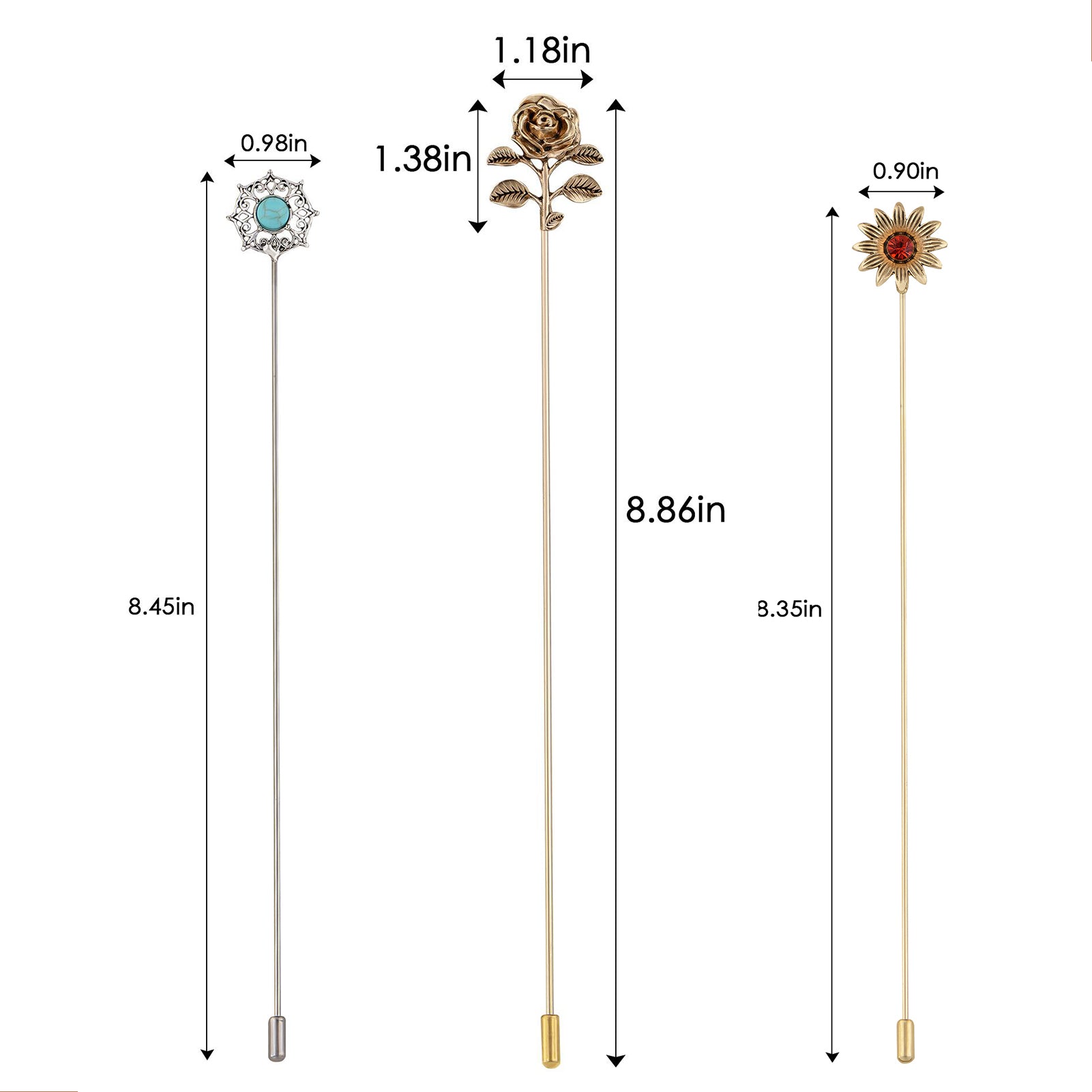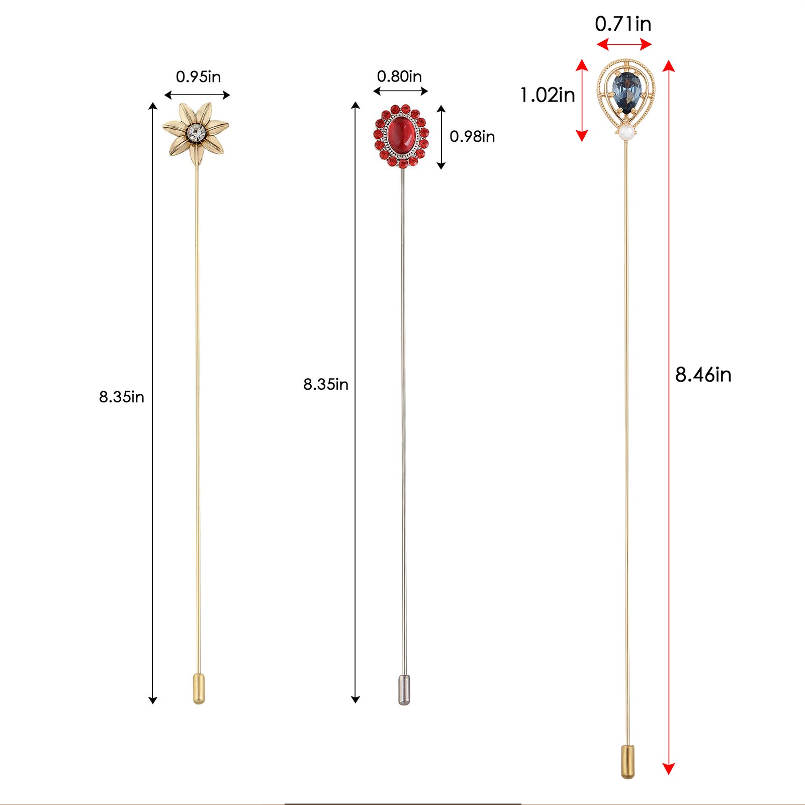 Alilang 3Pcs Classic Hat Pins Safety Long Handle Lapel Pin Suit Tie Hat Scarf Jewelry Accessories
