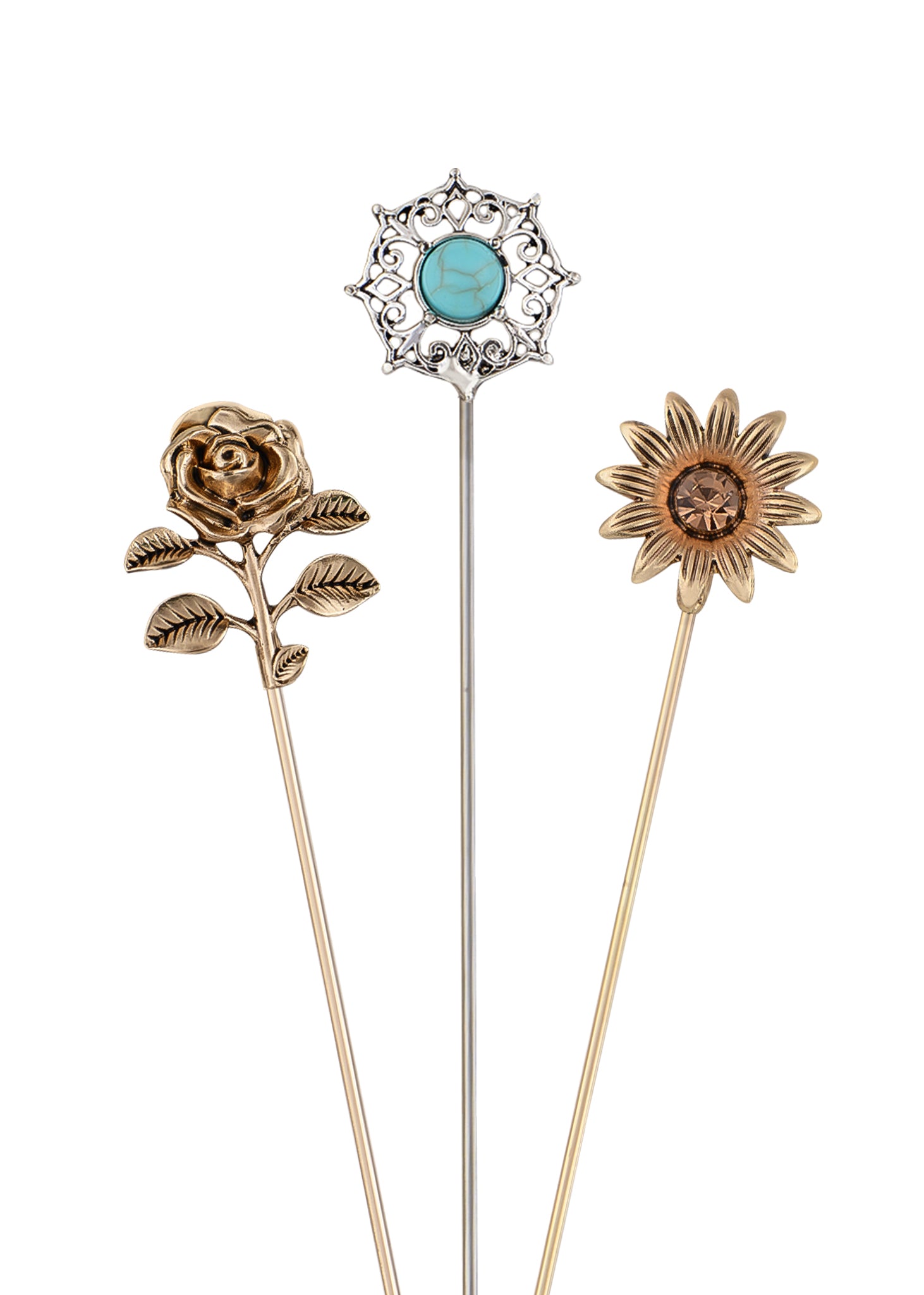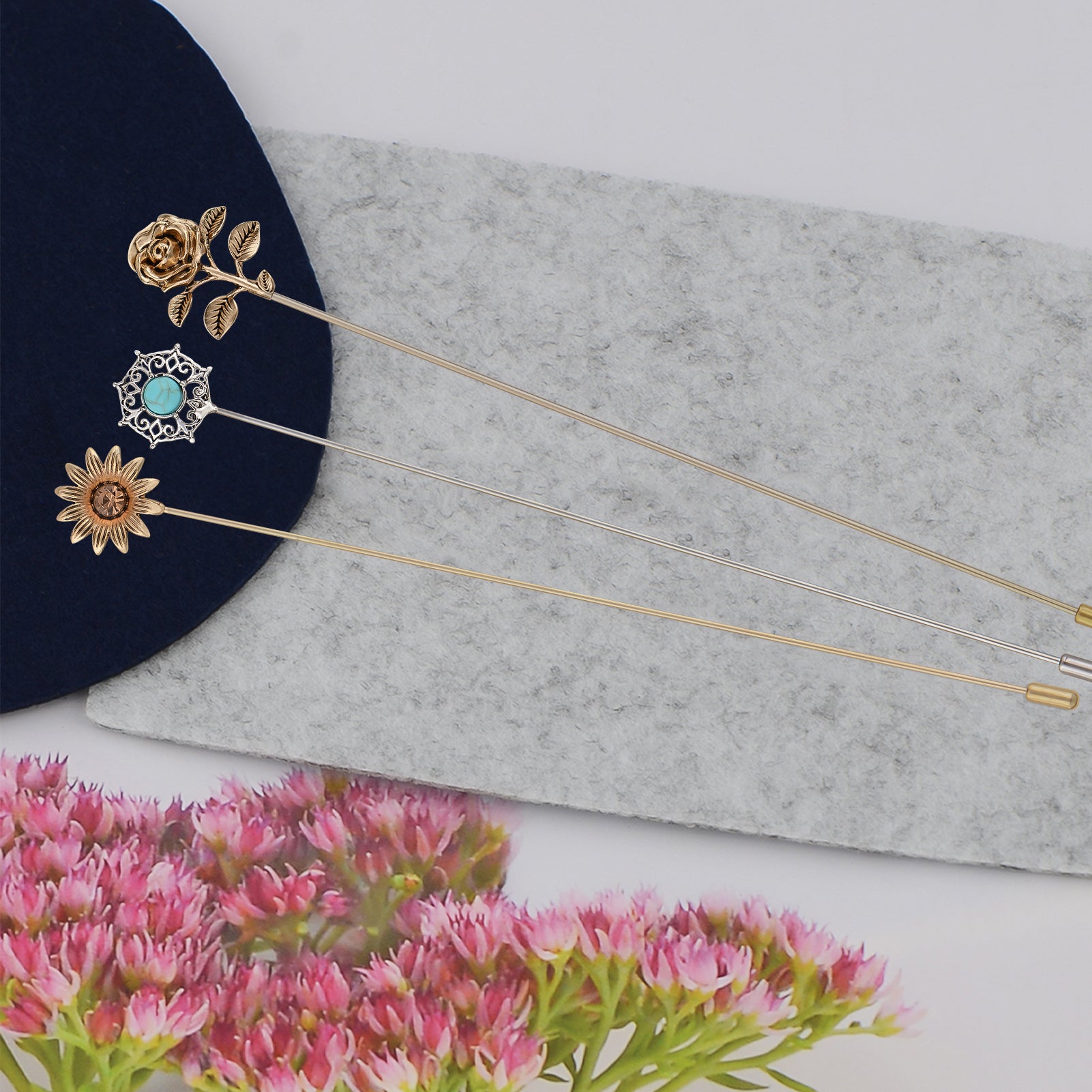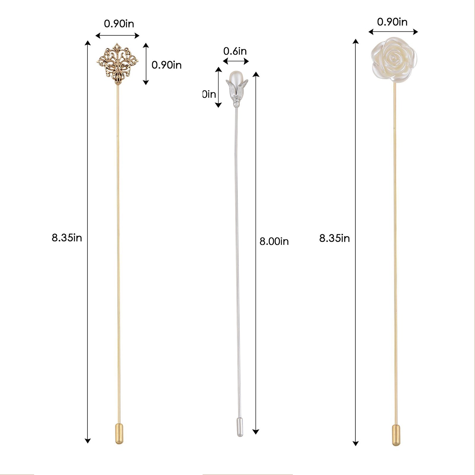 Alilang 3Pcs Classic Hat Pins Safety Long Handle Lapel Pin Suit Tie Hat Scarf Jewelry Accessories