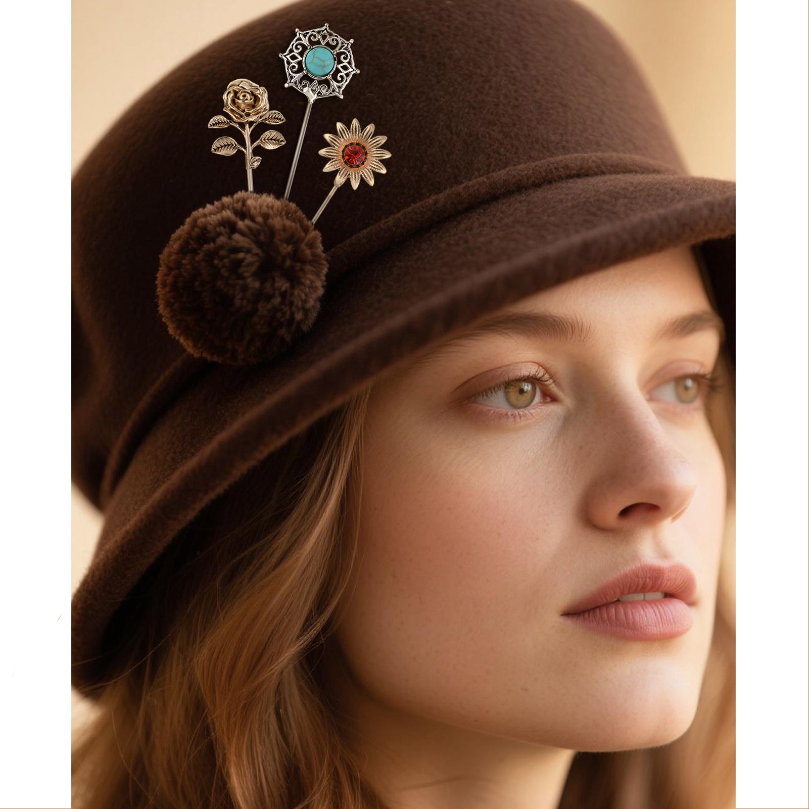Elevate your style with our exquisite collection of vintage-style brooches and pins designed specifically for women. These versatile hat and lapel pins combine functionality with fashion, featuring a flexible bendable design that ensures a secure fit for keeping your hats perfectly in place. Inspired by classic aesthetics, these jewelry accessories bring an air of nostalgia and charm to any ensemble. Whether you're accessorizing a chic fedora or adding flair to a lapel, these pins offer durability and timeless appeal. Experience the blend of form and function with our vintage-inspired hat pins today!
