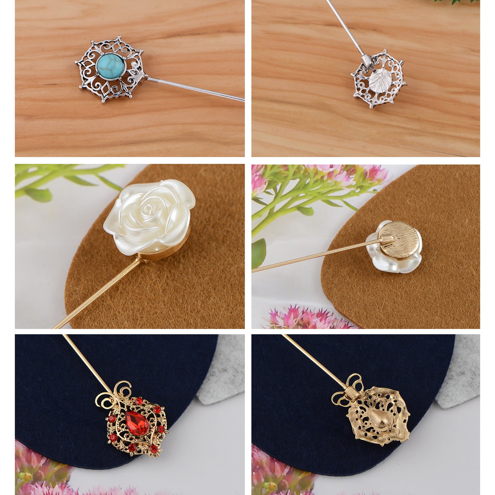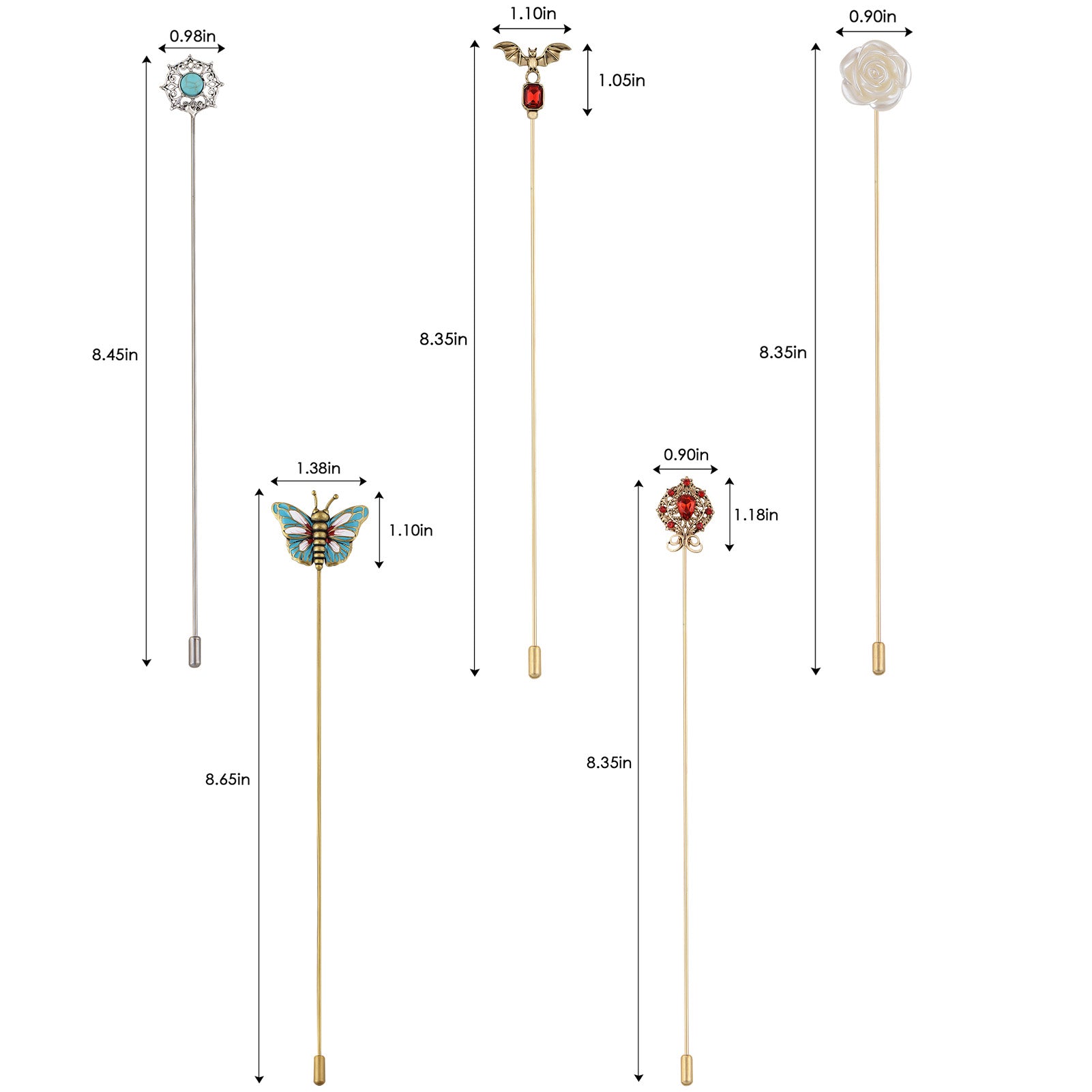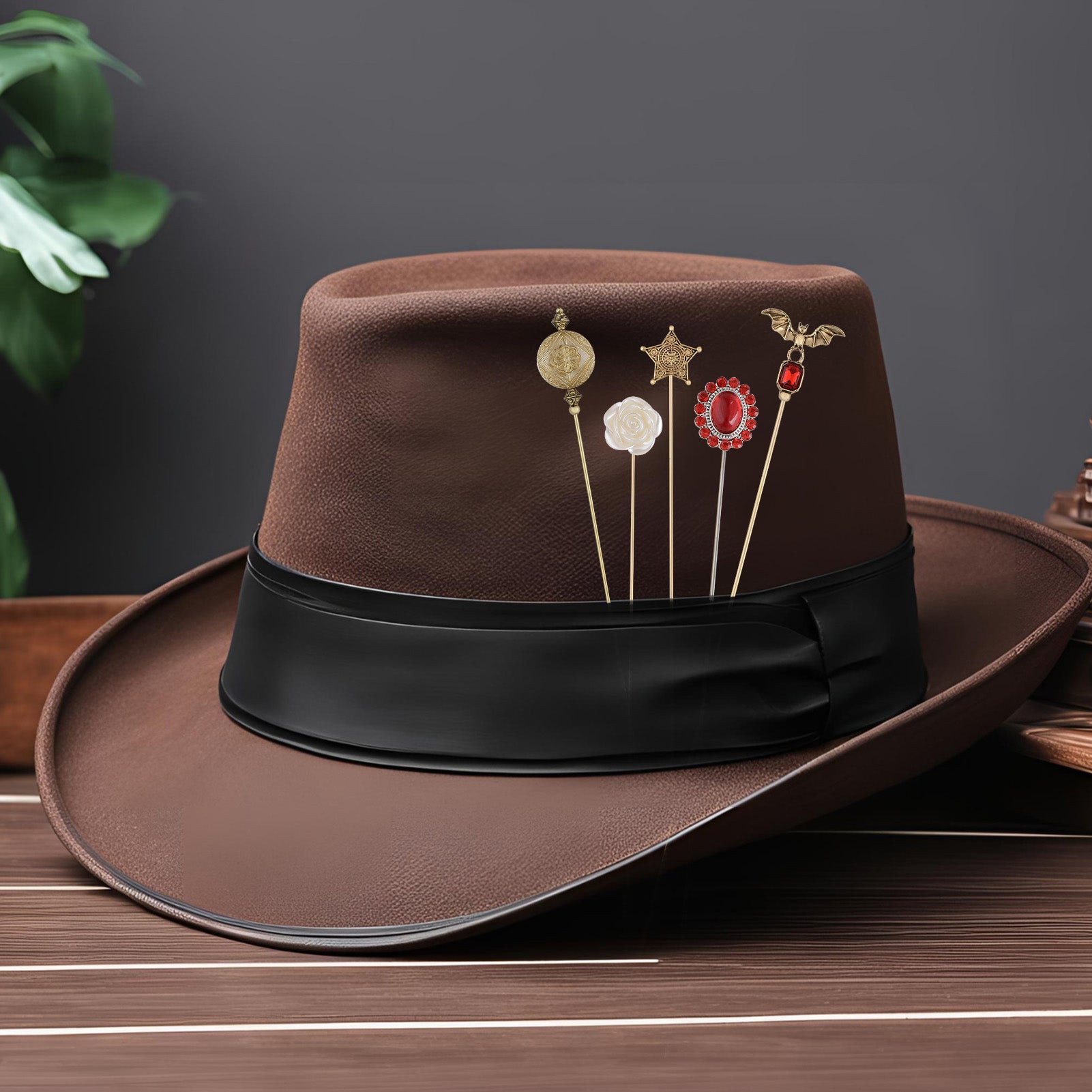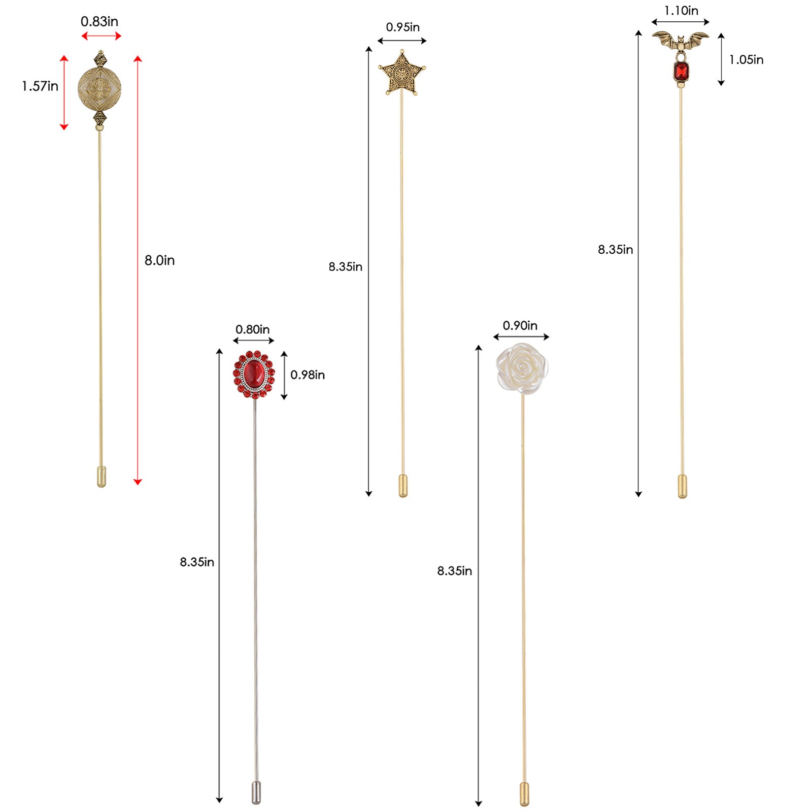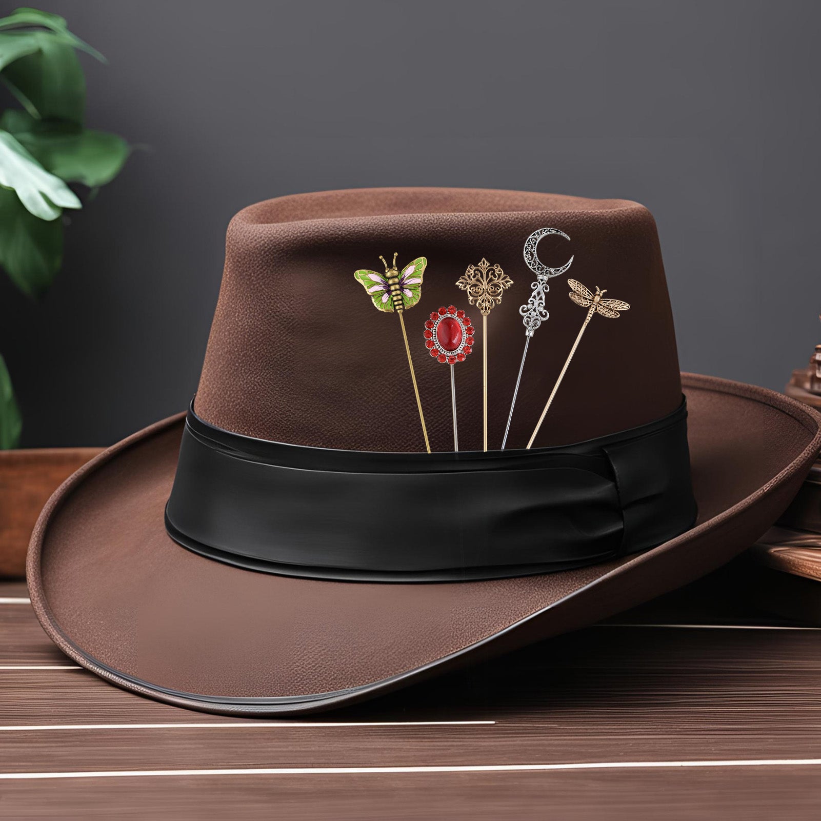 Add a touch of vintage charm to your accessories with this unique set of five decorative hat pins. Each pin features a distinct motif¡ªranging from crescent moon and star to floral and gemstone-inspired designs¡ªcrafted with antique-style metal finishes. The long pin shafts provide secure placement on hats, scarves, or lapels, while the mixed embellishments offer character and artistic flair. This versatile set is ideal for period styling, costume wear, or simply enhancing your everyday wardrobe with a nostalgic twist.