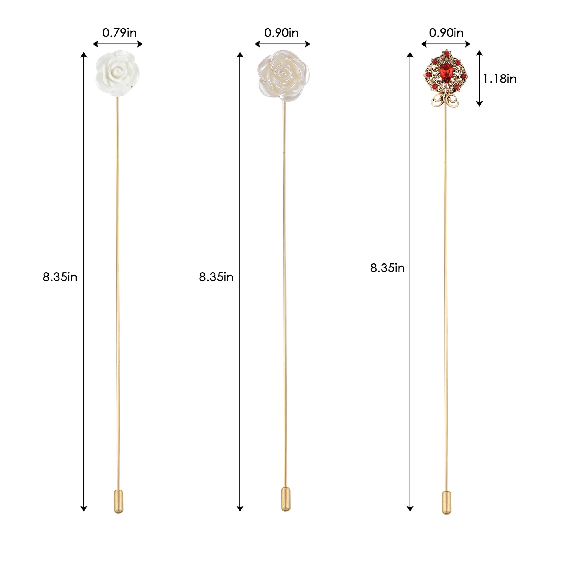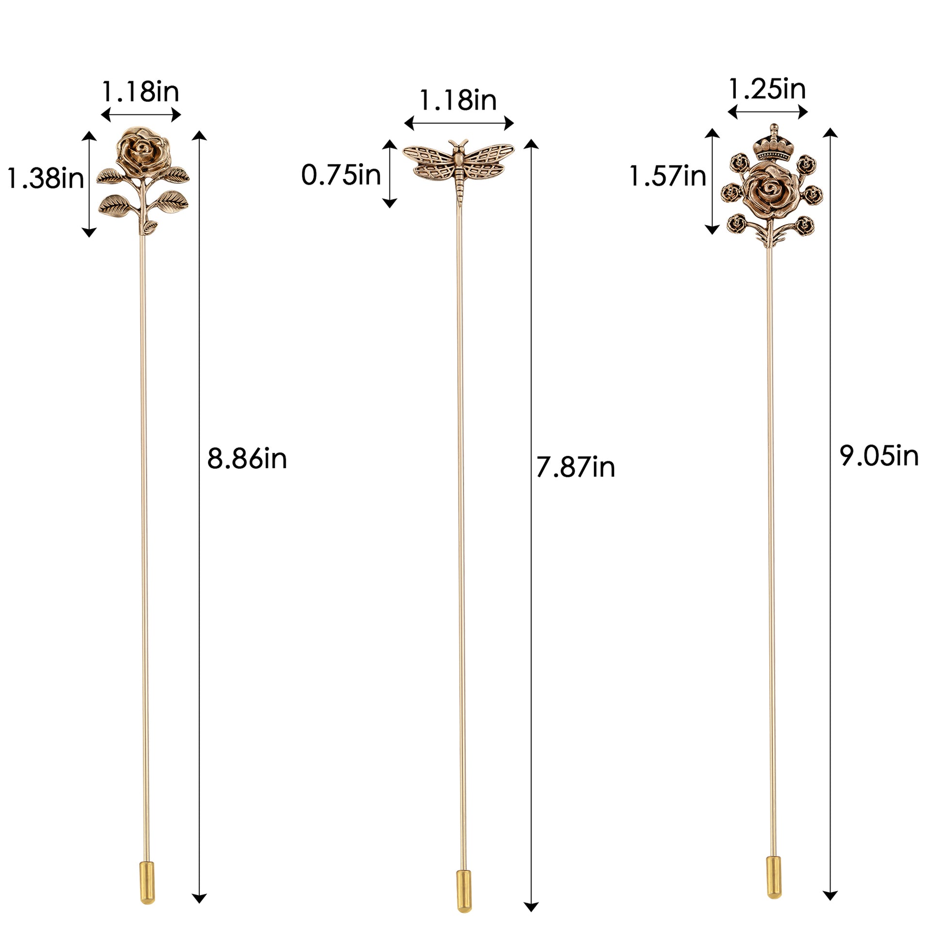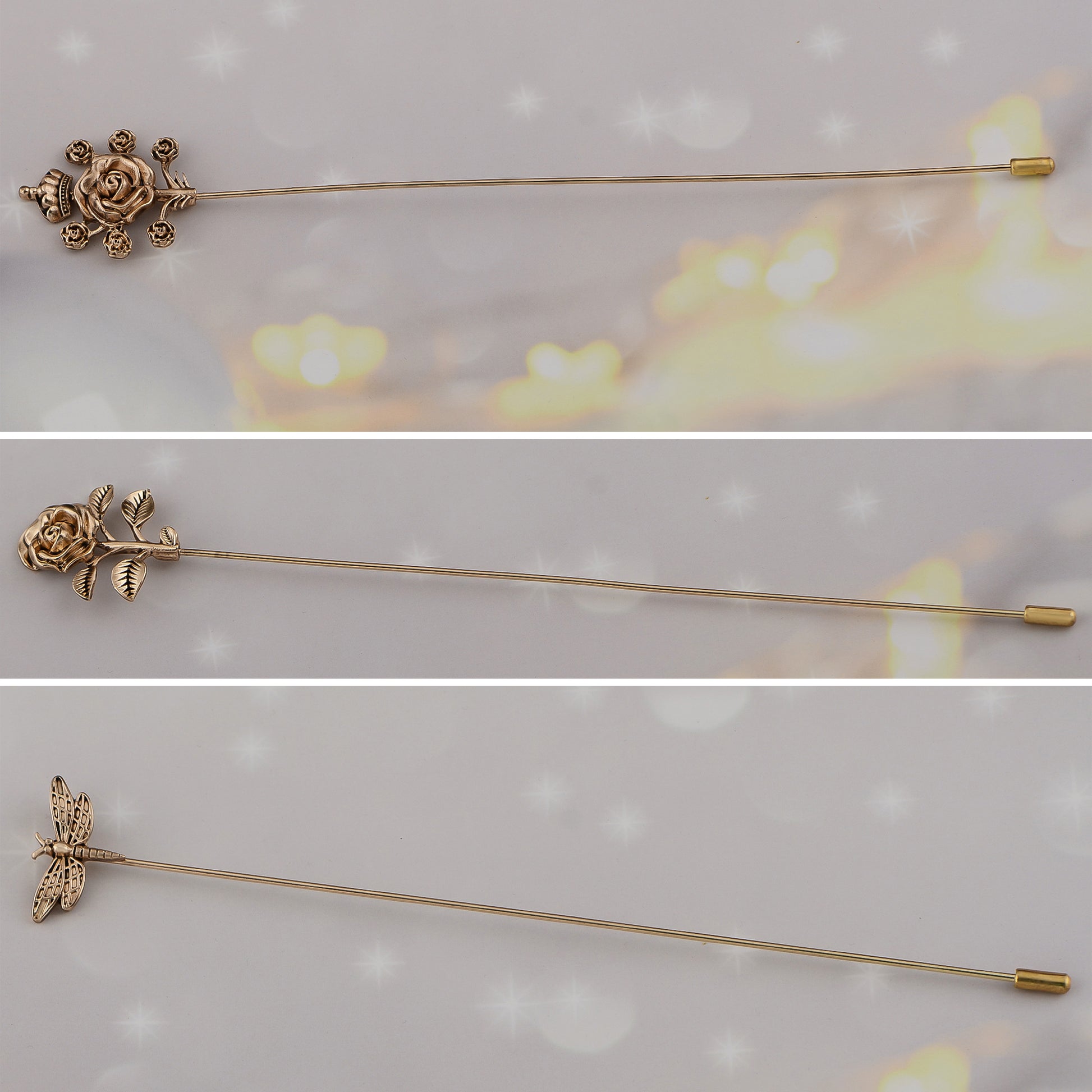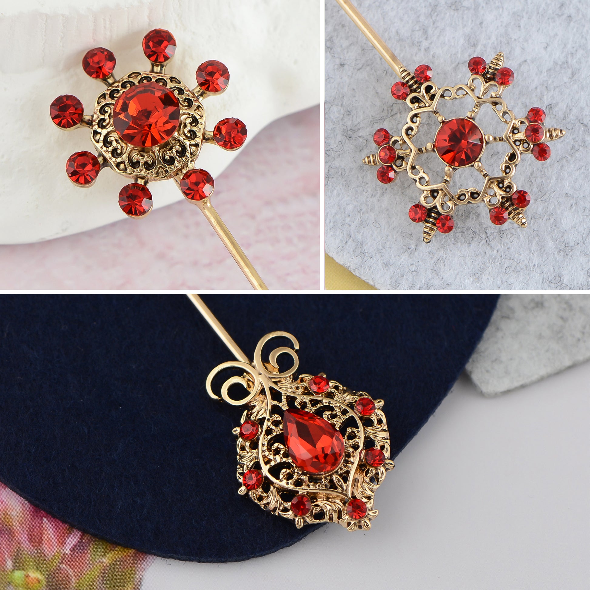 This 3-piece Alilang hat pin set brings retro elegance to your wardrobe with its bendable construction and secure stick-pin design. Rose, butterfly, and flower pattern etc perfect for accessorizing hats, scarves, or lapels, ideal for styling at events or everyday fashion statements.