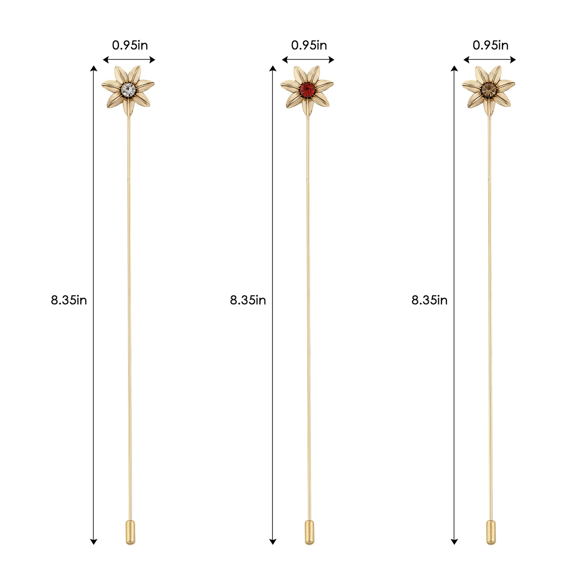 Alilang Vintage 3Pcs Long Stick Hat Pin Crystal Flower and Butterfly for Classic Hat and Lapel Brooch Pins Accessorizin