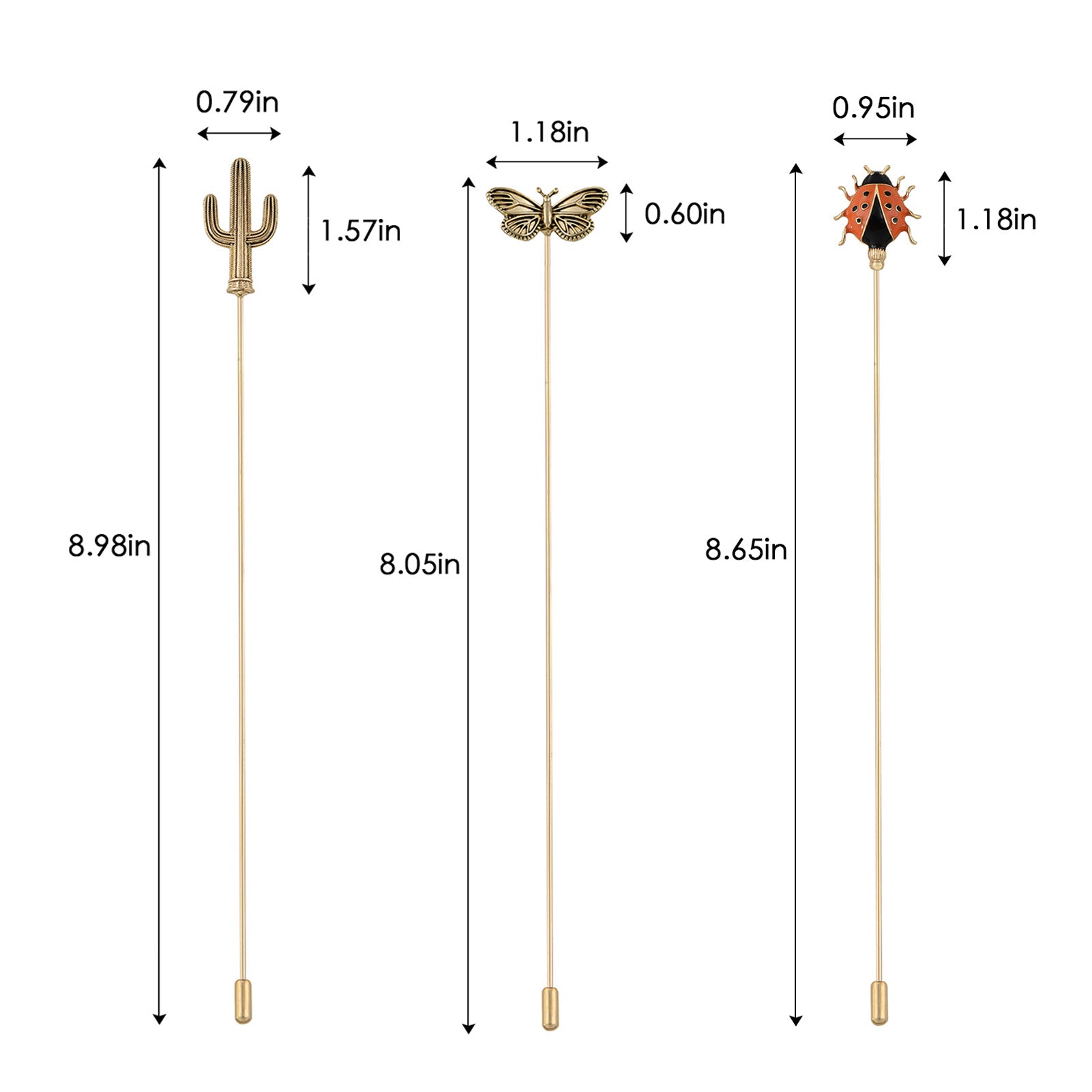 Alilang 3Pcs Vintage Long Handle Hat Pins Jewelry Different Shapes Funny Pins are Suitable for Hats Scarves Clothing