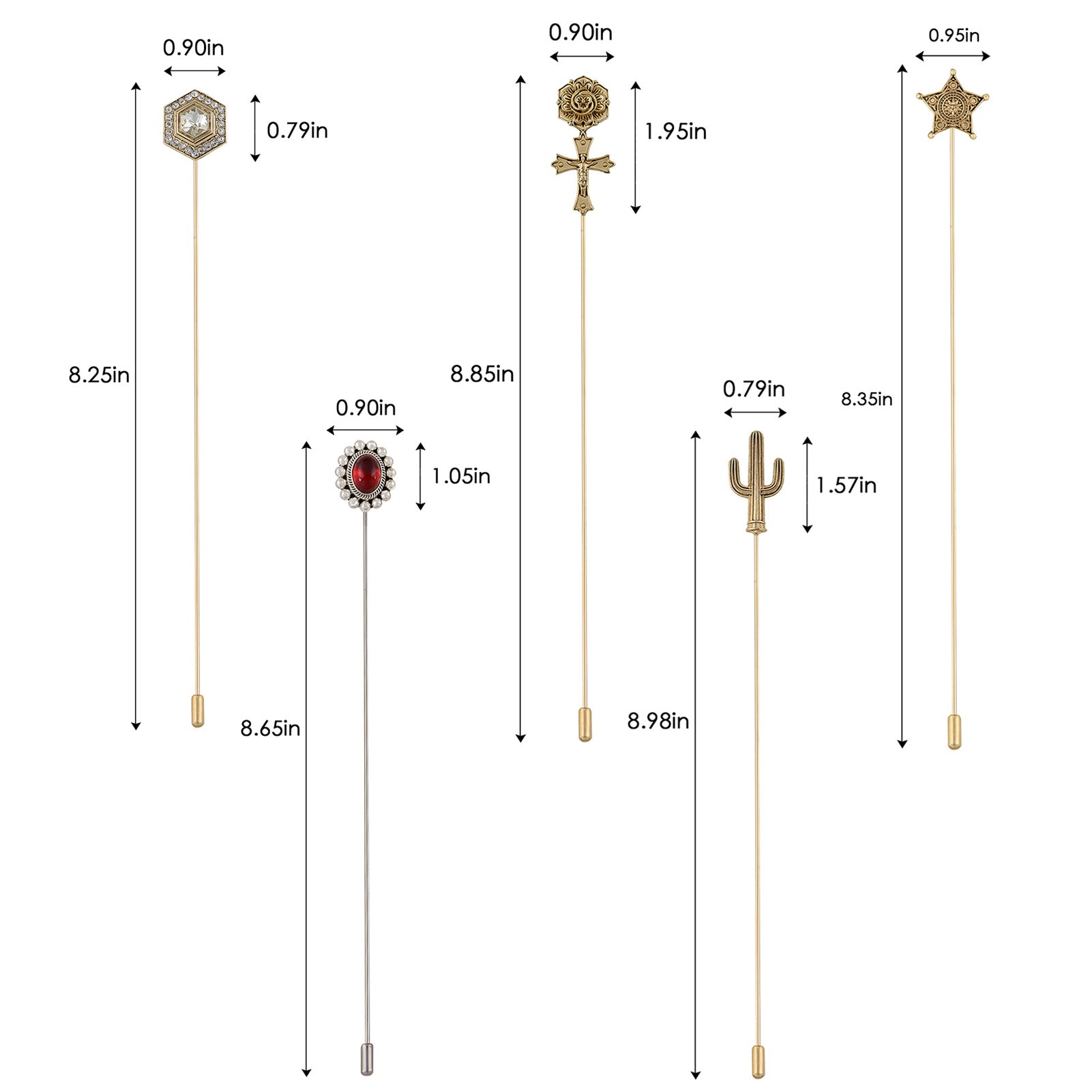 Alilang 5Pcs Vintage Butterfly Hat Pins for Women Antique Gold Long Pins with Crystal