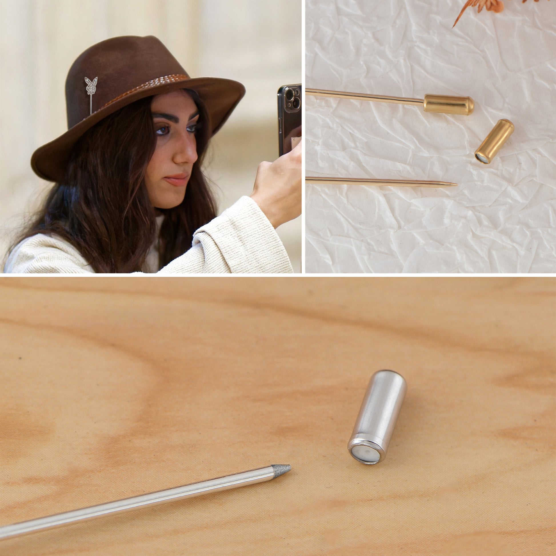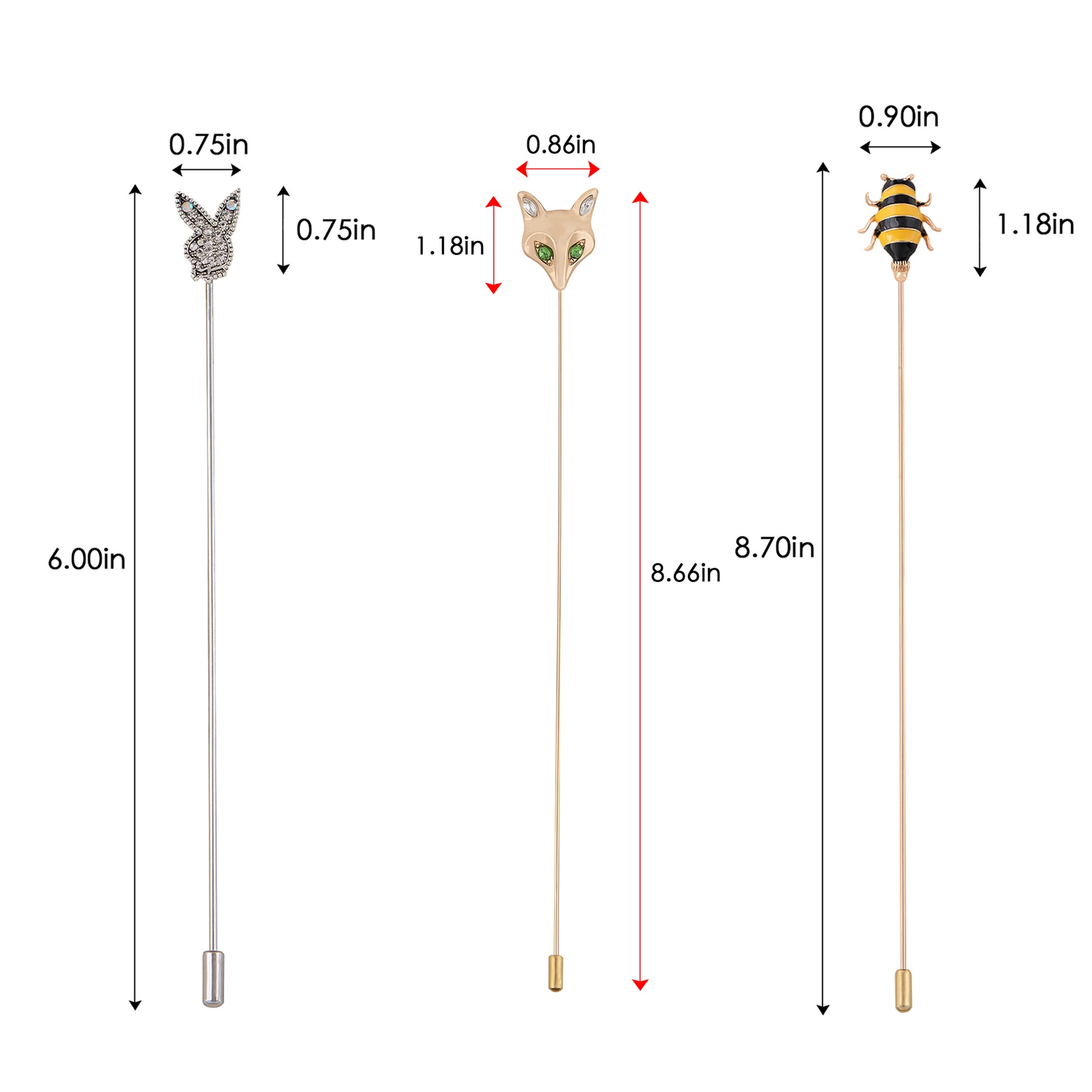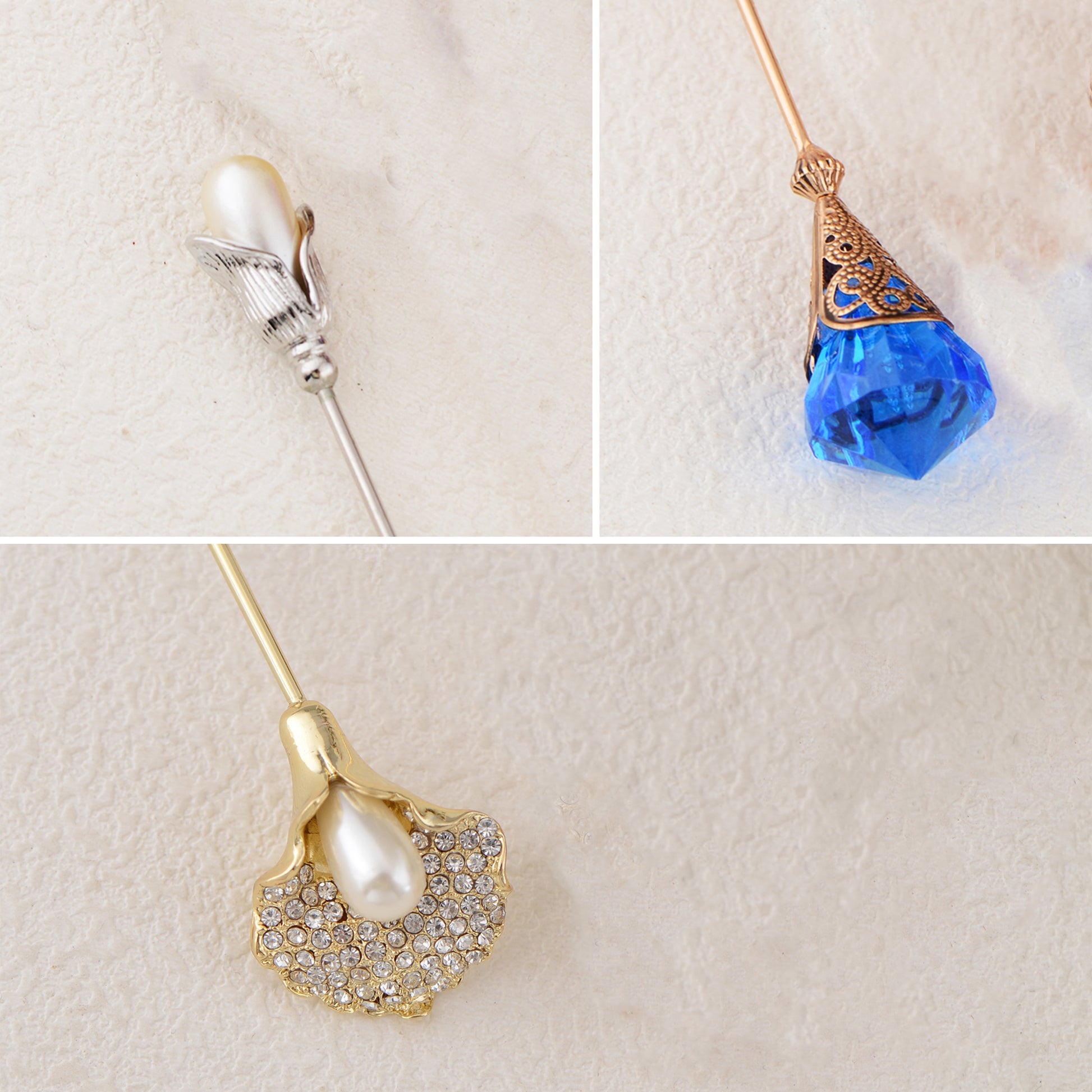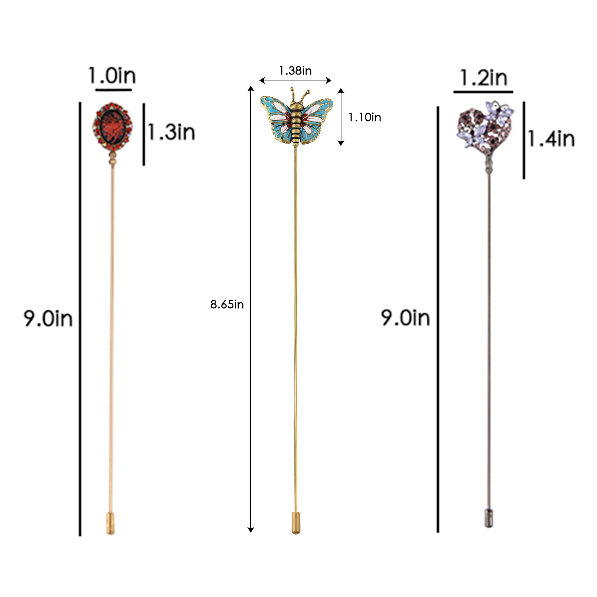 This set of three hat pin brooches features a variety of whimsical and elegant designs including animals, florals, and vintage motifs. Each pin is flexible for bending and comes with a secure safety cap for easy wear on hats, jackets, bags, or lapels. A creative way to elevate any outfit with personalized flair.