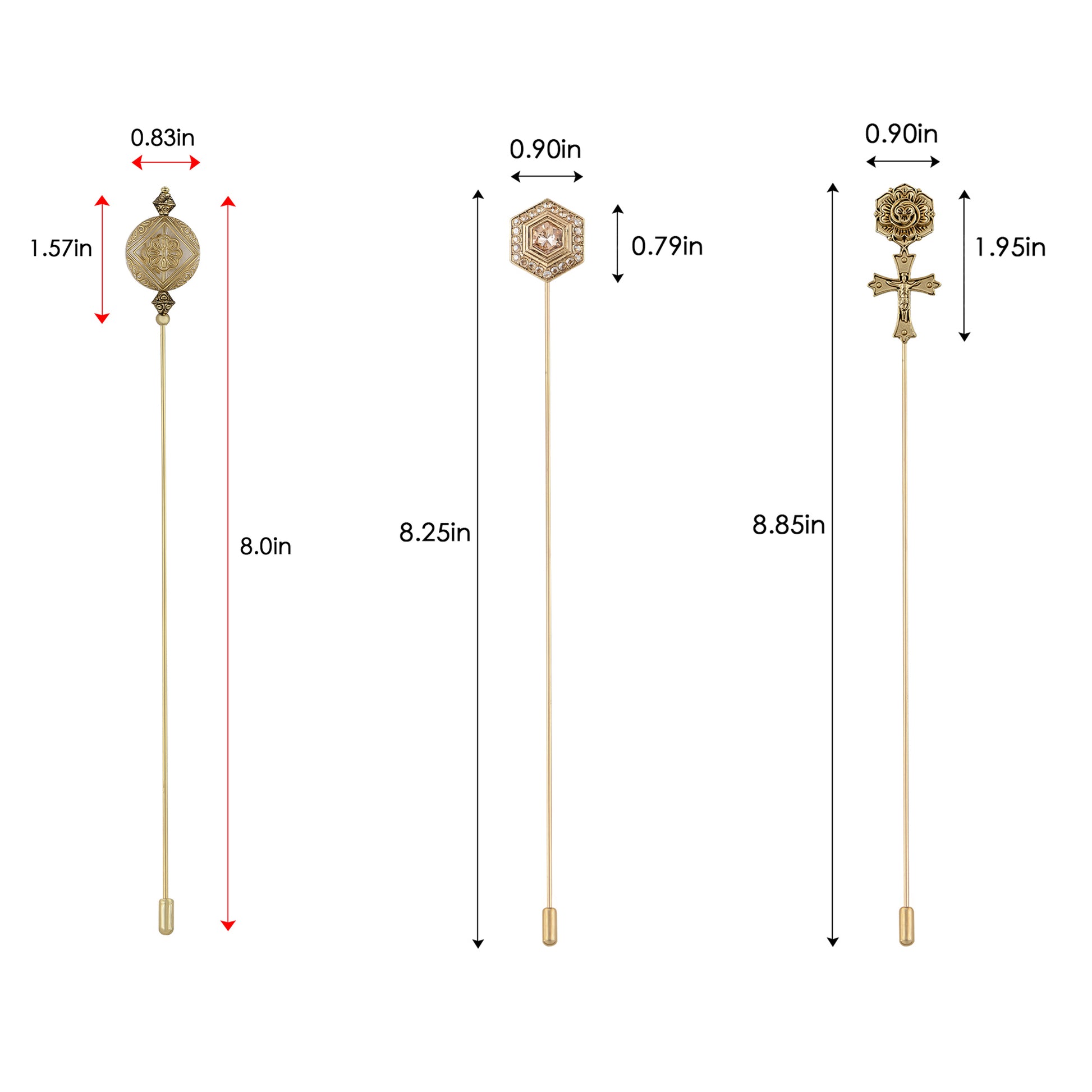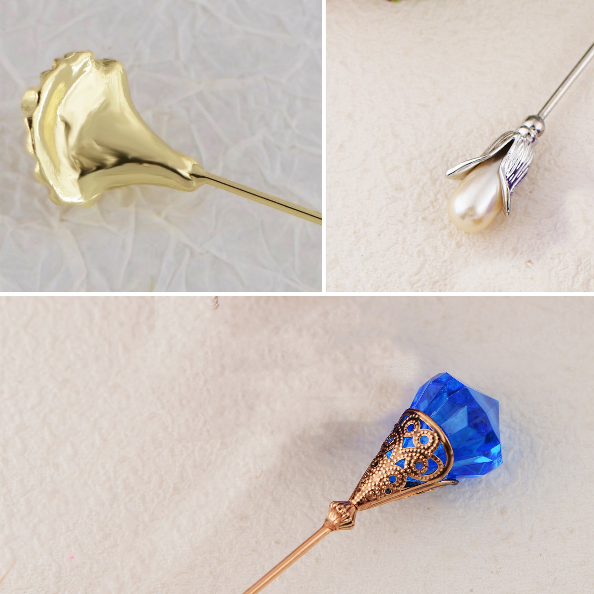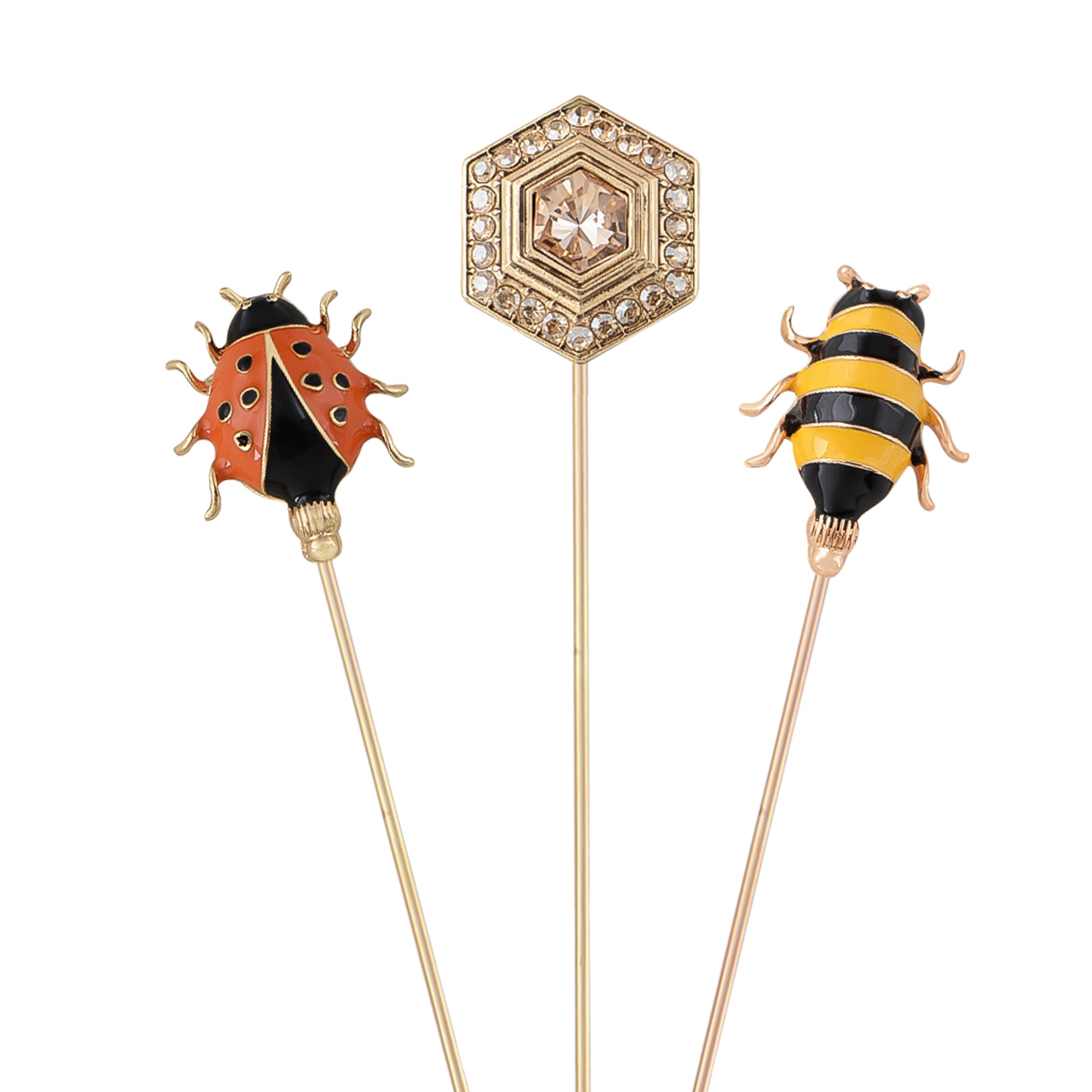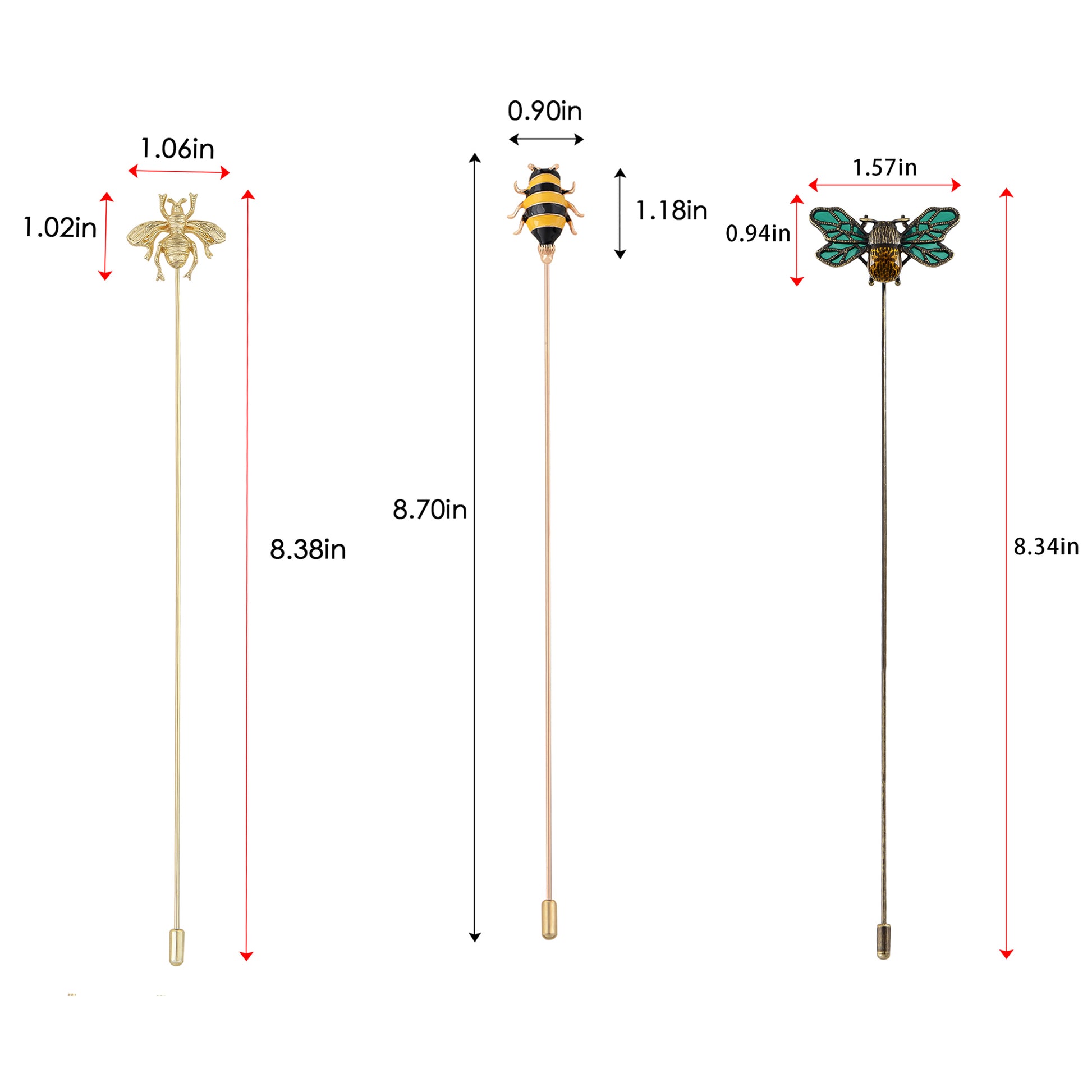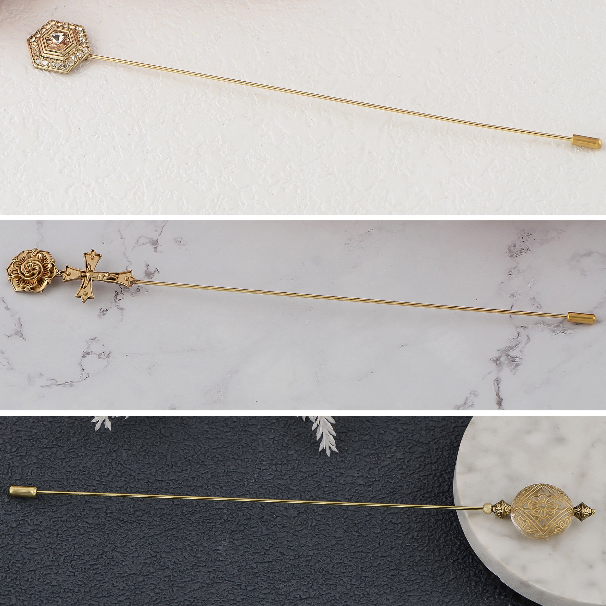 This set of three hat pin brooches features a variety of whimsical and elegant designs including animals, florals, and vintage motifs. Each pin is flexible for bending and comes with a secure safety cap for easy wear on hats, jackets, bags, or lapels. A creative way to elevate any outfit with personalized flair.