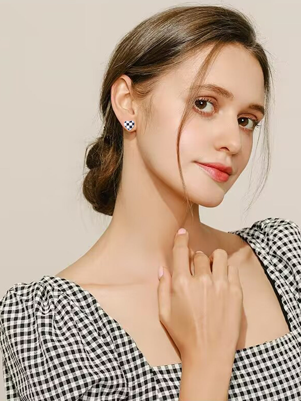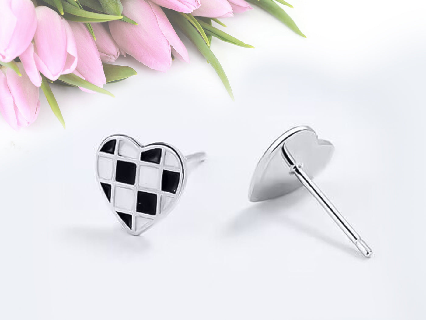 The Alilang 925 silver needle stud earrings is stylish and classic. Unique geometric design and black white checkerboard elements add fashion and elegance to your style. Dainty jewelry love heart earrings for women is a great gift for Valentine's Day, Christmas, birthday, or anniversary.
