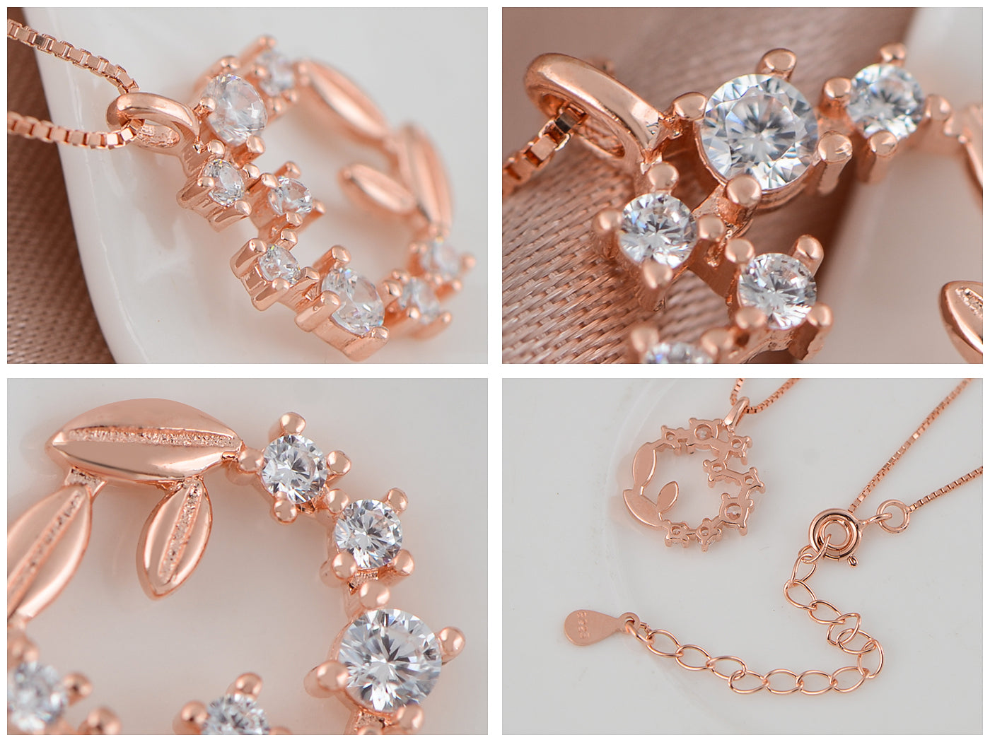 - Wreath Necklace Materials: The circle necklace chain is made of s925 sterling silver, plated with eco-friendly rose/white gold and embellished with sparkling rhinestones on the pendant. Well-polished wreath pendant necklace is lead-free, nickel-free and hypoallergenic, safe and comfortable to wear.