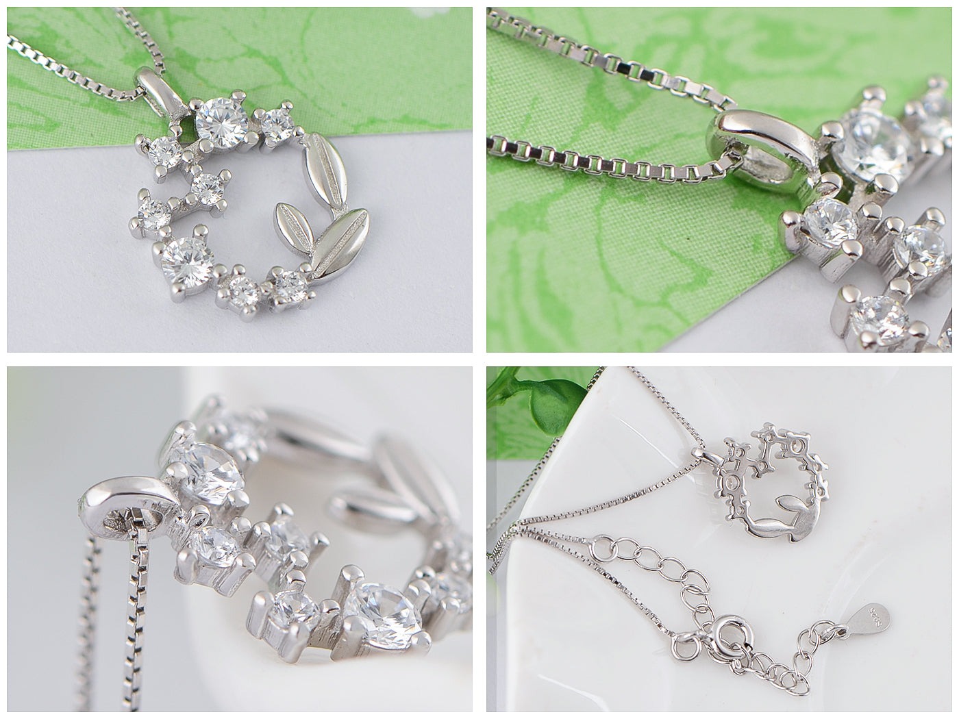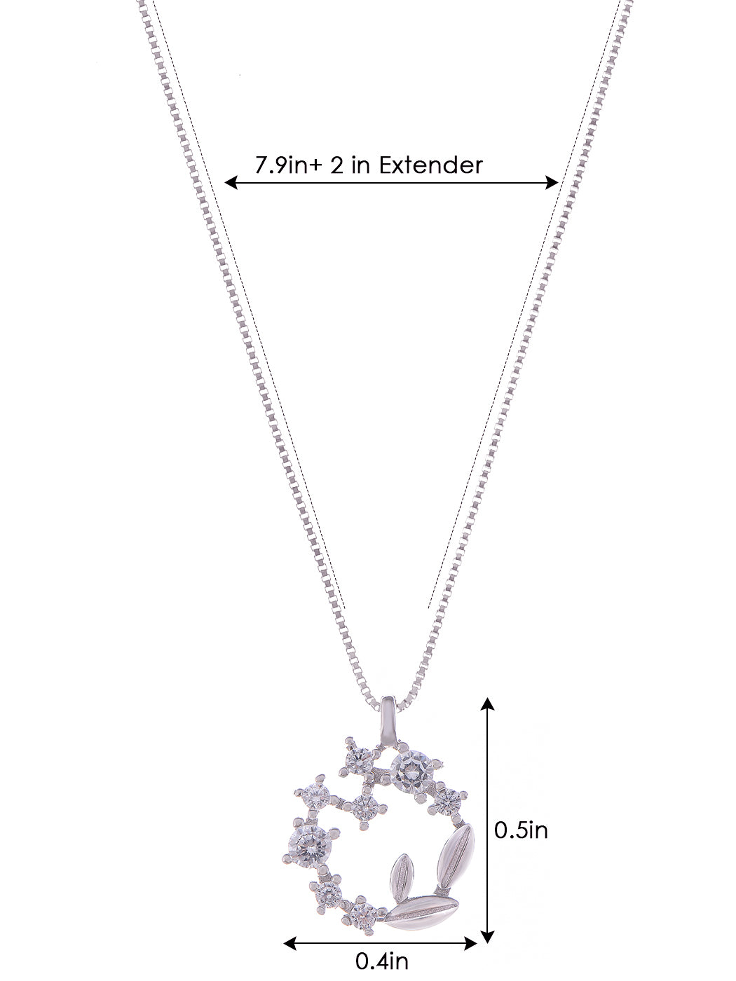 - Silver Necklace Size: Our wreath pendant necklace chain is dainty but strong! The chain length is about 16.0"+2.0"adjustable (40cm+5cm). This length of the elegant and lightweight sterling silver diamond necklace works on practically anyone and looks great with most of your clothes.