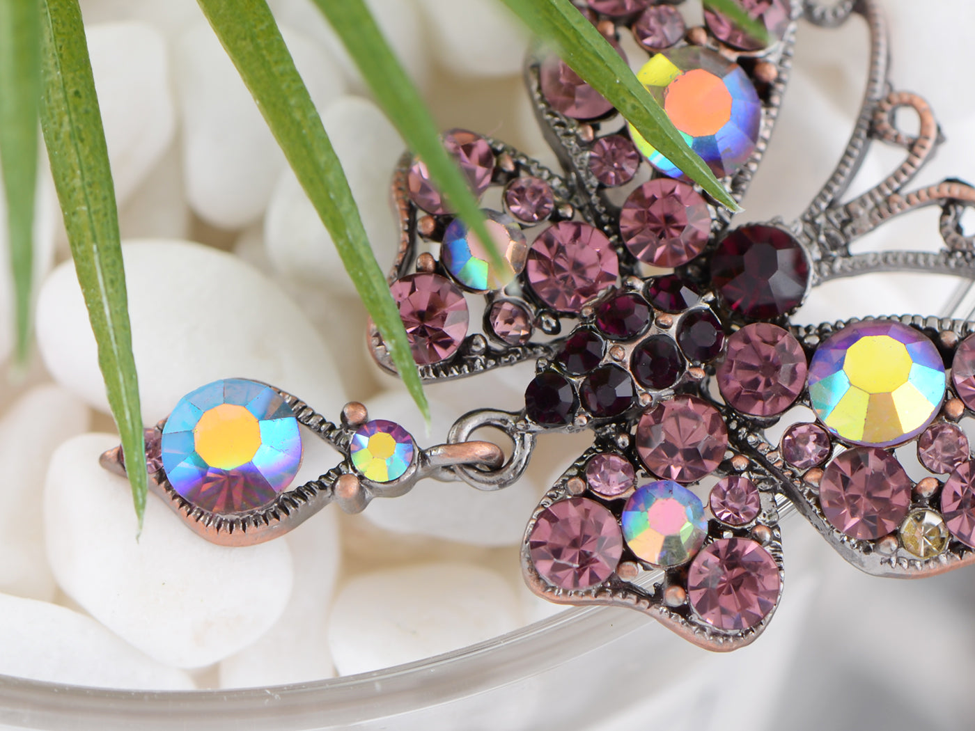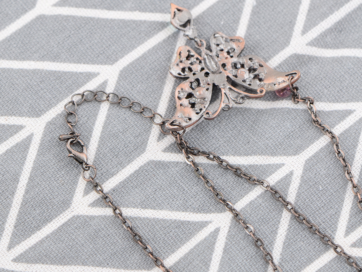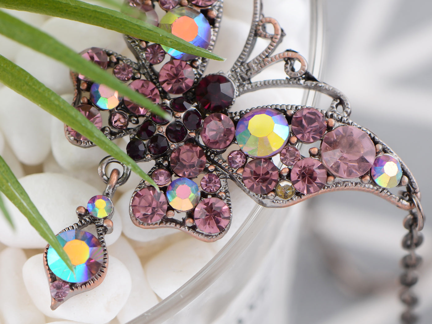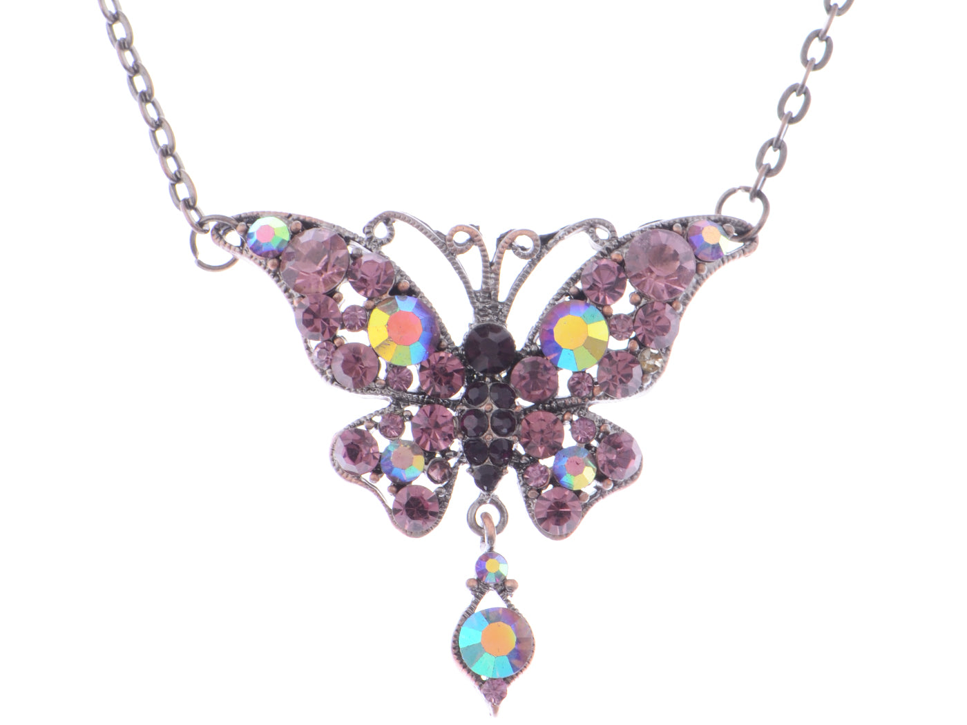 Alilang Silver Tone Purple Colored Stone Butterfly Insect Wings Pendant Necklace