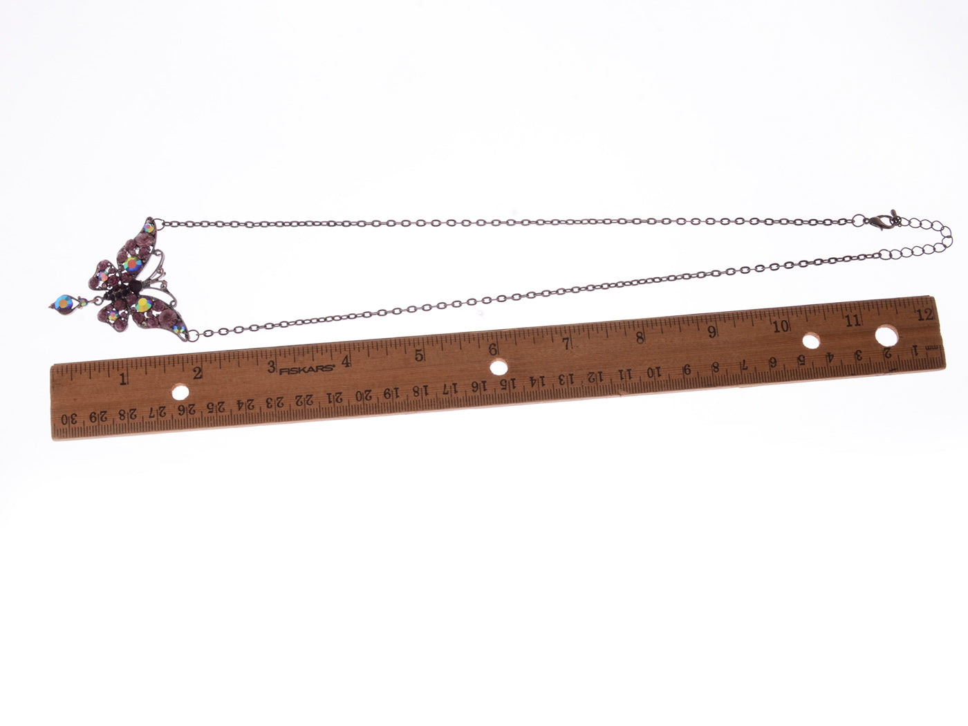 UNIQUE DESIGN - chain necklace featuring butterfly charm with multicolored rhinestones and painted glitter enamel.