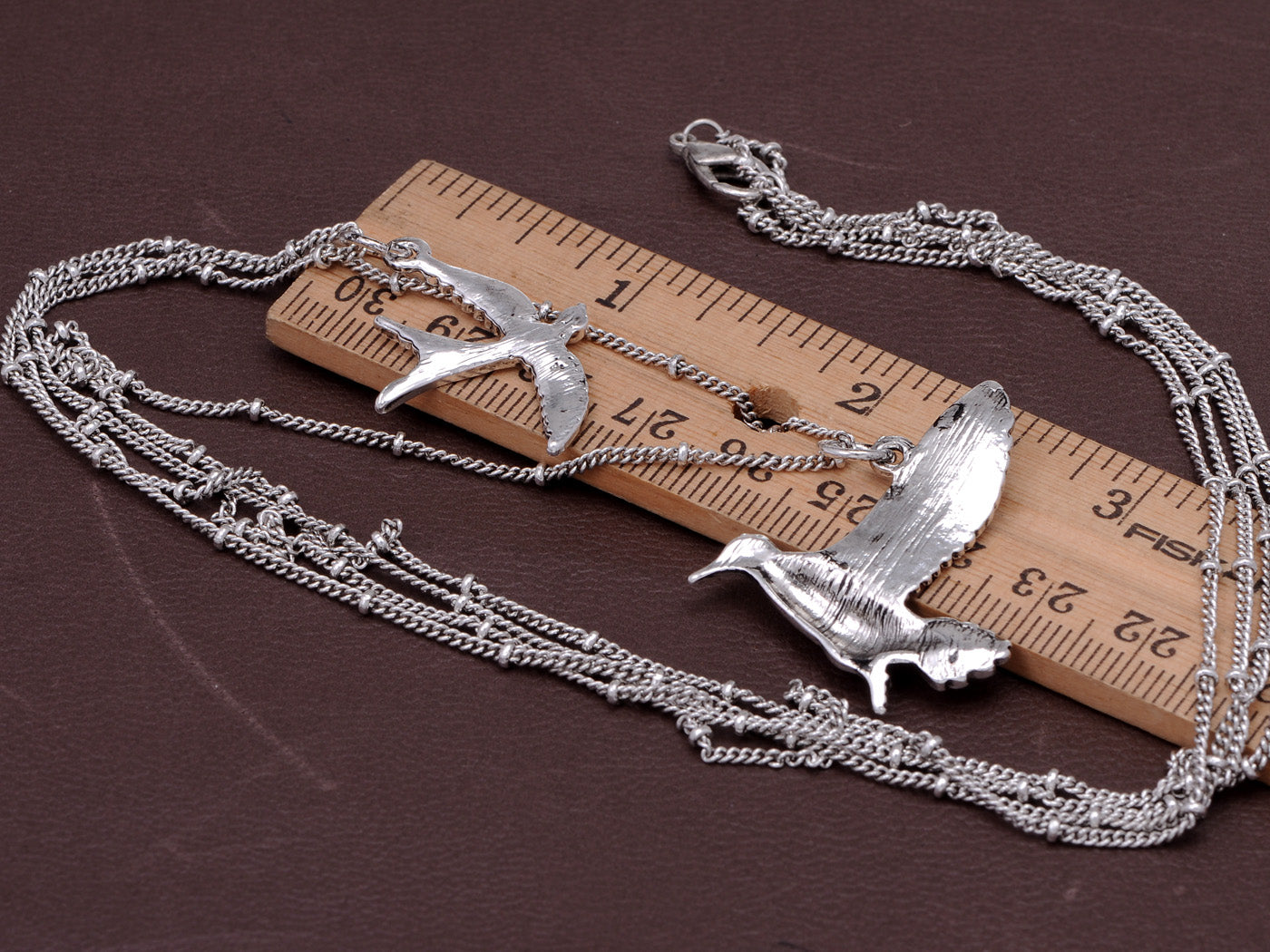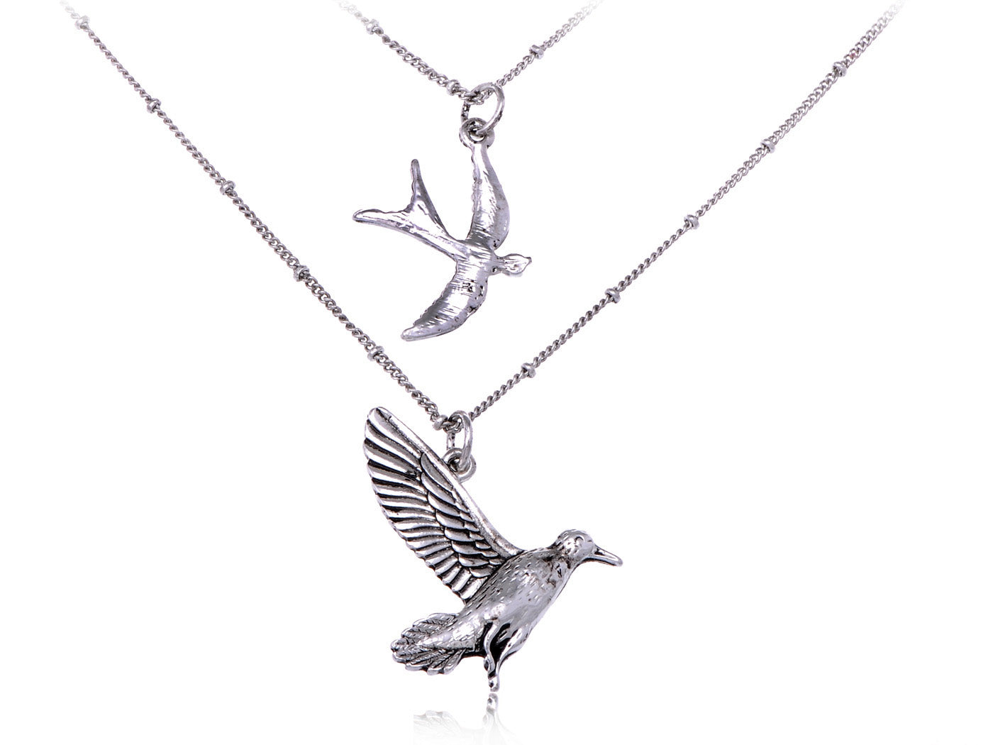 Enamel Double Chain Style Bird Necklace With Locking Clasp