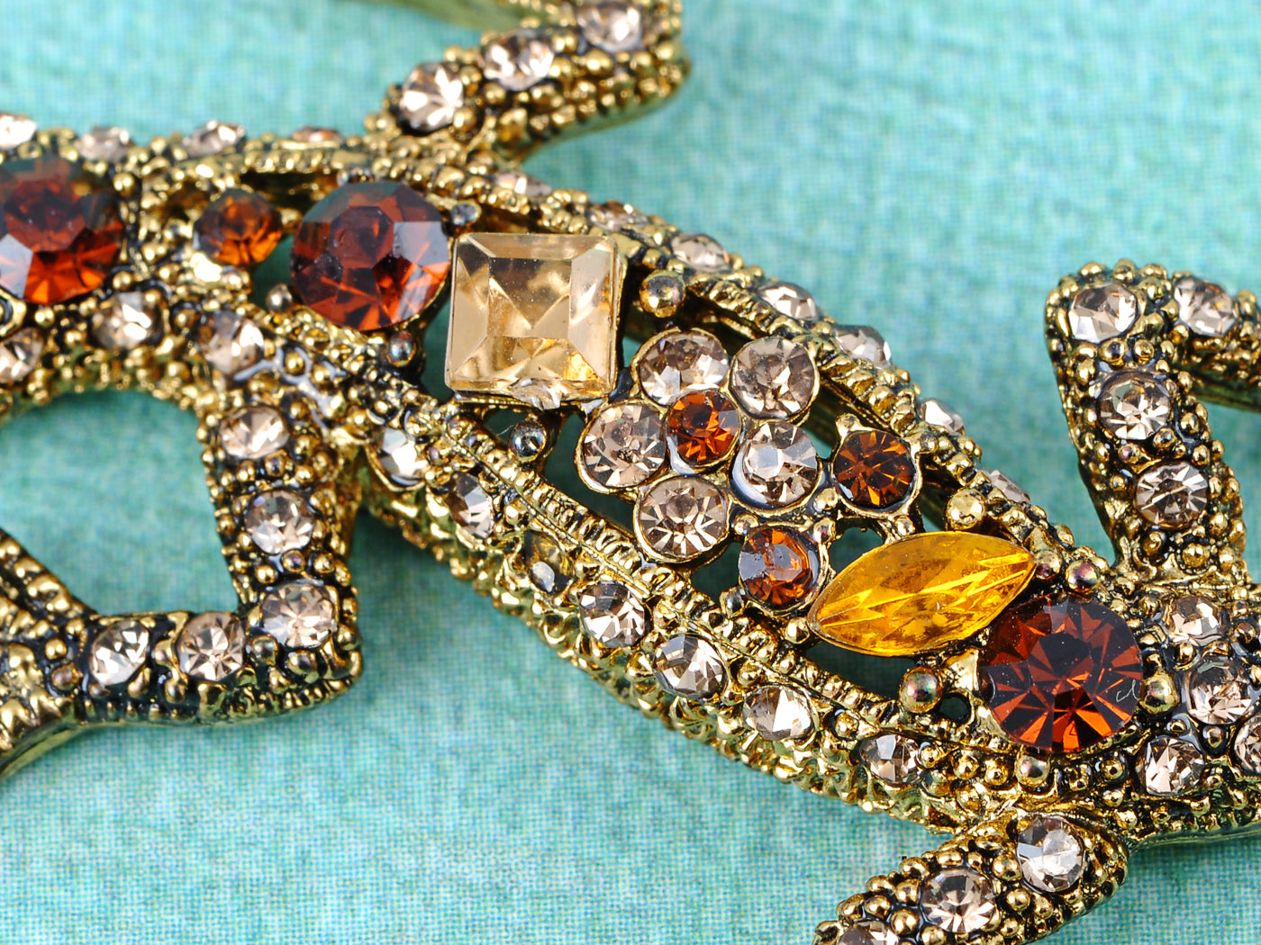 - UNIQUE DESIGN - Long tail lizard design featuring silver and mermaid colored rhinestones.
