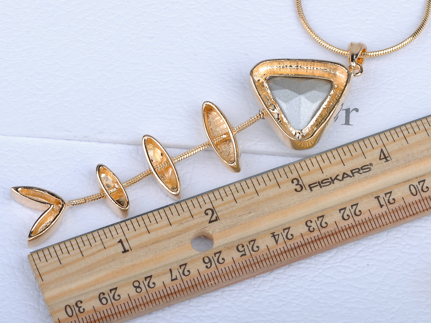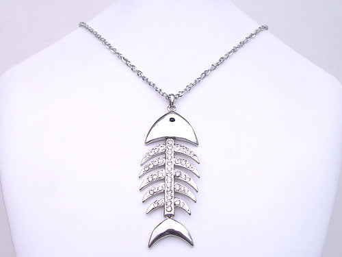 - UNIQUE DESIGN - Cascade chain necklace featuring a fishbone pendant with clear crystal colored rhinestones.