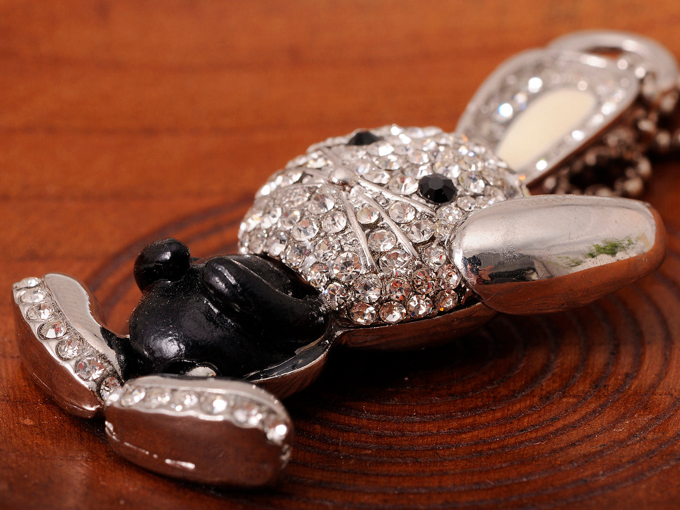 - WHIMSICAL DESIGN - This is an adorable silver ninja rabbit necklace with a black enamel body that contains silver crystal rhinestones throughout, along with black crystal rhinestone eyes.