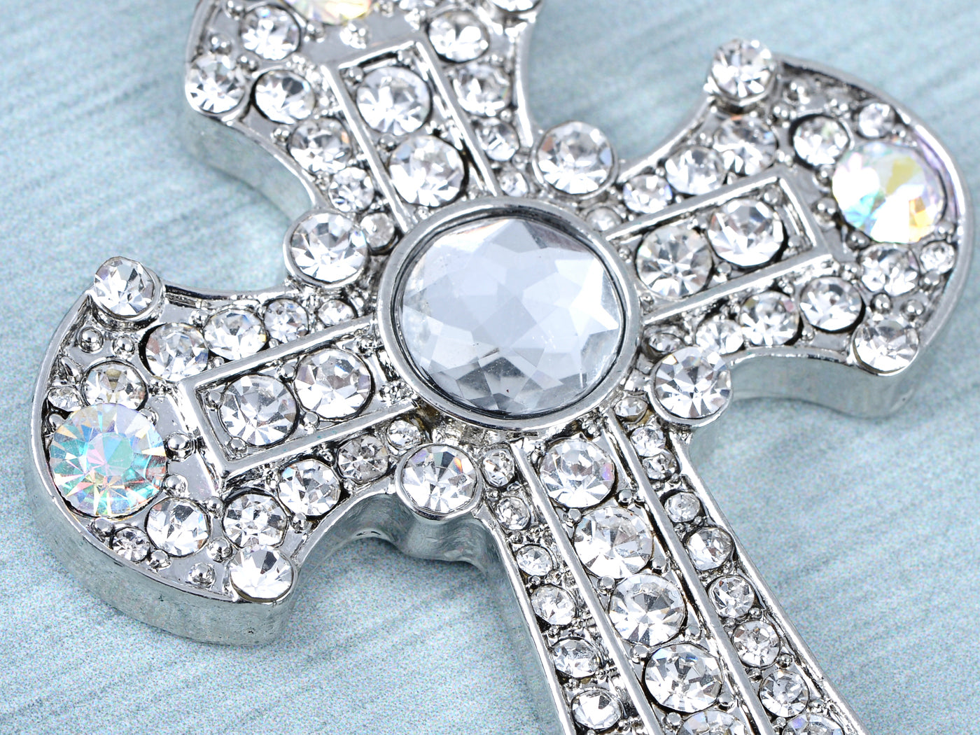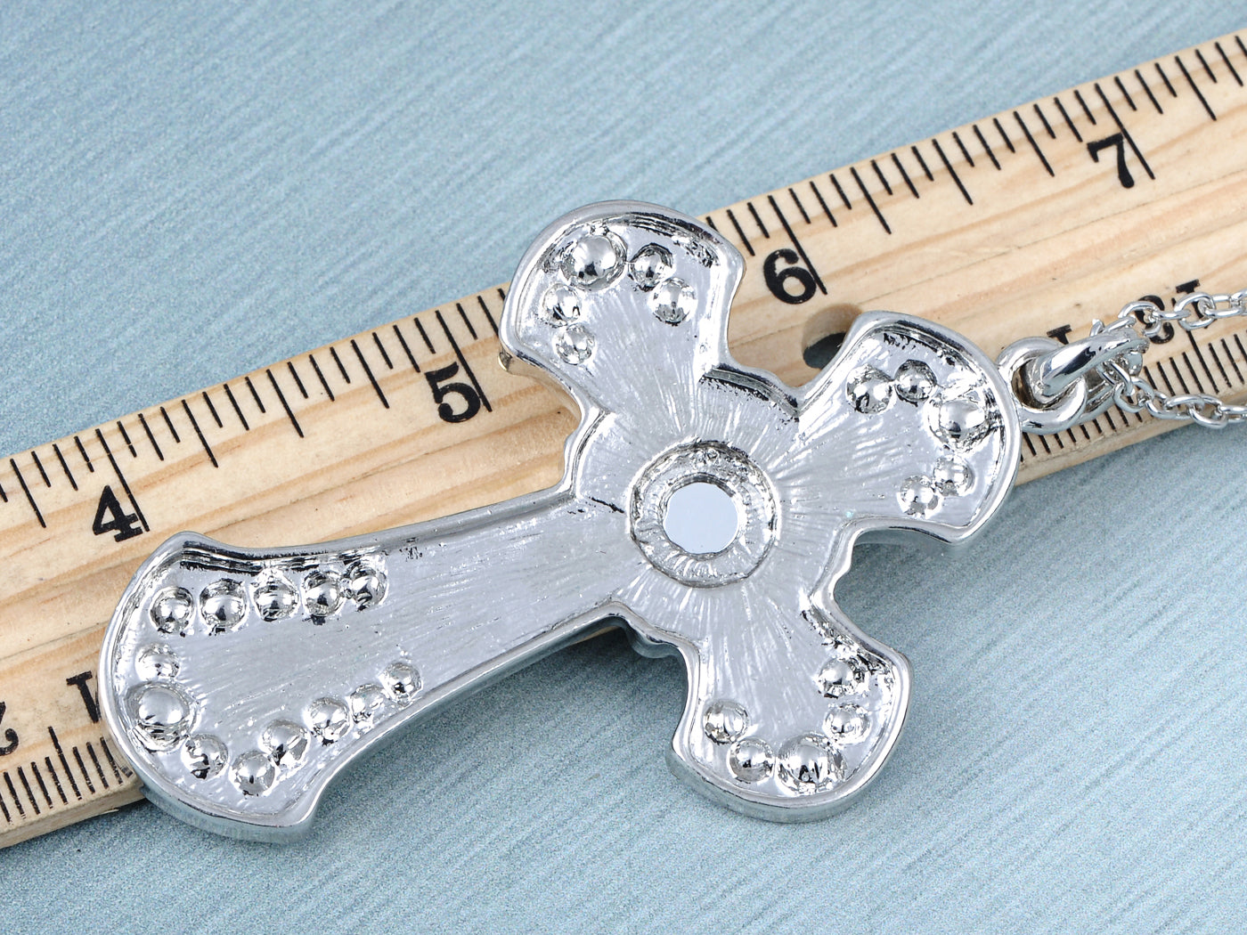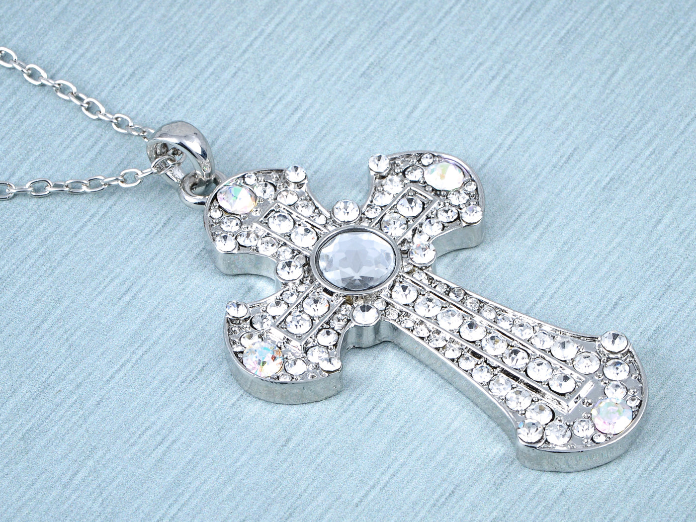 - RADIANT ACCESSORY - Show your faith with this unique clear rhinestone encrusted cross! This stunning necklace features a celtic inspired cross pendant with silver toned trim and dangling from a delicate chain.