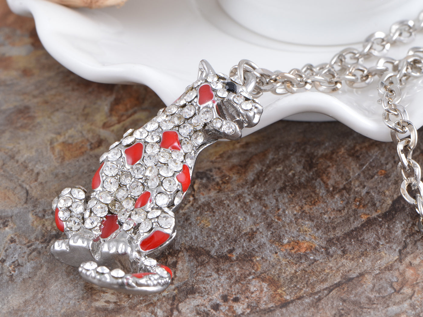 - UNIQUE DESIGN - The stunning silvery tone necklace featuring a leopard panther animal pendent design with sparkly clear and red crystal rhinestones.