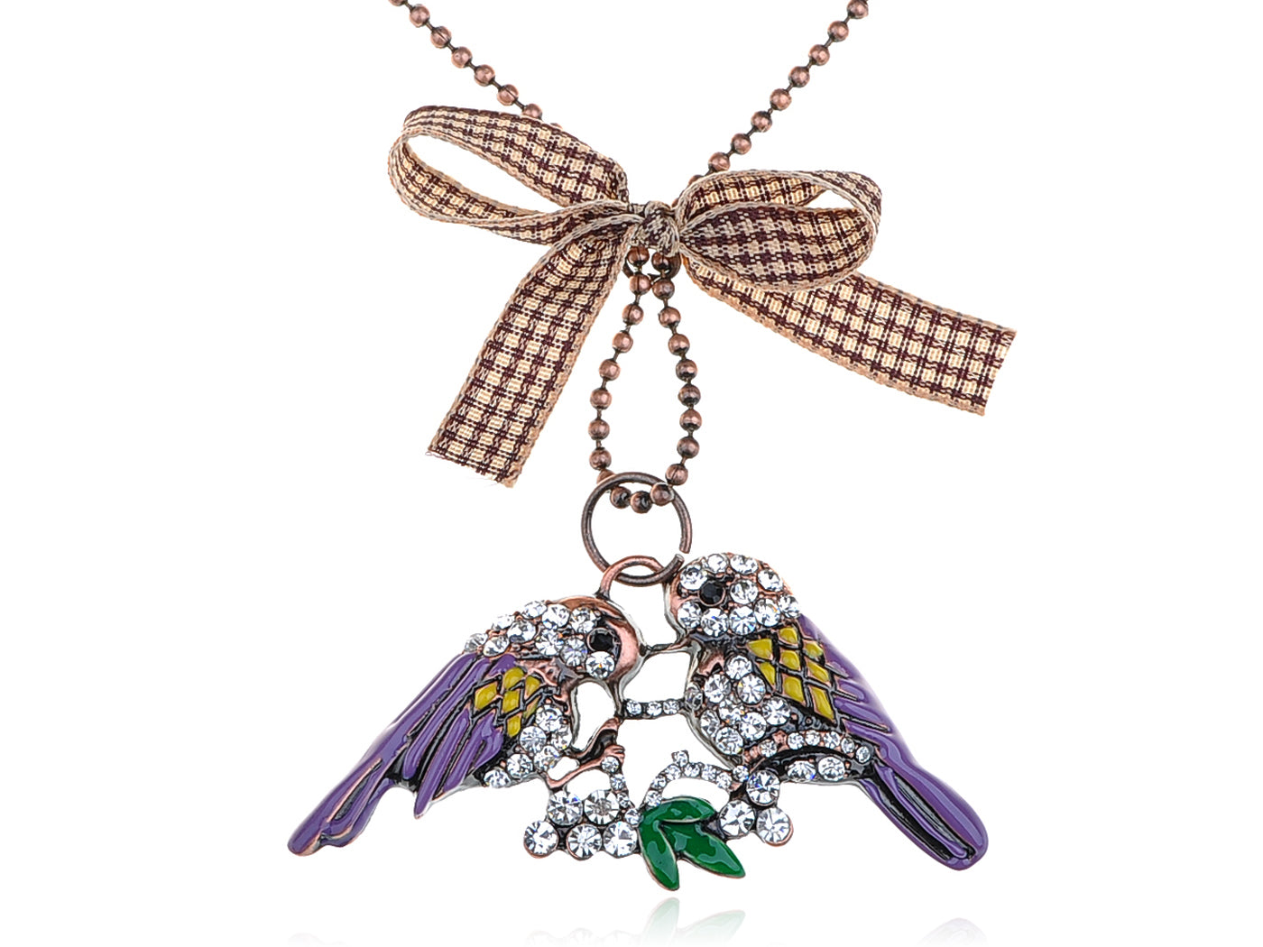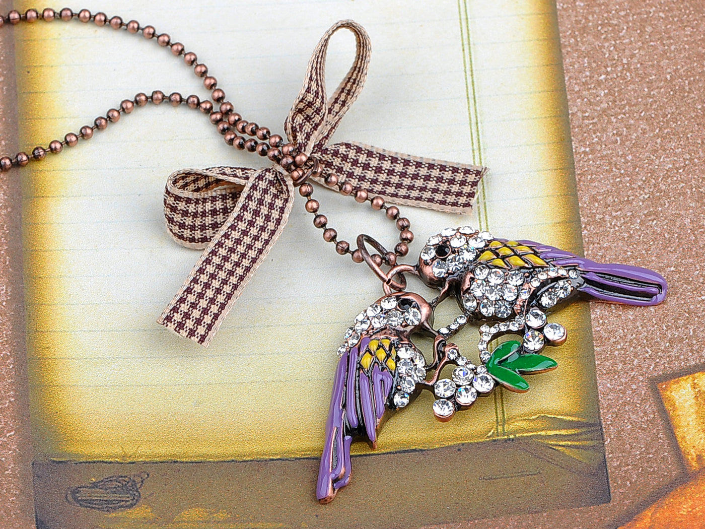 - UNIQUE DESIGN - this necklace is with a boeknot in textile and two lover bird in multicolor on a twig,very cute to wear.