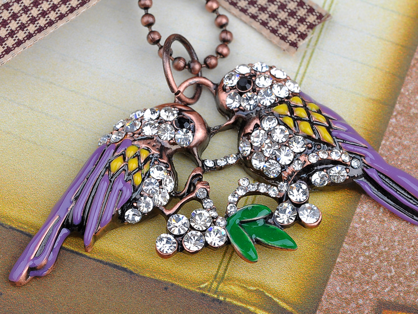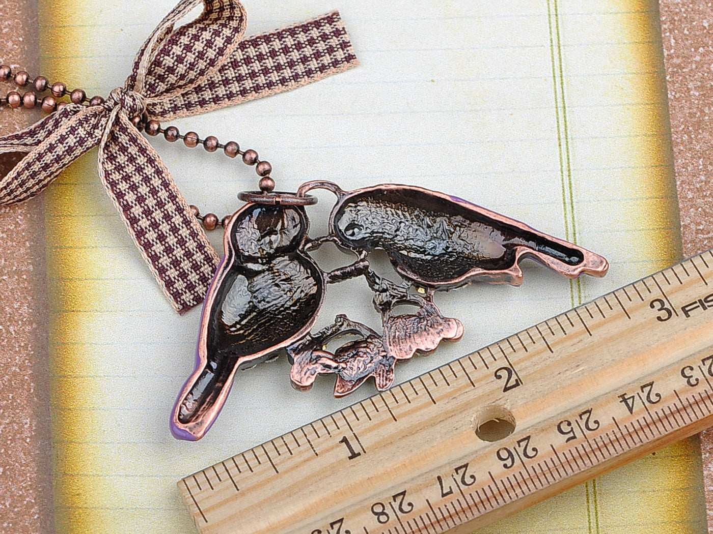 Adorable Enamel Painted Lovebirds Pendant Necklace
