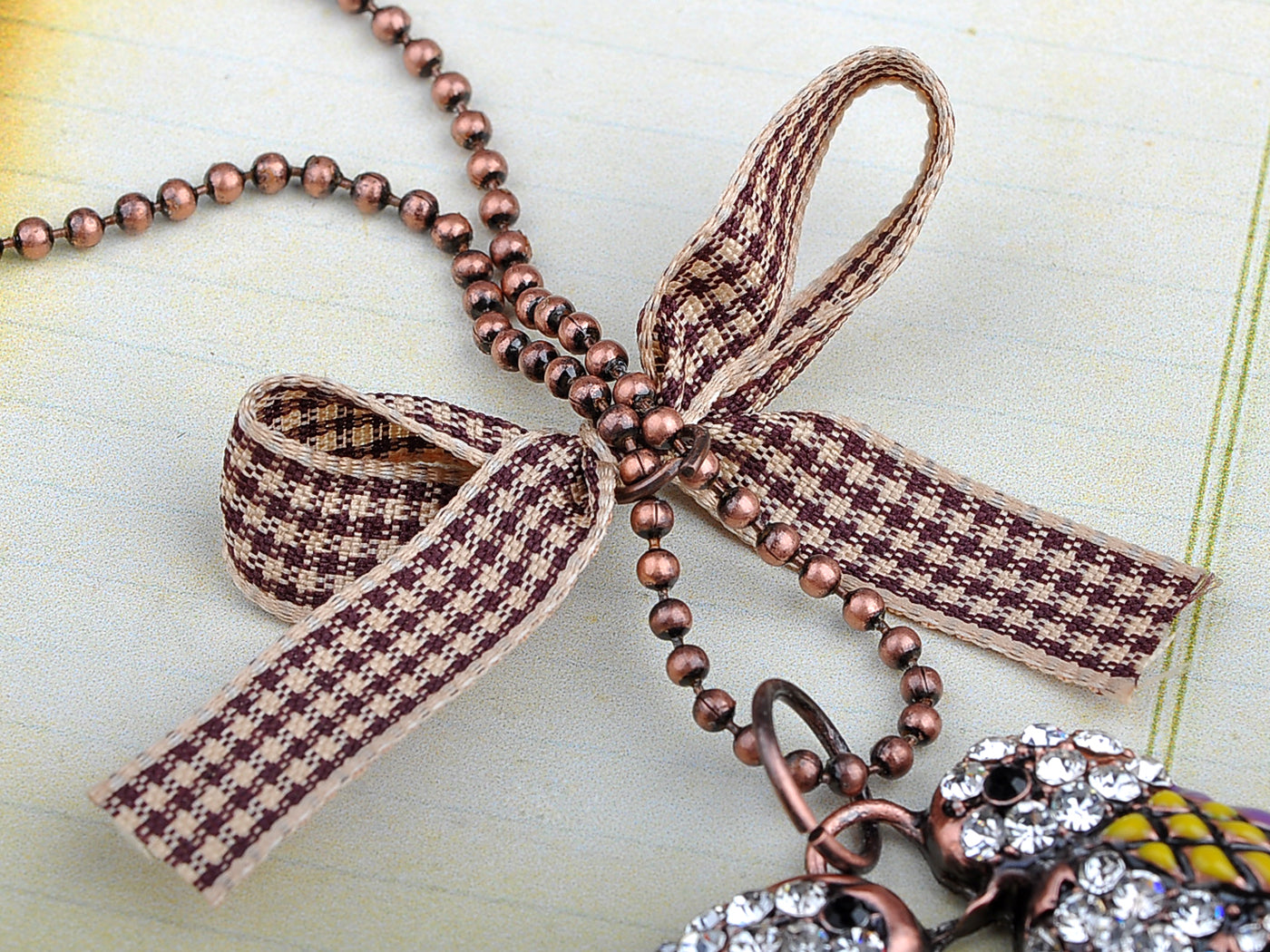 - A Bronze necklace give you a vintage look,but cute birds make you vibrant and elegant.
