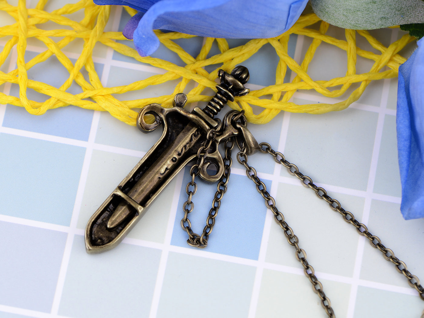 - TWO PIECE ACCESSORY. The blade can actually be removed from the scabbard of this pendant, making it easy to switch up a look. You can have the two pieces hanging or you can sheath the sword into the scabbard and it'll be securely held in place until you need to pull it out.