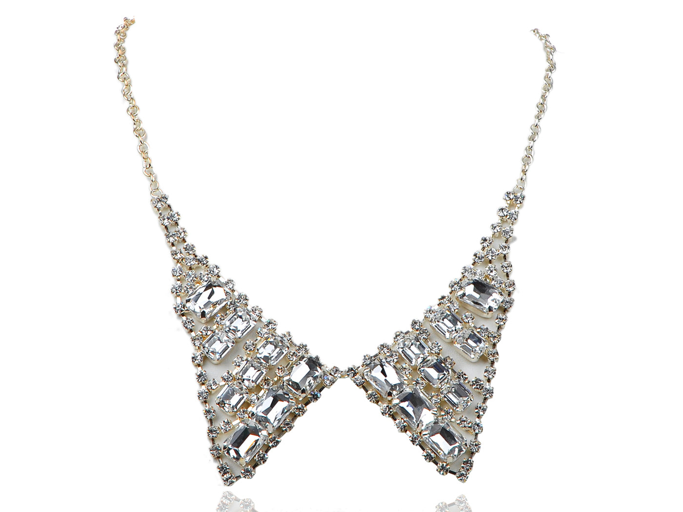 Diamond Colored Mimic Statement Loud Tuxedo Bowtie Necklace