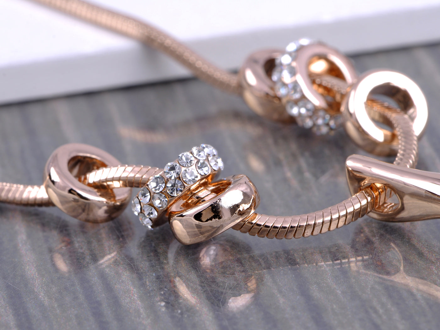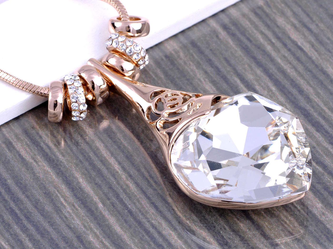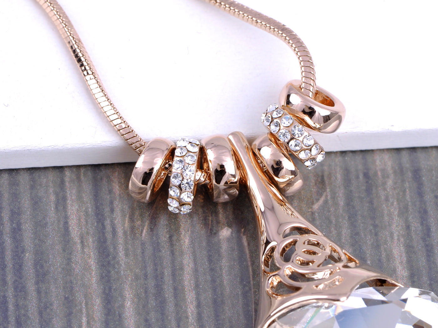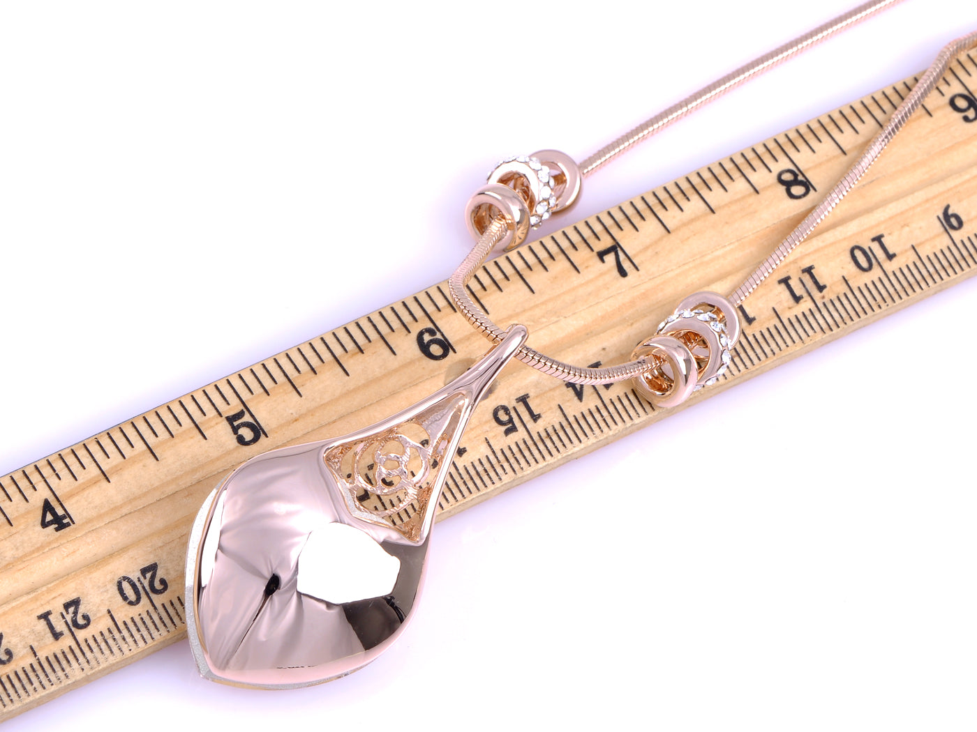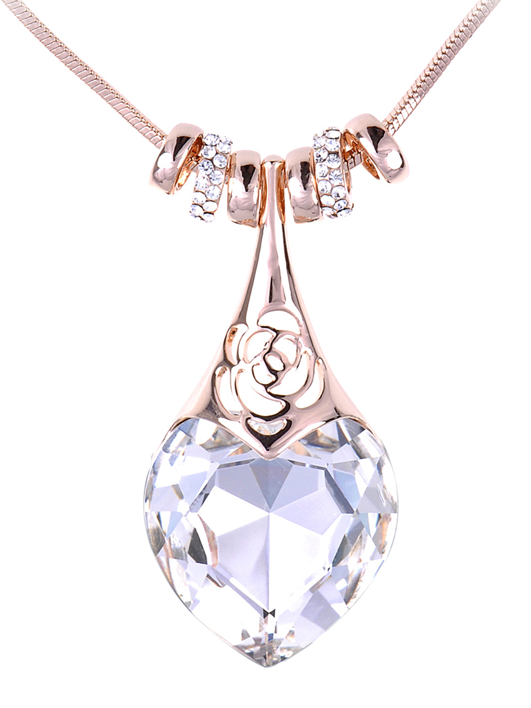 - UNIQUE DESIGN - This necklace features a dangling pendant of a big love heart shape clear crystal rhinestone, hollowing out rose floral, and six cute removable ringed, with rose golden tone.