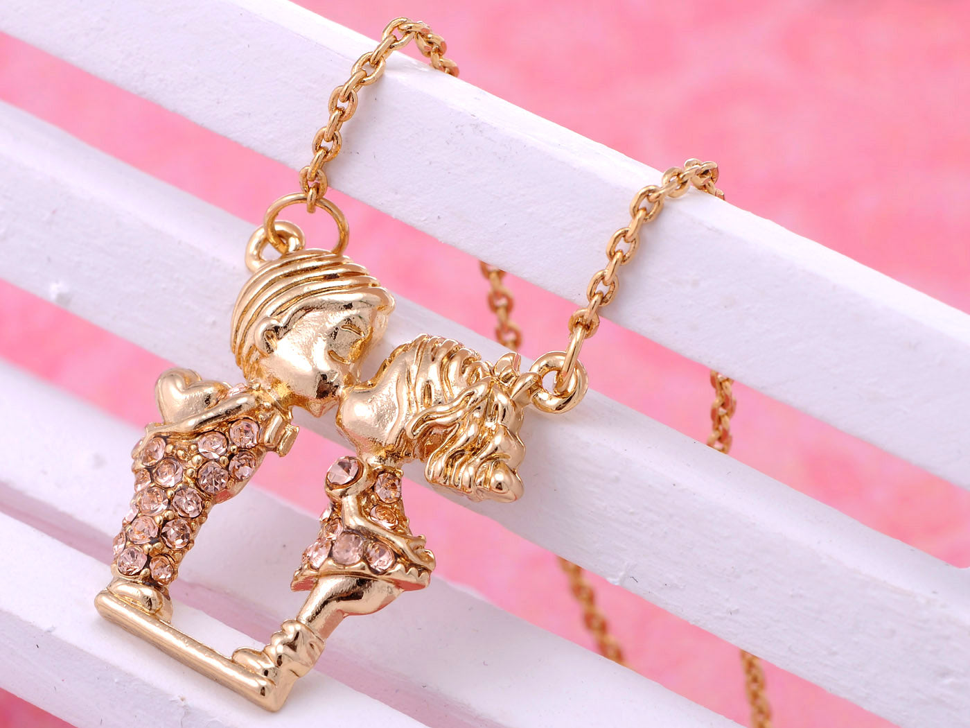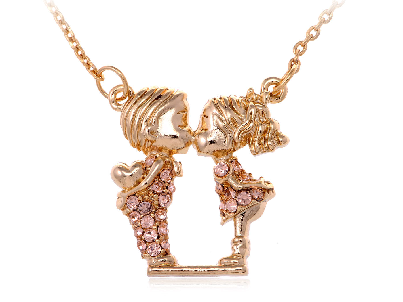Petite Girl Boy Kiss Love Pendant Chain Necklace