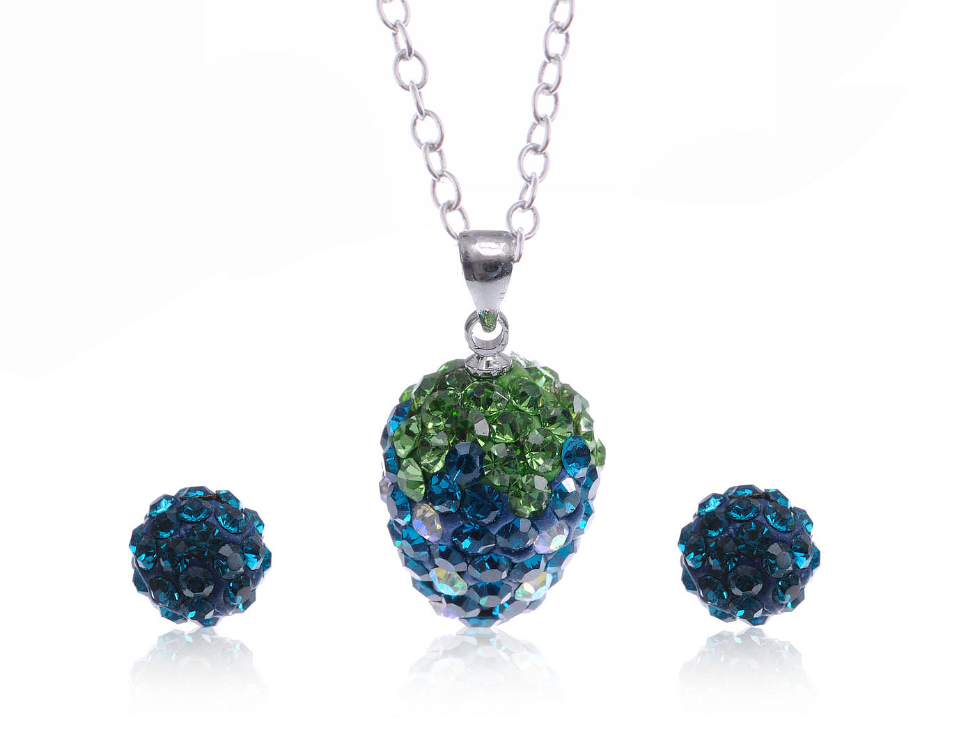 Sapphire Blue Green Eggplant Pendant Earring Set