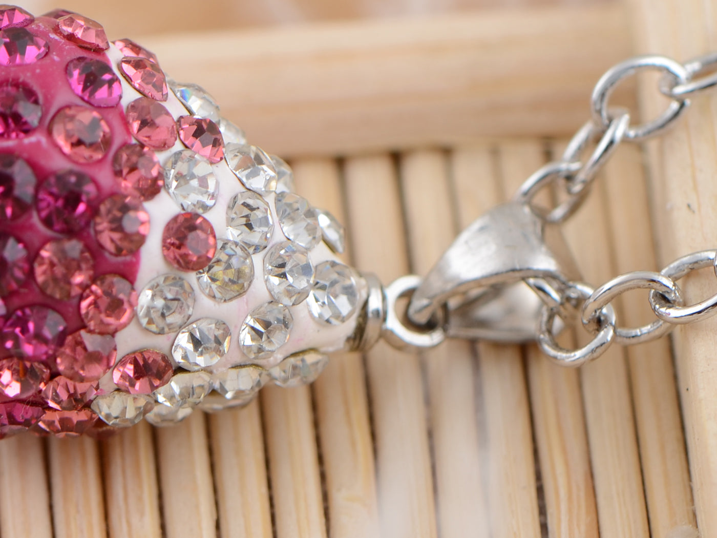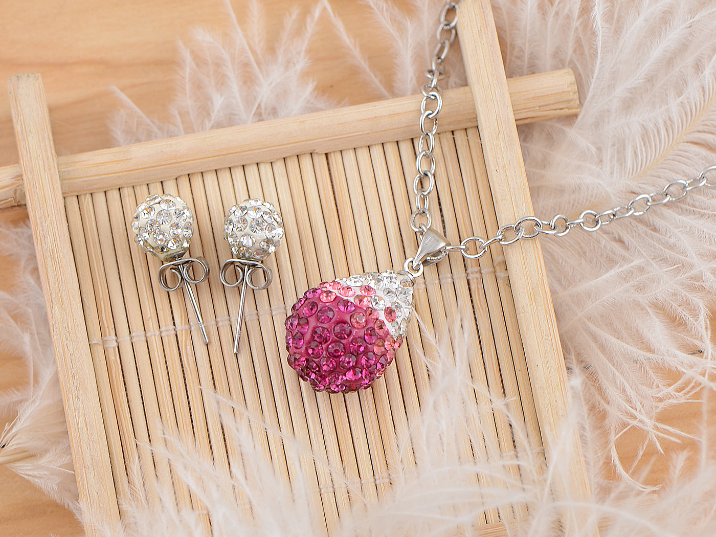 - LOVELY DESIGN - This is a stunning unique set of jewelry featuring a necklace with a dangling two toned fuschia pink tear drop pendant. Also comes with a matching pair of white enamel studded rhinestone earrings.