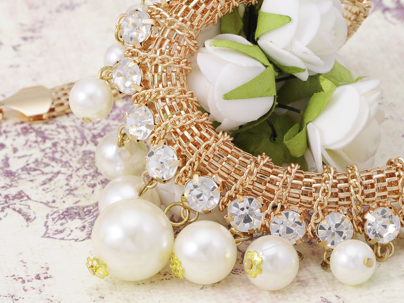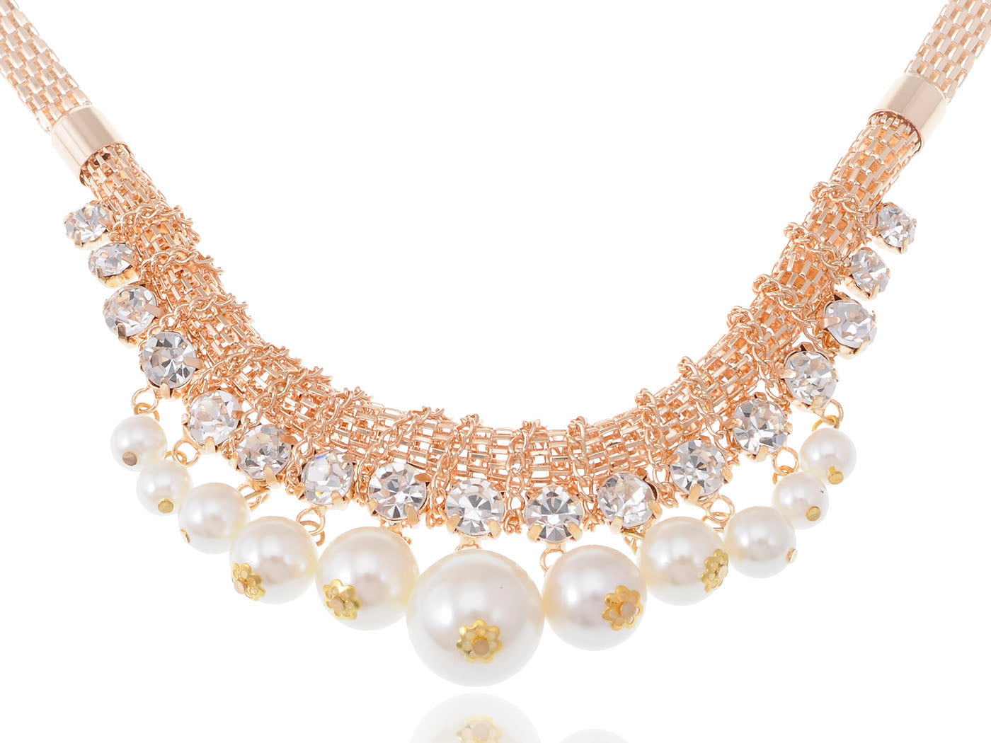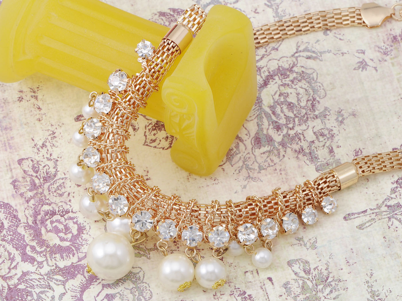 - WHITE FAUX PEARL AND CLEAR RHINESSTONE PENDANT.This Statement Necklace is very bling,and give you a elegant and brilliant outfits.