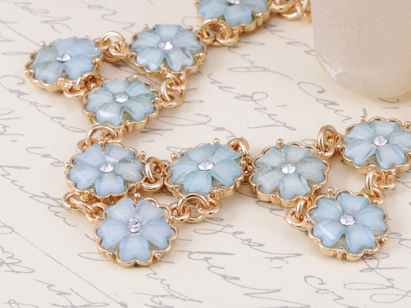 Light Blue Dainty Daisy Flowers Collar Necklace Earring Set