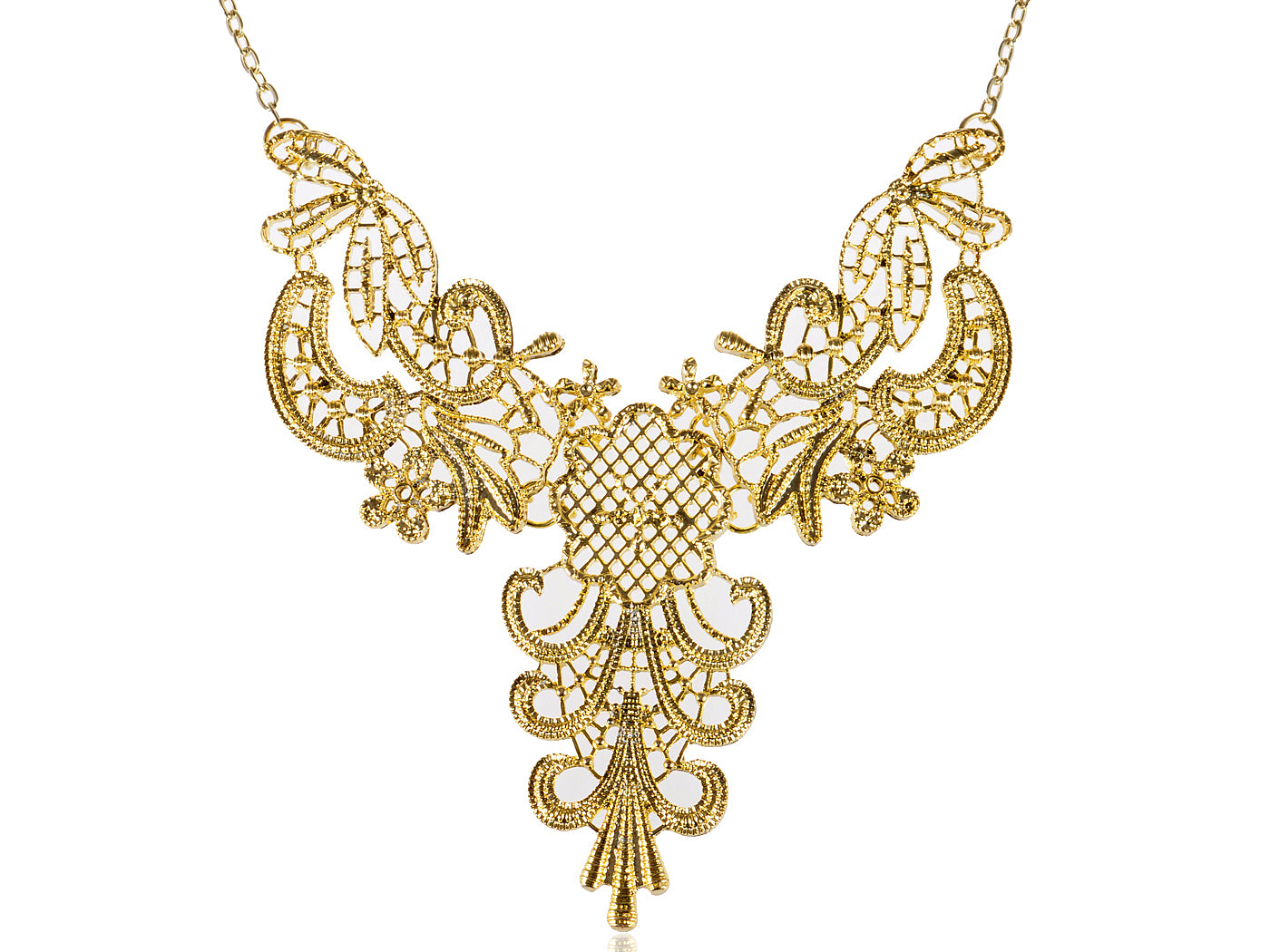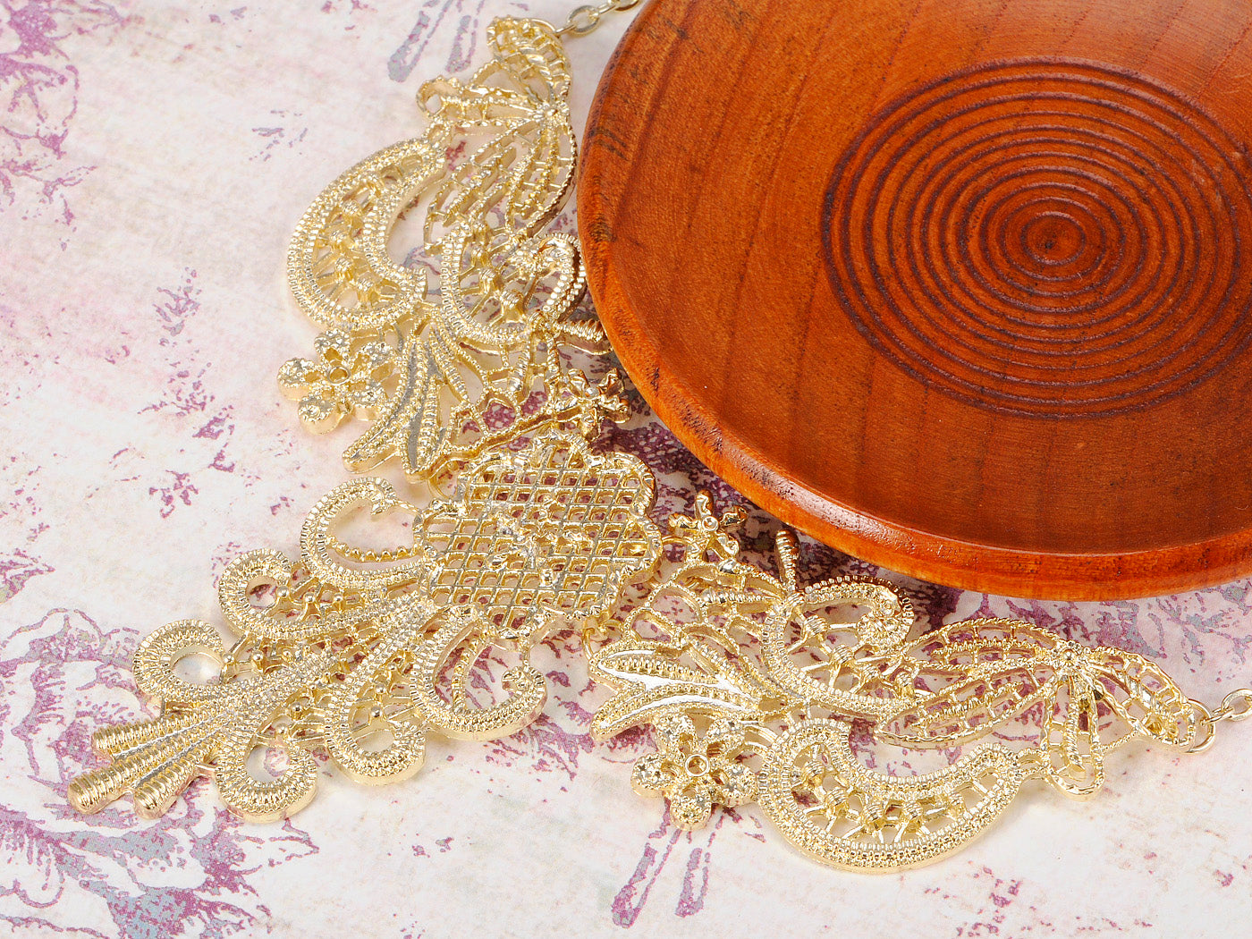 - BEAUTIFUL DESIGN - Lovely golden tone royal intricate statement necklace. This necklace has the most beautiful details that will surely add an elegant touch to any outfit.