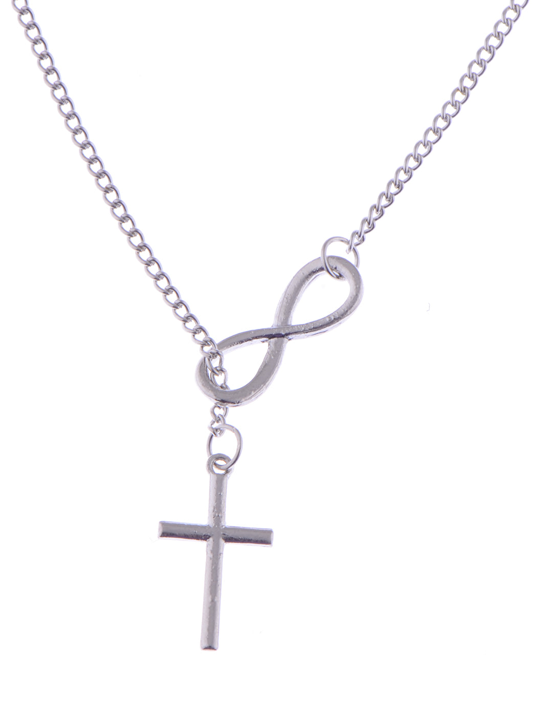 - UNIQUE DESIGN - This stunning silvery tone necklace featuring a cross pendent design, linked a bow on the other end of the chain.